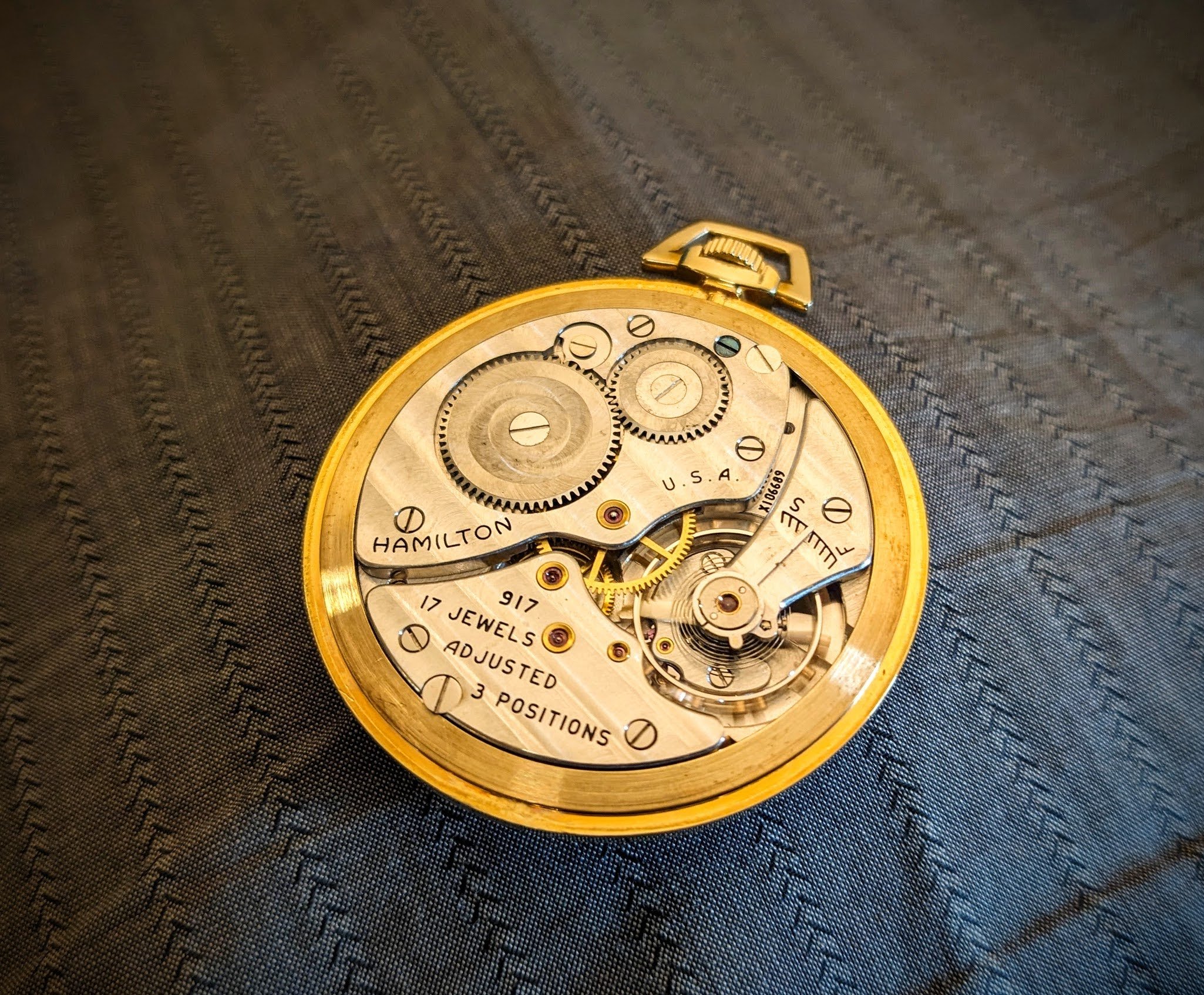 Posts 342 Likes 1,172 WestCoastTime ·Jan 23, 2024 Made in USA Hamilton 917, c.1946. One of my favourite old movements, can't really say why (other than that they are easy to work on & produce fine timekeeping results...). -