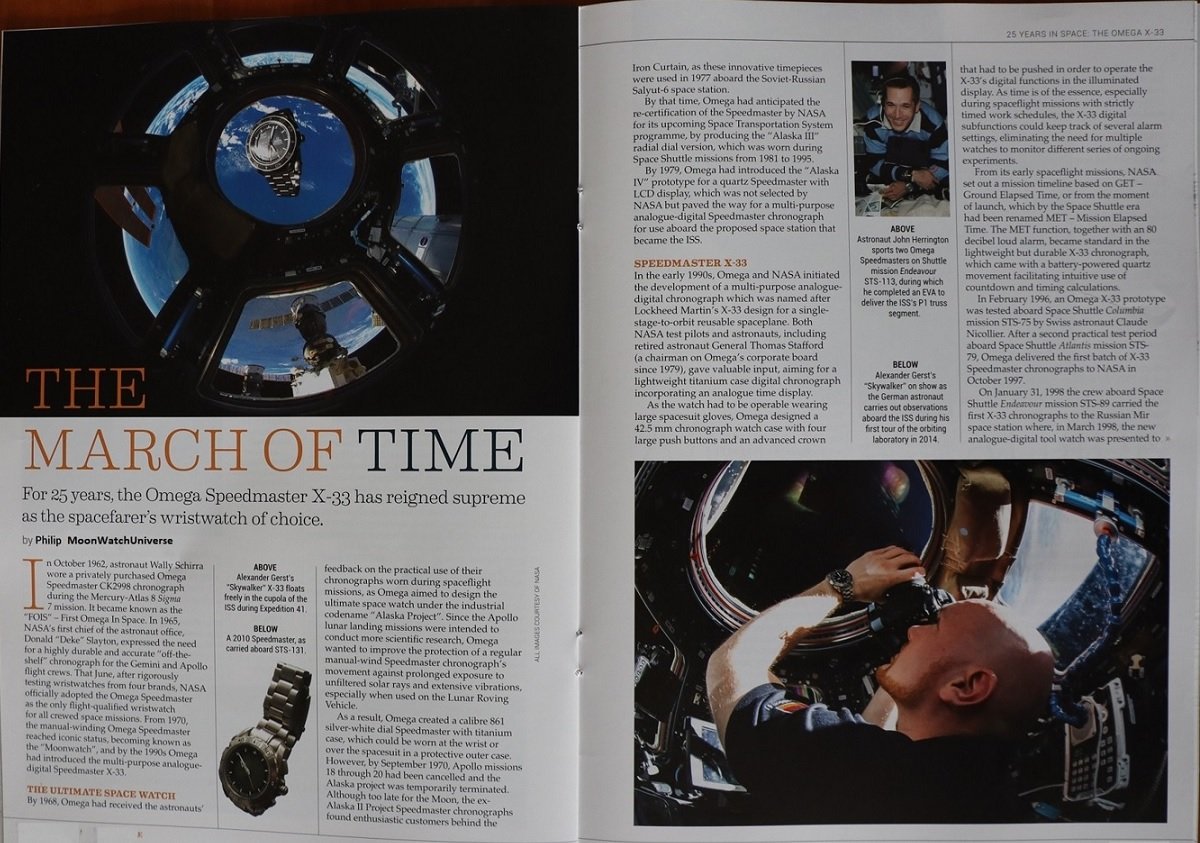 路I have been researching the details of NASA's use of the X33, and these are my findings to date. As most Omega and space fans know, this Speedmaster was issued to astronauts on the Space Shuttle missions, and those to the International Space Station and MIR. They were used from the watches (quite literal) launch on STS-90 in 1998 until the present day.