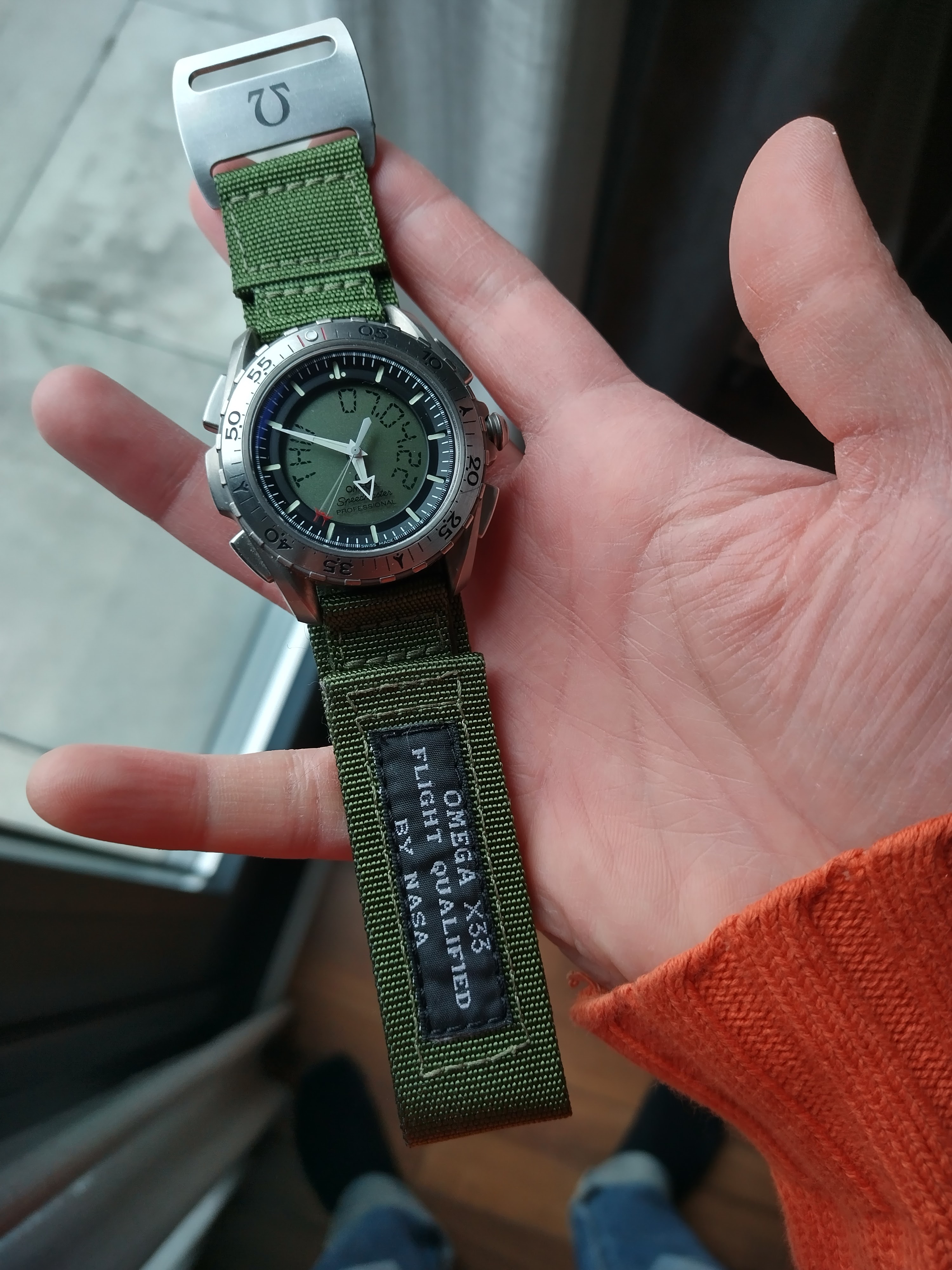 For me, I'd flip that logo that other way so I just have the Omega branding on the bottom of the strap.