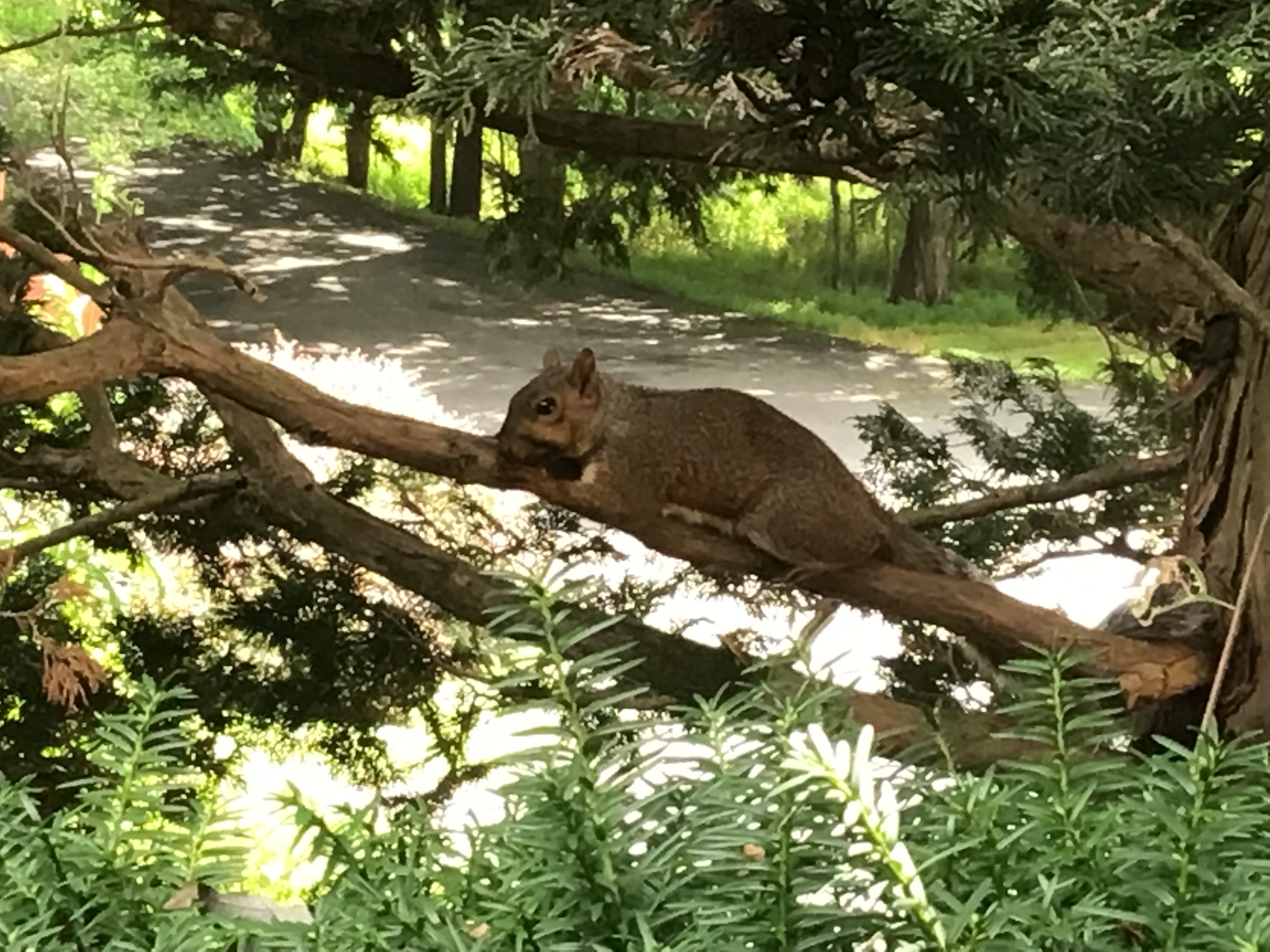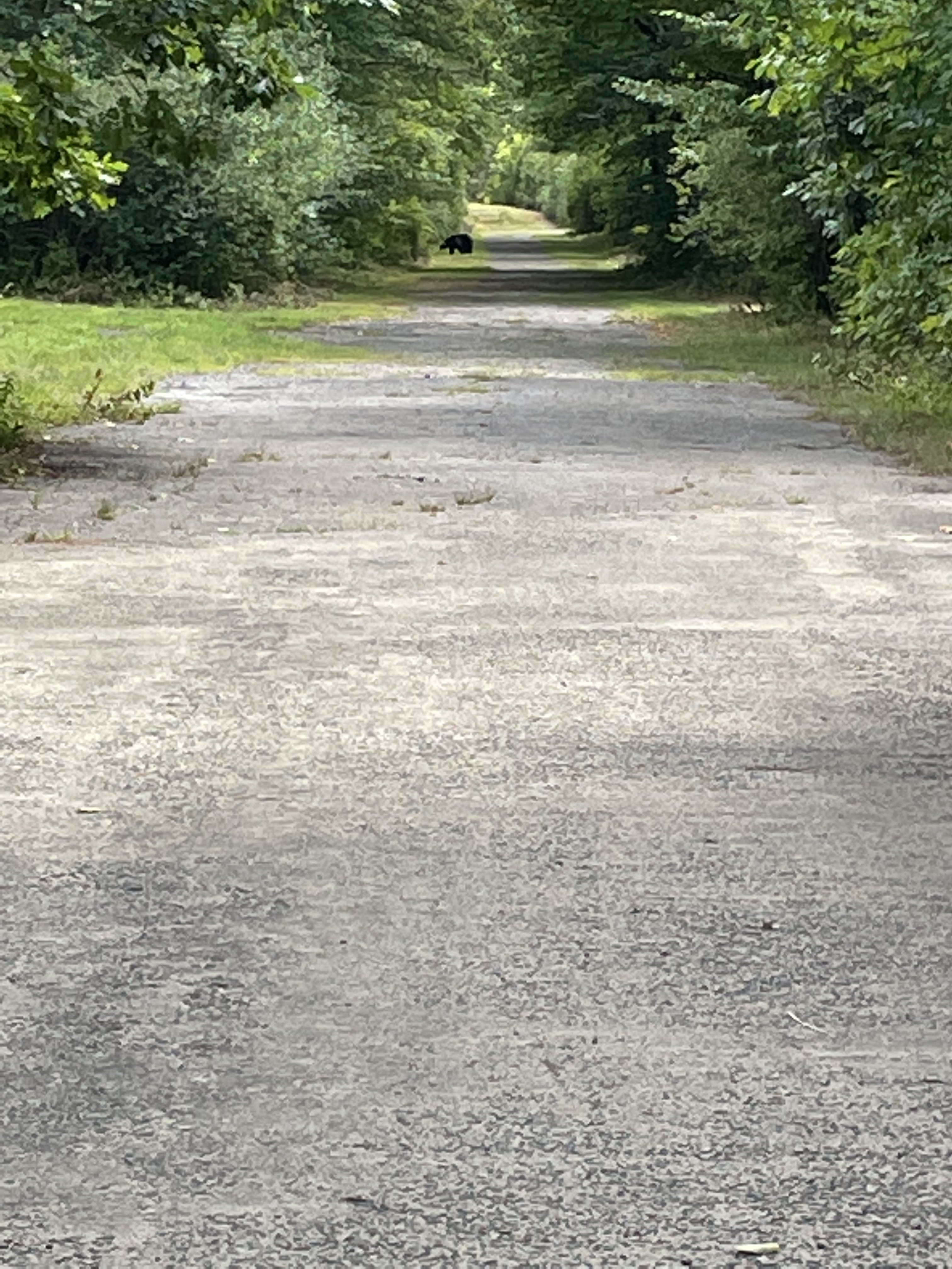 Kind of hard to see with the phone but I took a group of guys who were already “nervous” to some trails and we saw a black bear up ahead. I sent them back to the van and tried to see if a could get a closer picture but he/she took off into the woods. I sent my wife the picture she said a black bear could provide us meat for a year and the paws are medicinal.