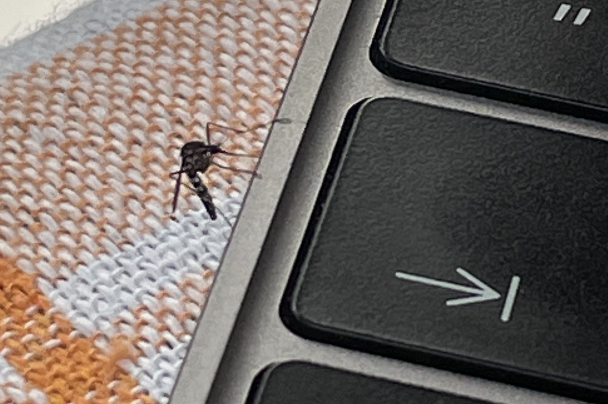 Since I was fenced with the repeller, this little "day walker" blood sucker was probably thinking of a strategy, may be little help from the Macbook. God knows. This year they are hell of a problem.