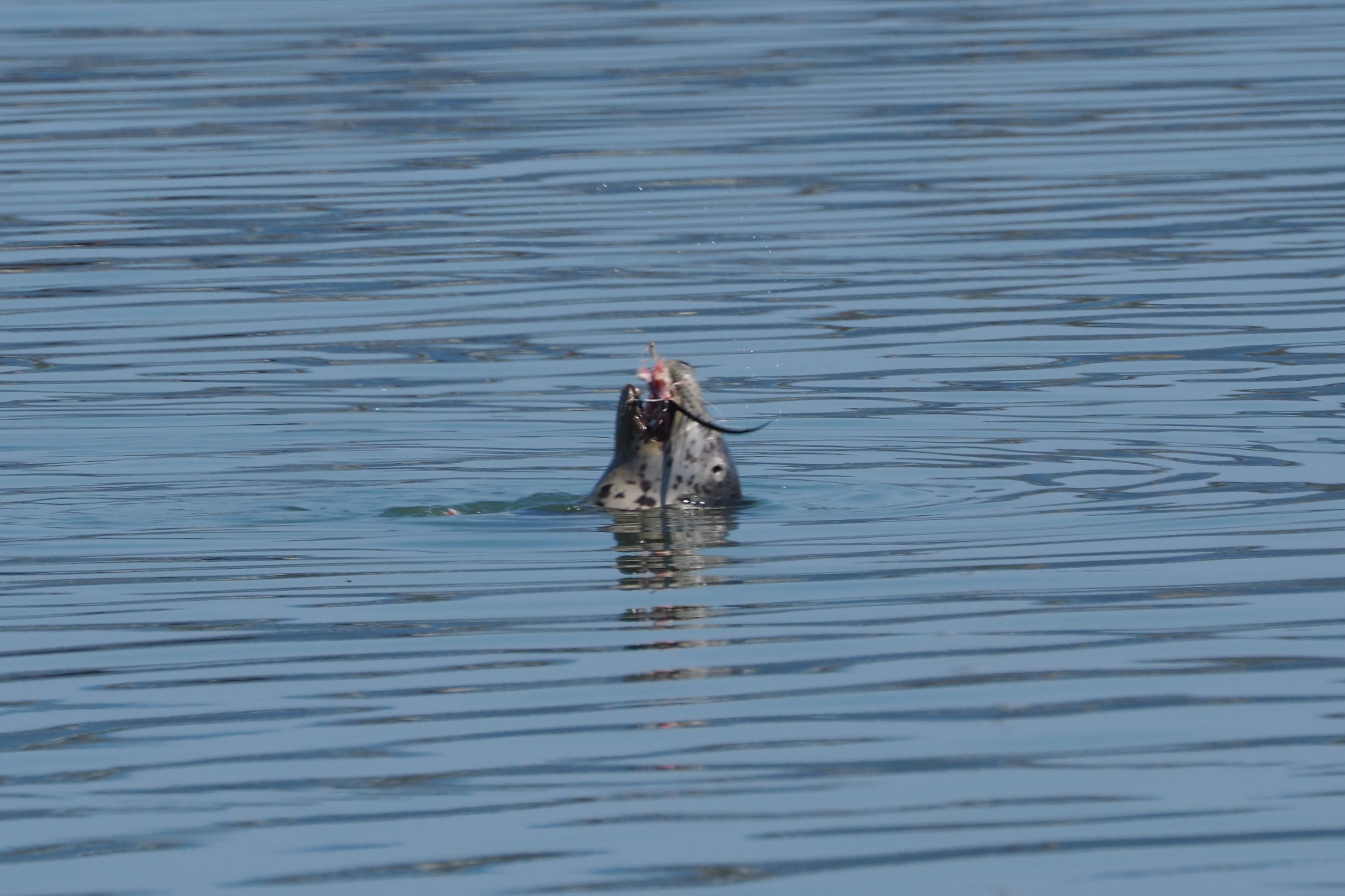 A few seals in the bay taken from the docks of our local marina. It is unfortunate the one of seal eating a crab came out a bit unfocused, but I had to include it.