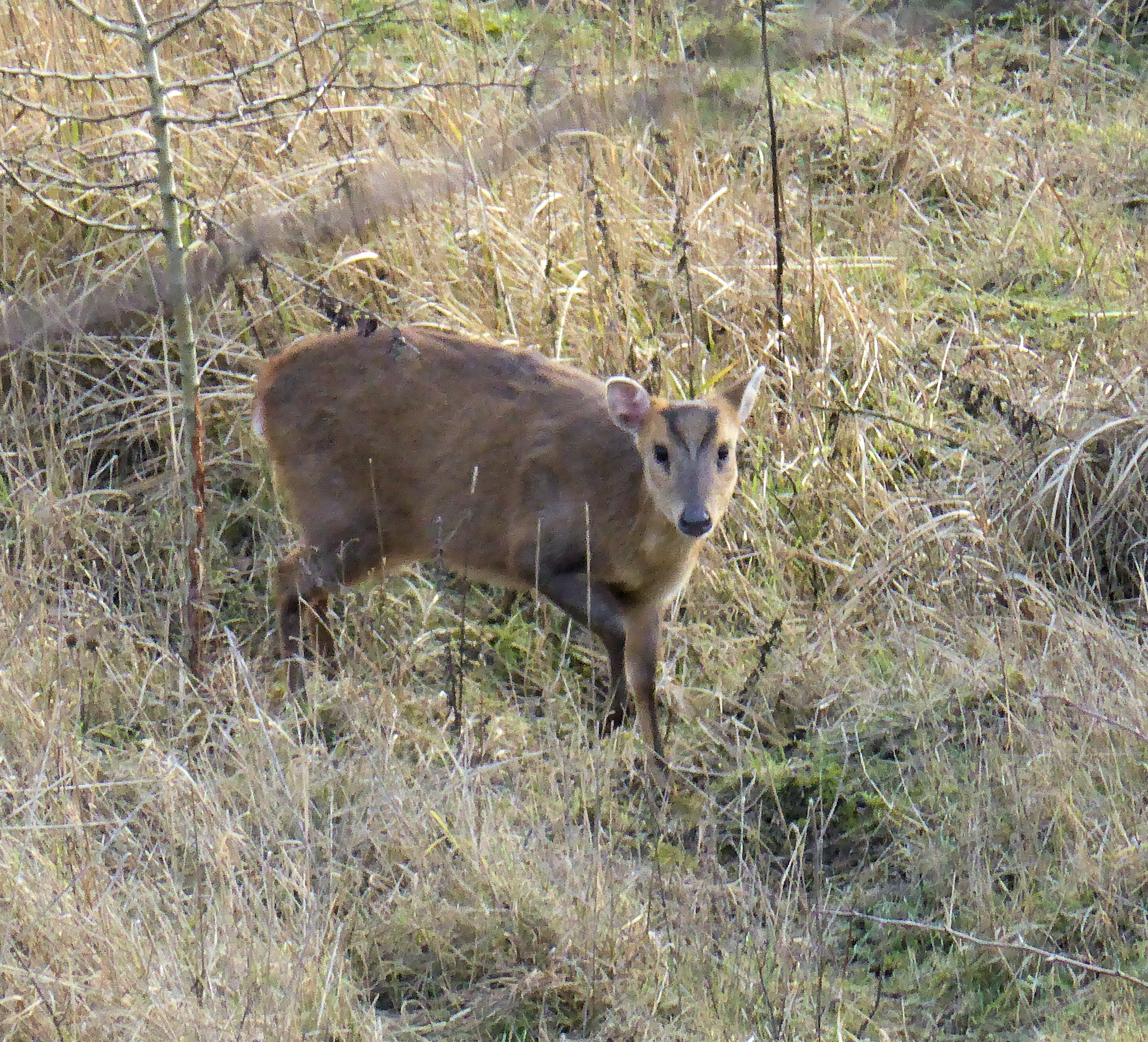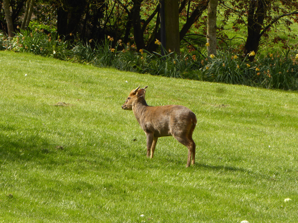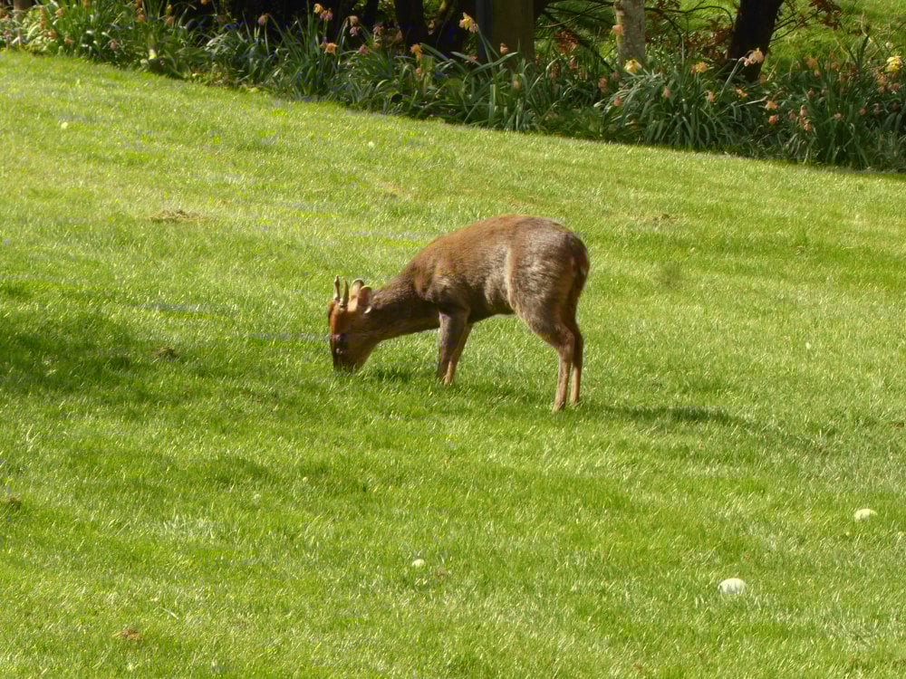 These are frequently in gardens around here. A friend got so pissed off by them eating her flowers that I put up an anti-Muntjac fence for her. It keeps them out of the back anyway, can't do anything about the front. Before the fence one gave birth on her back lawn.