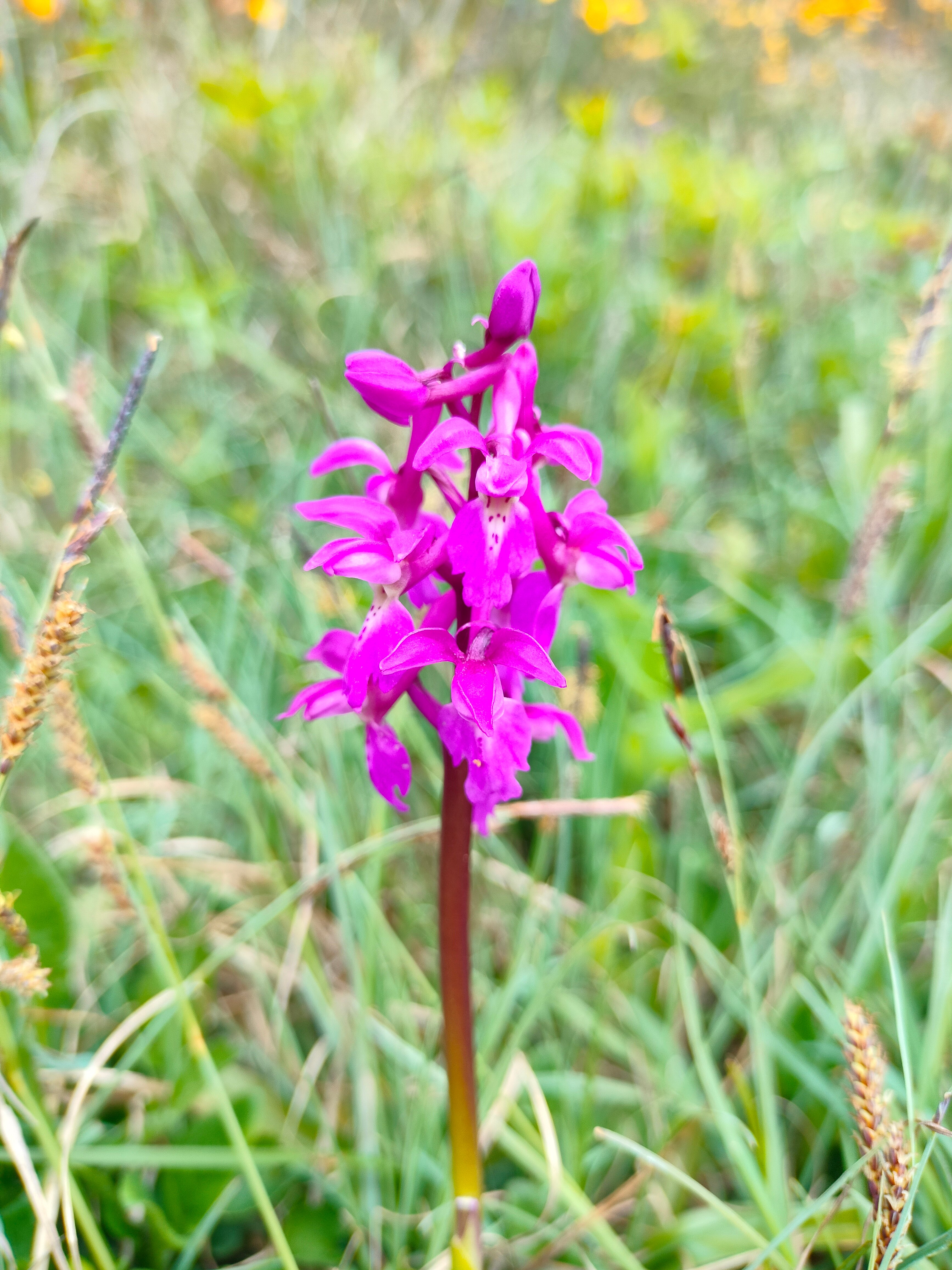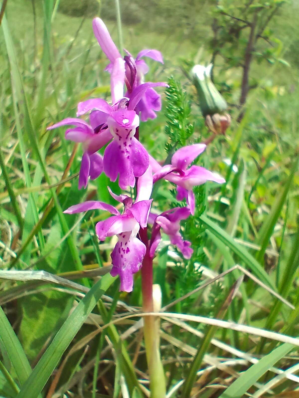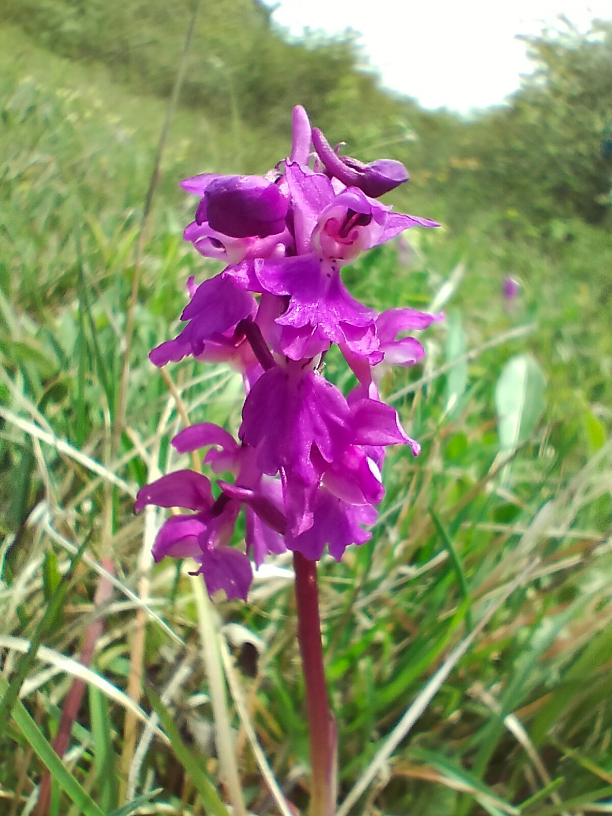 Early purple orchids growing on a steep slope on a ancient barrier reef here in the UK I took these pics today . Notice the different colours in flowers these are stunning plants .
