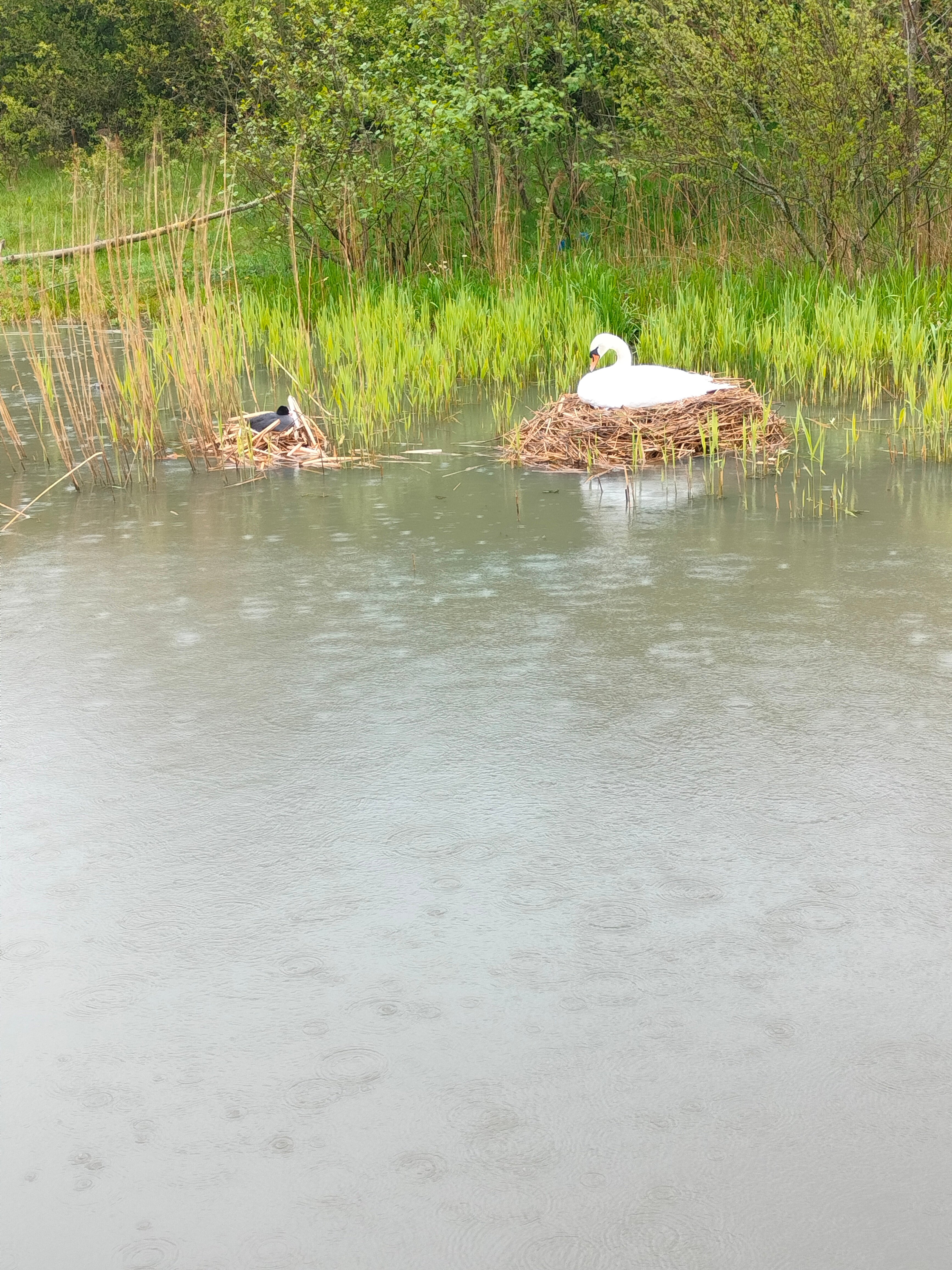 A few snaps I took today ,blue cobalt fungus feeding on a dead tree . The other white fungi not sure on name fixed on decaying tree , English bluebells in a ancient woodland , swan and coots nest so close together I suppose the coot is there for safety .