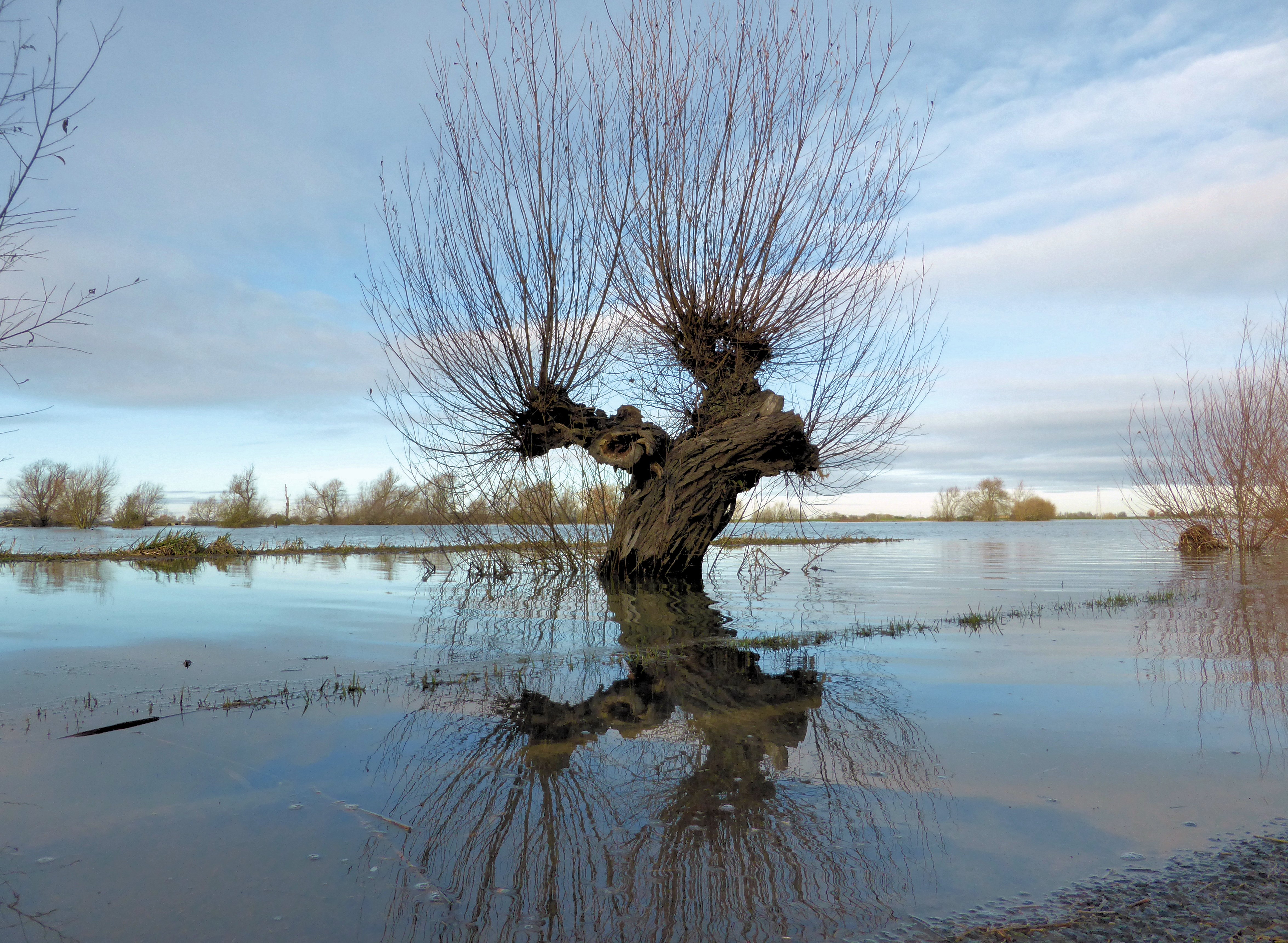 Ancient willow tree ..... still impervious to cold and floods. 150 years + old.