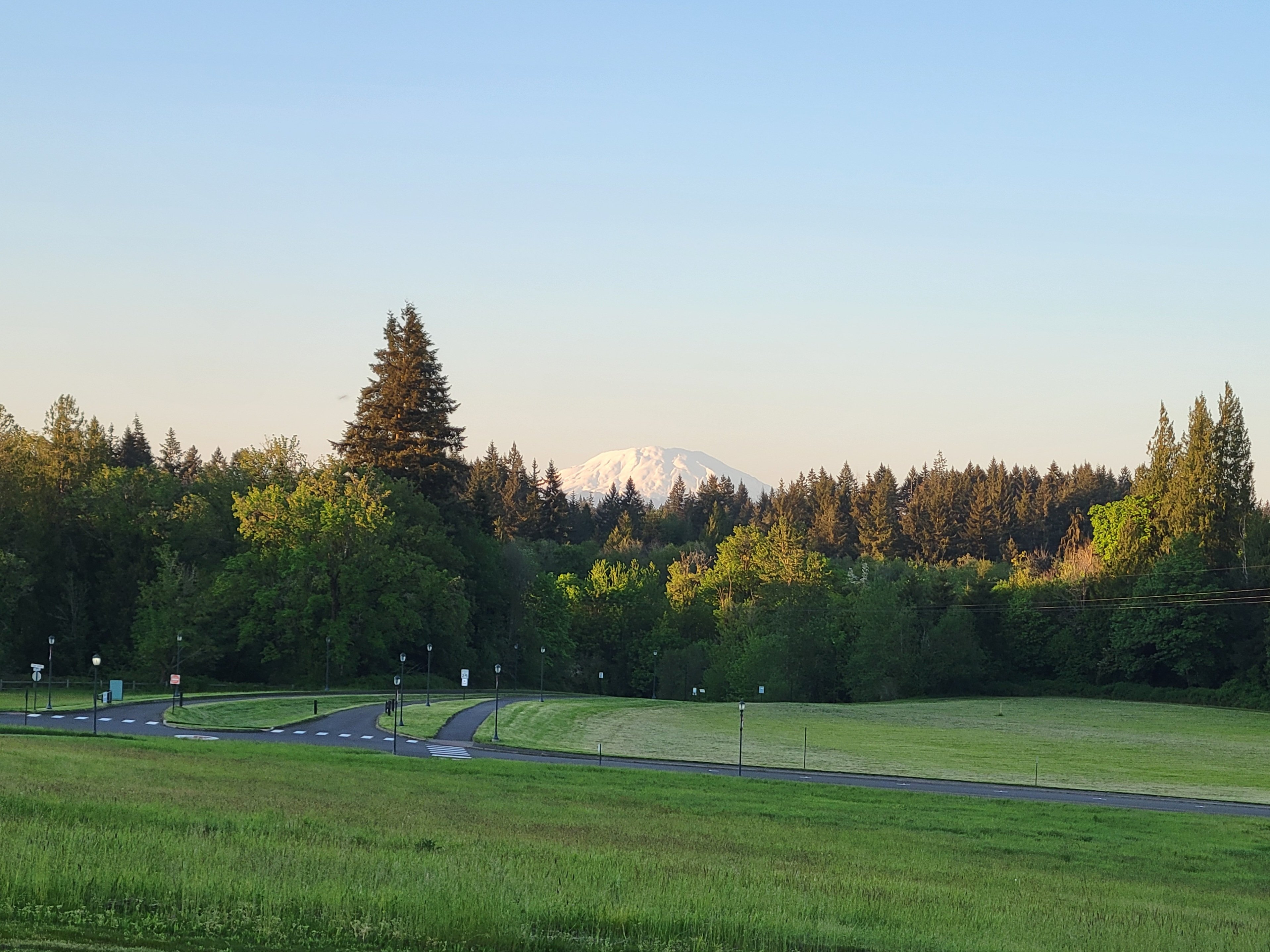 That is Mt. St. Helens; It's active and last erupted in 1980 (which is why the top is flat- one whole side of the volcano was blown away during the eruption). I'm about 40 odd miles from it and can see it most days from my porch (as well as Mt. Adams and Mt. Hood, albeit not as well).