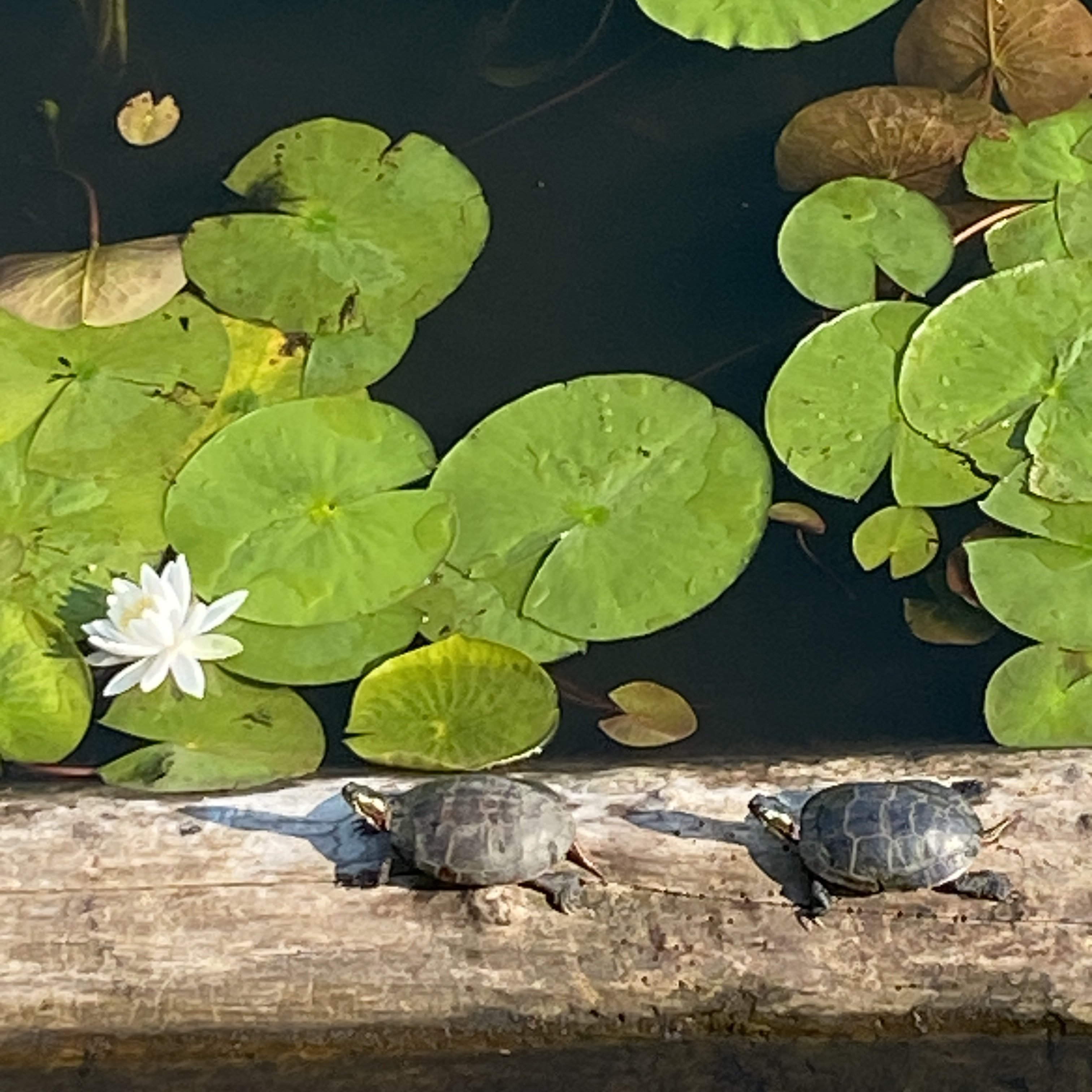 It is interesting that these frogs are quite happy to be handled. They are content to sit on one’s hand or shoulder for extended periods of time while one moves around the pool, as if their human host was a tour boat.