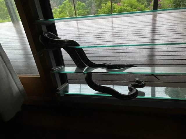 A friend's early morning visitor - a pretty python. He found traces of it disturbing things inside his house, before it decided to exit via his bedroom louvre window, but was blocked by the large flyscreen. He released the screen and off it went. Northern New South Wales always has something special to offer.