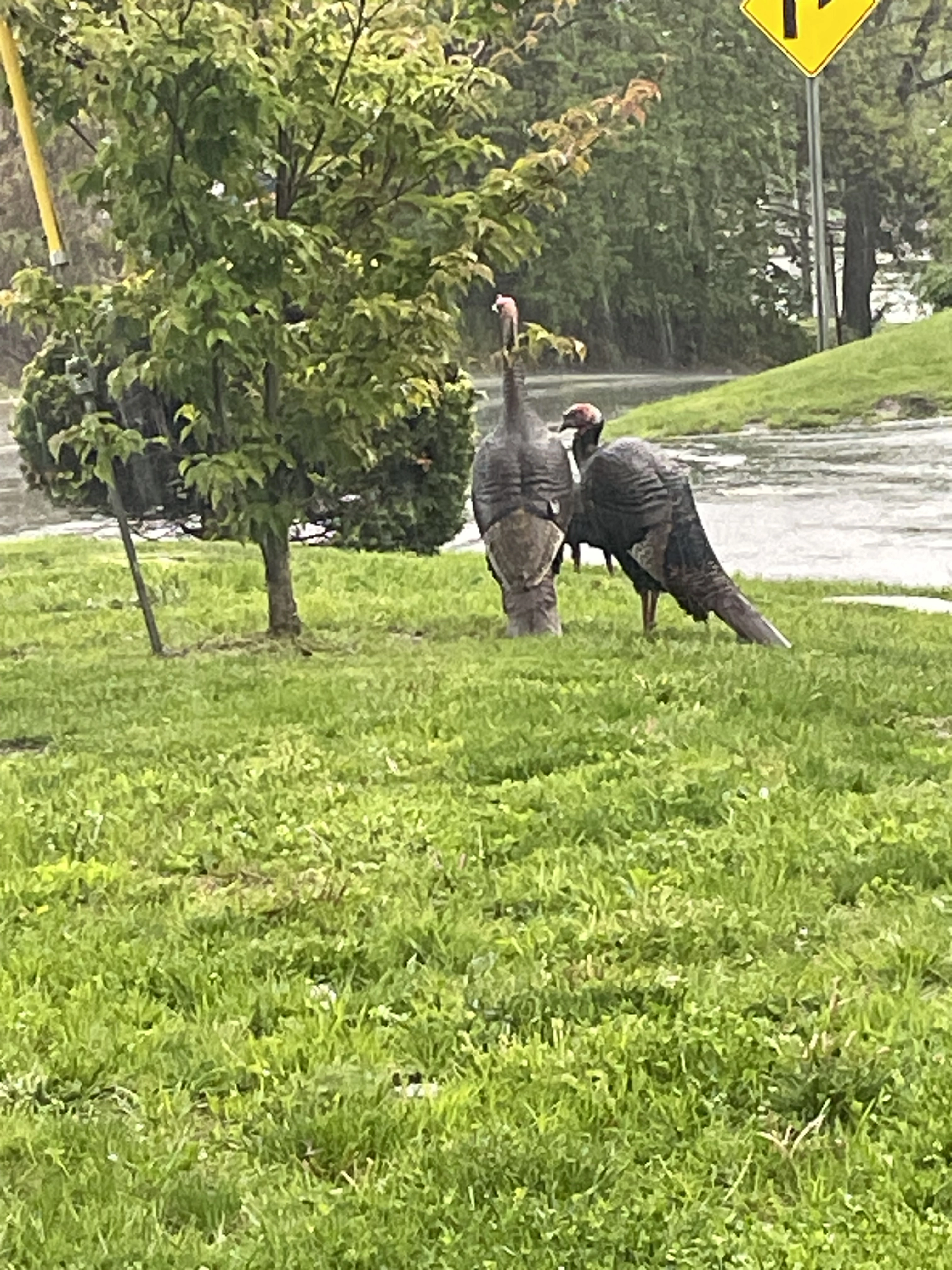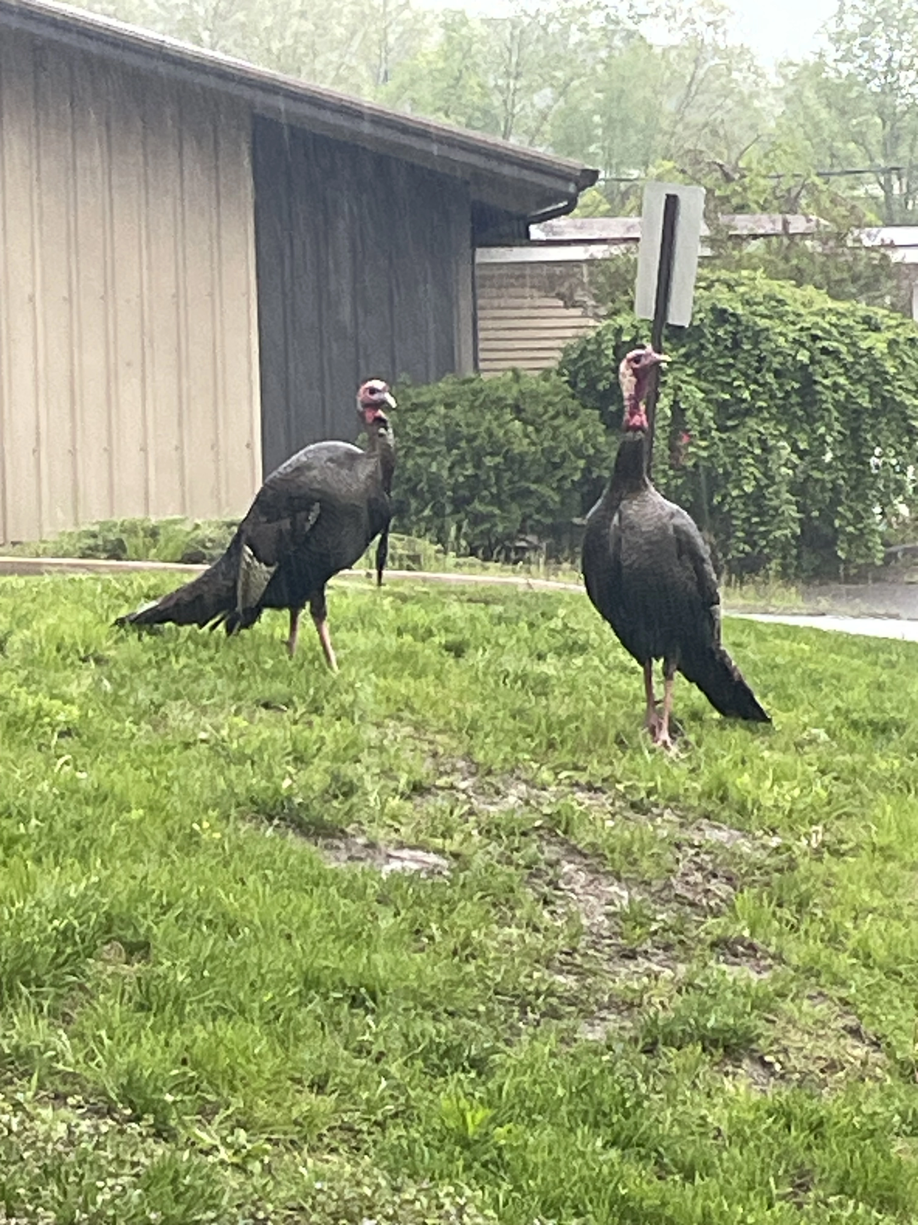 The Robin's nests have returned. New location this year, and not ideal - on top of the deck rail right beside the BBQ, so we will have to wait until they are done to do much cooking out there: