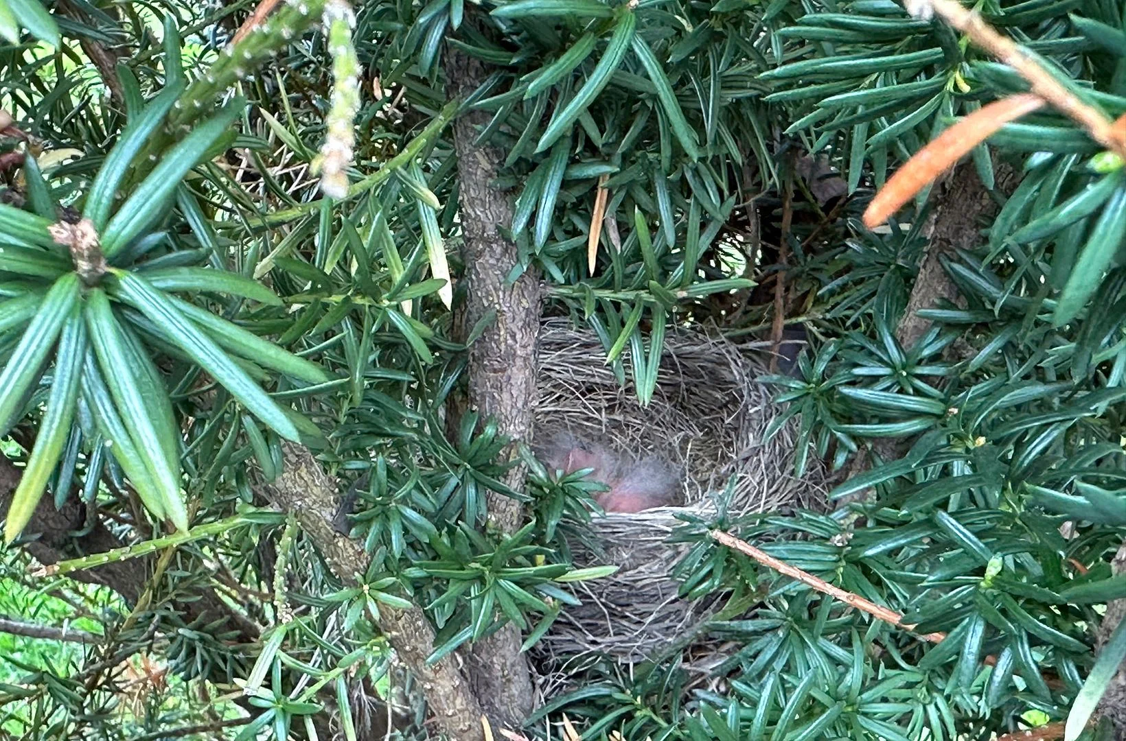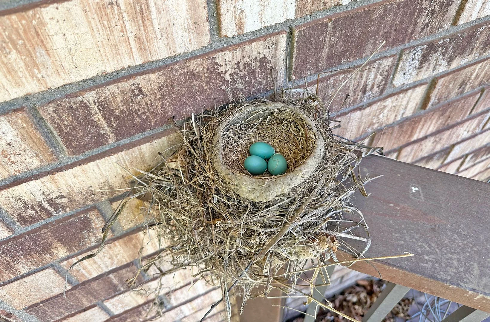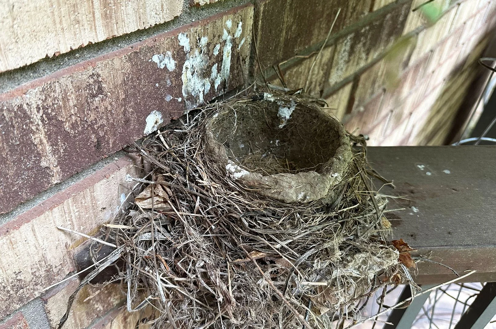Unfortunately we came out one morning and the nest was dumped on the ground and all 3 chicks were dead. 🙁