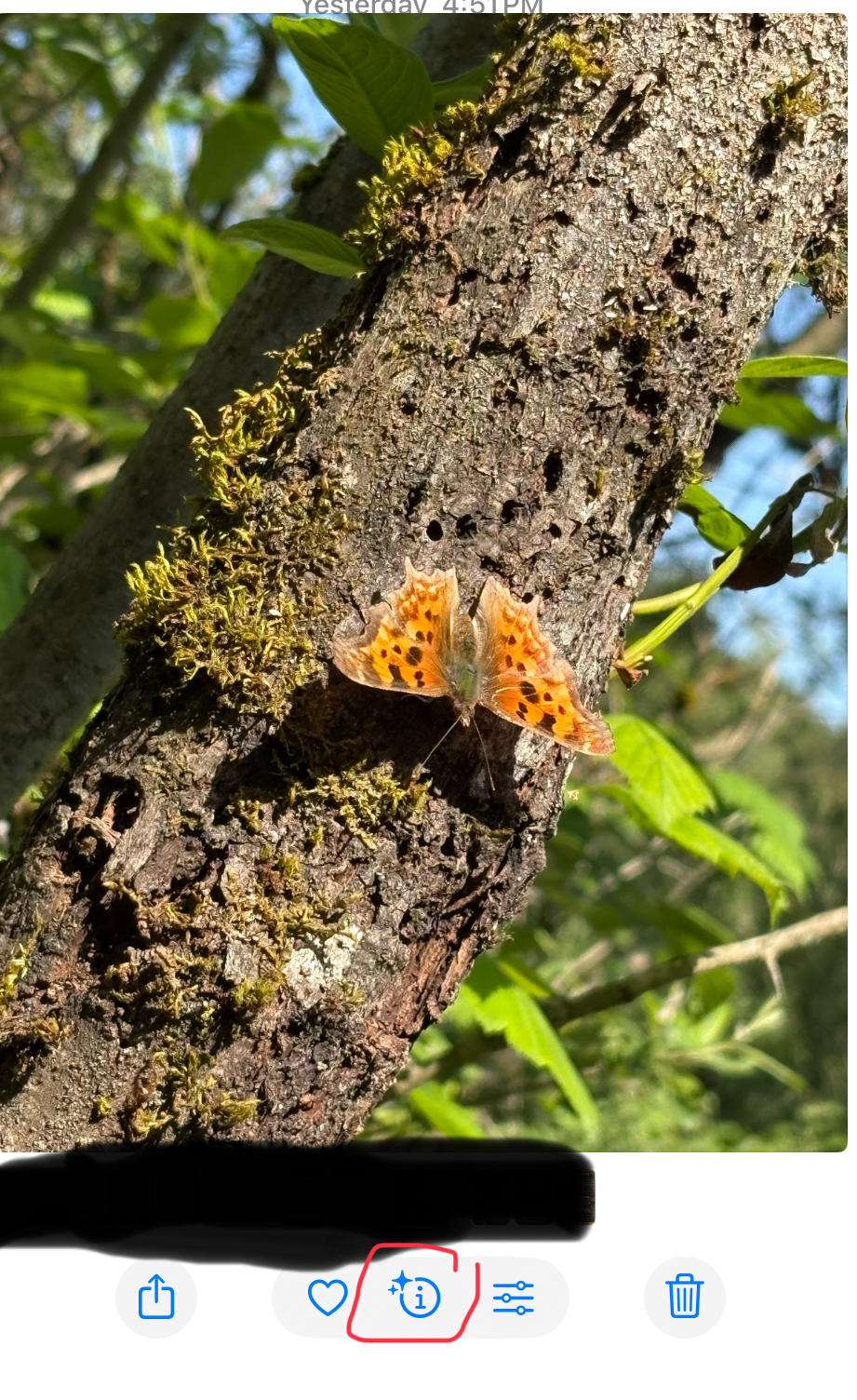 I use a iPhone 16 and just found out that it automatically uses AI to tag my photos 🫣. I was going to look up this butterfly, when I saw that the work was done for me. Apparently it’s a polygonia.