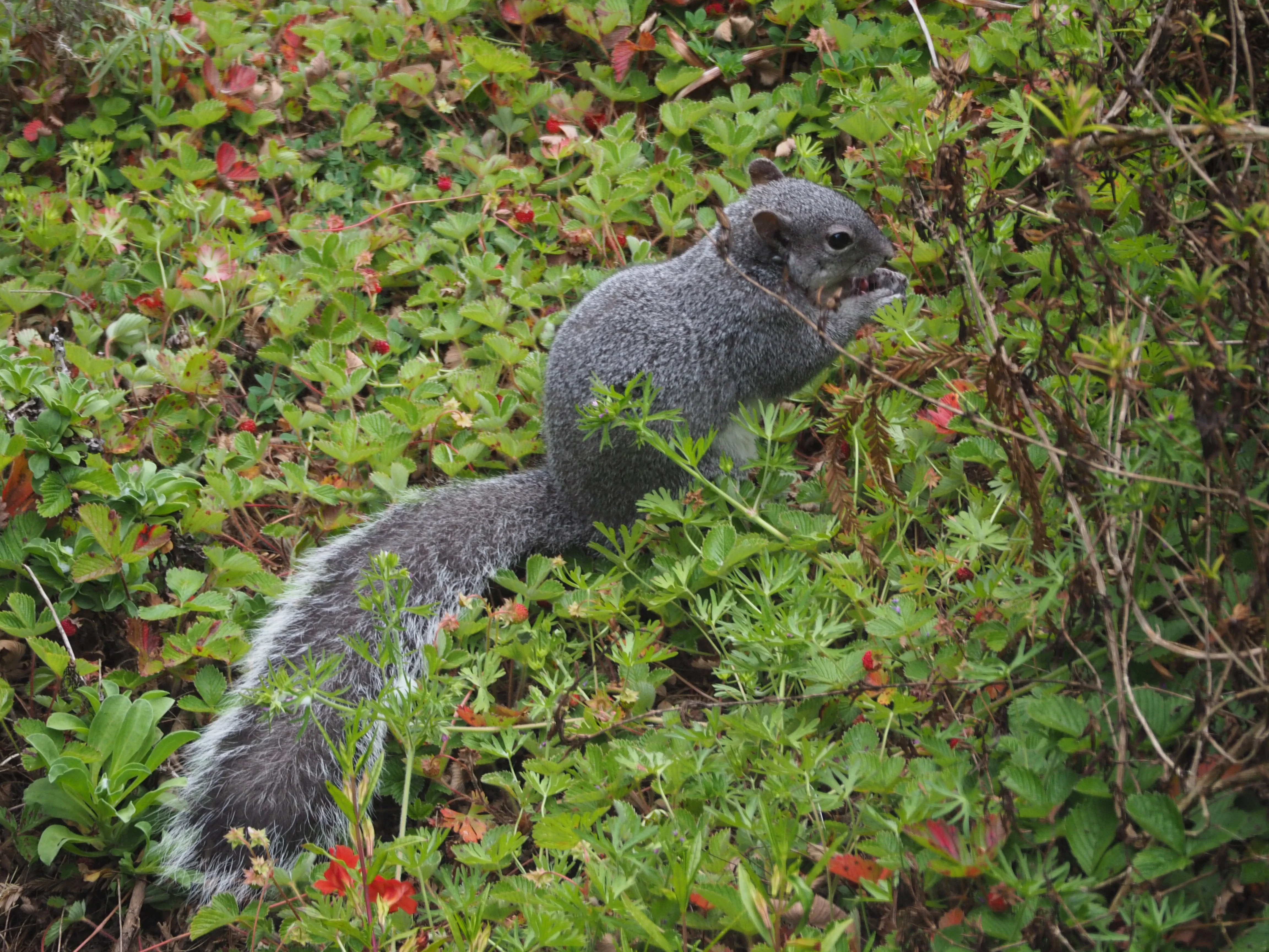 This guy was back today and decided to go to town on the wild strawberries I planted. It was hard to count, but I watched him eat over 20 of them. I can't believe they all fit in his little belly.