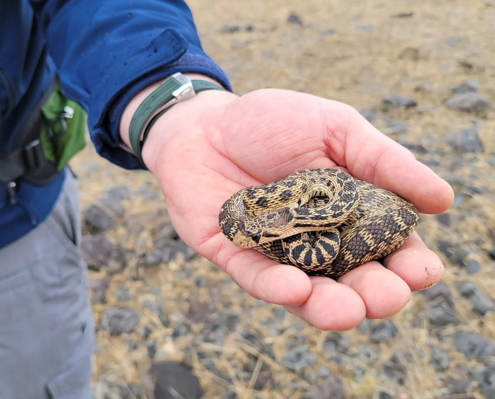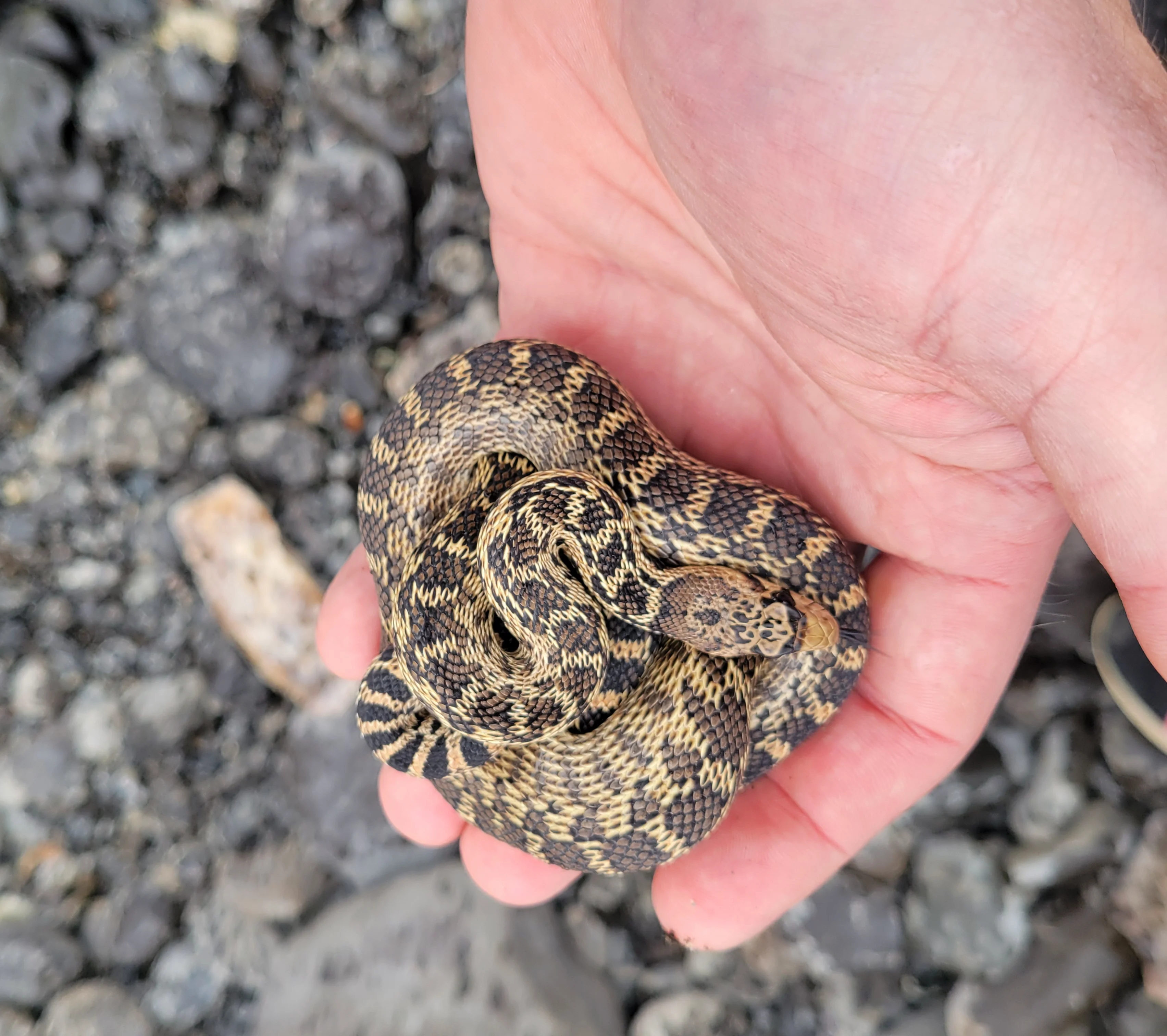 ··Seamasters ForeverPituophis - this little gopher snake was sheltering from cold wind and rain under a rock along the John Day river. I was looking for skipping Stones when I found him; I didn't take any pictures of it but my children and their cousins were kind enough to build him a rock shelter which he happily relocated to.