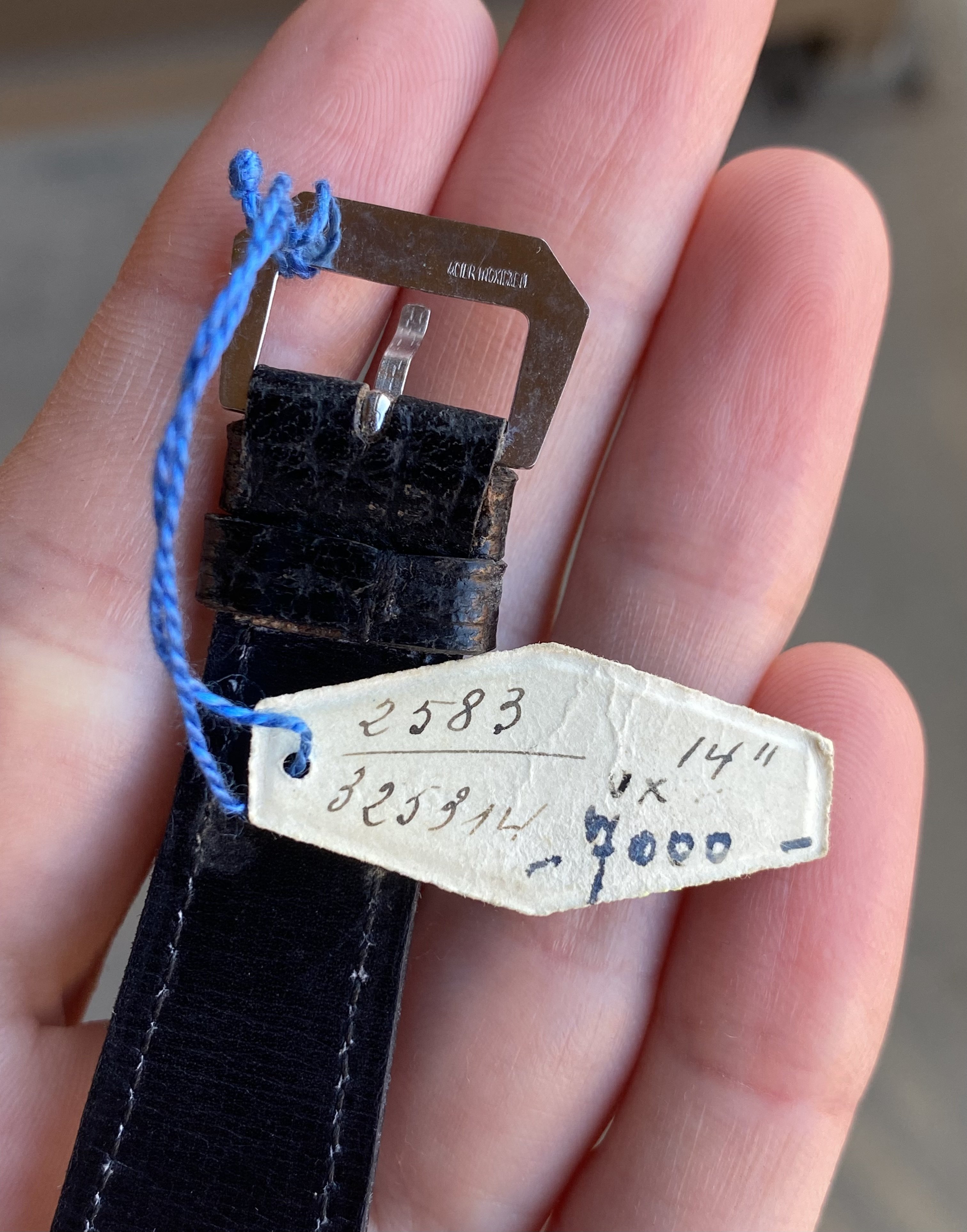 Strap/hang tag: Comes on its original leather strap and buckle, with the original hang tag attached.