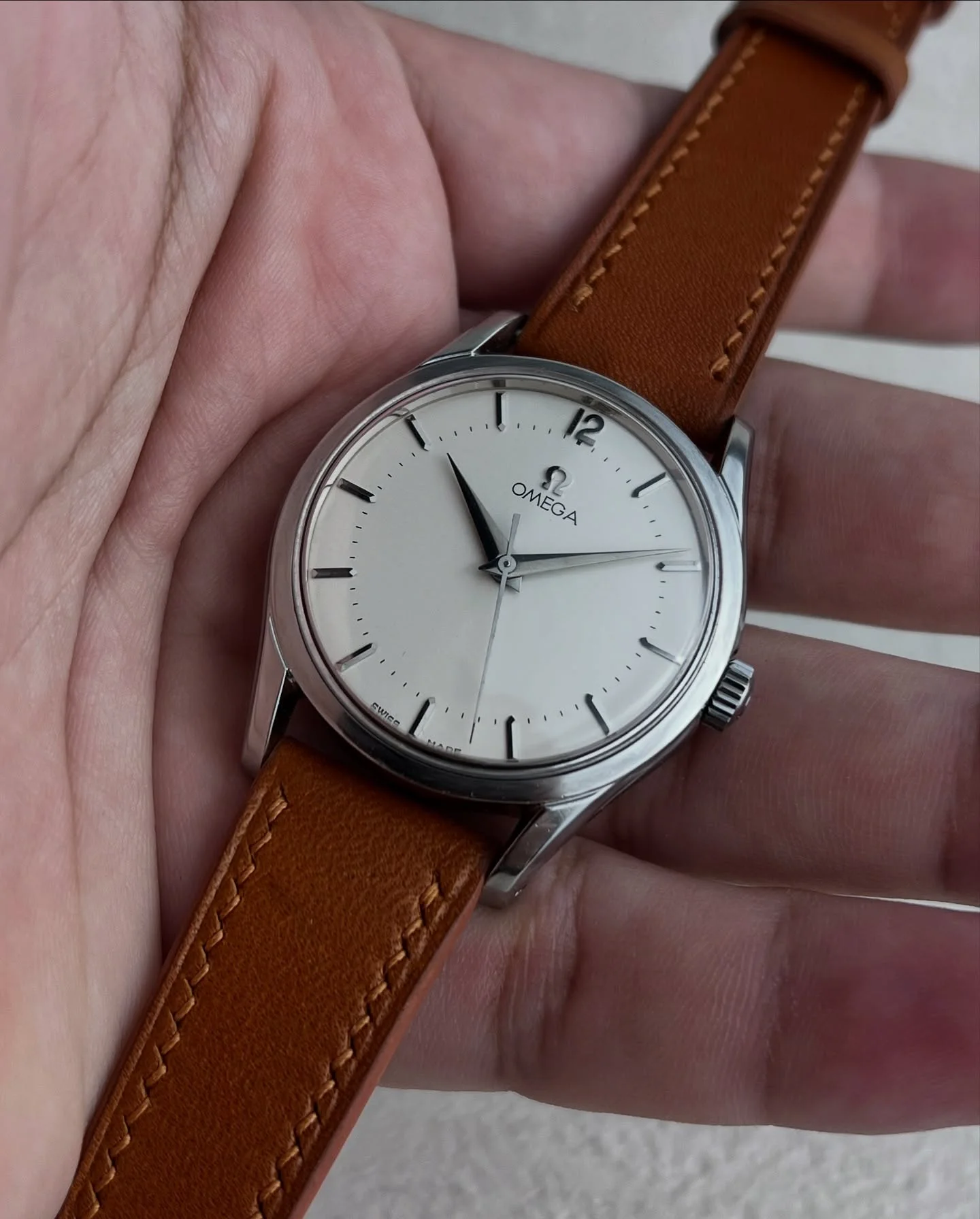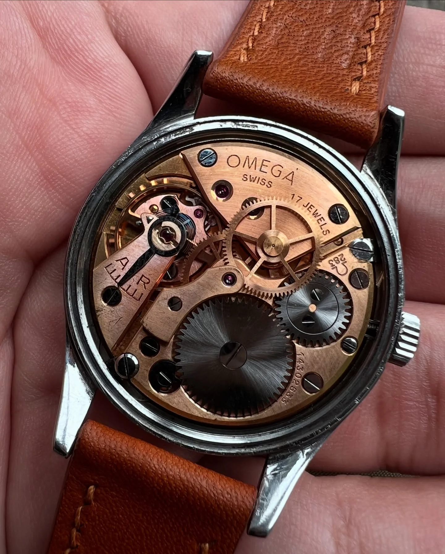 I found this listing from a local online seller: Omega cal 283. The dial looks very clean, but I cant decide whether the dial is original or a repaint? I found that the Omega font is suspicious, but I might be wrong.