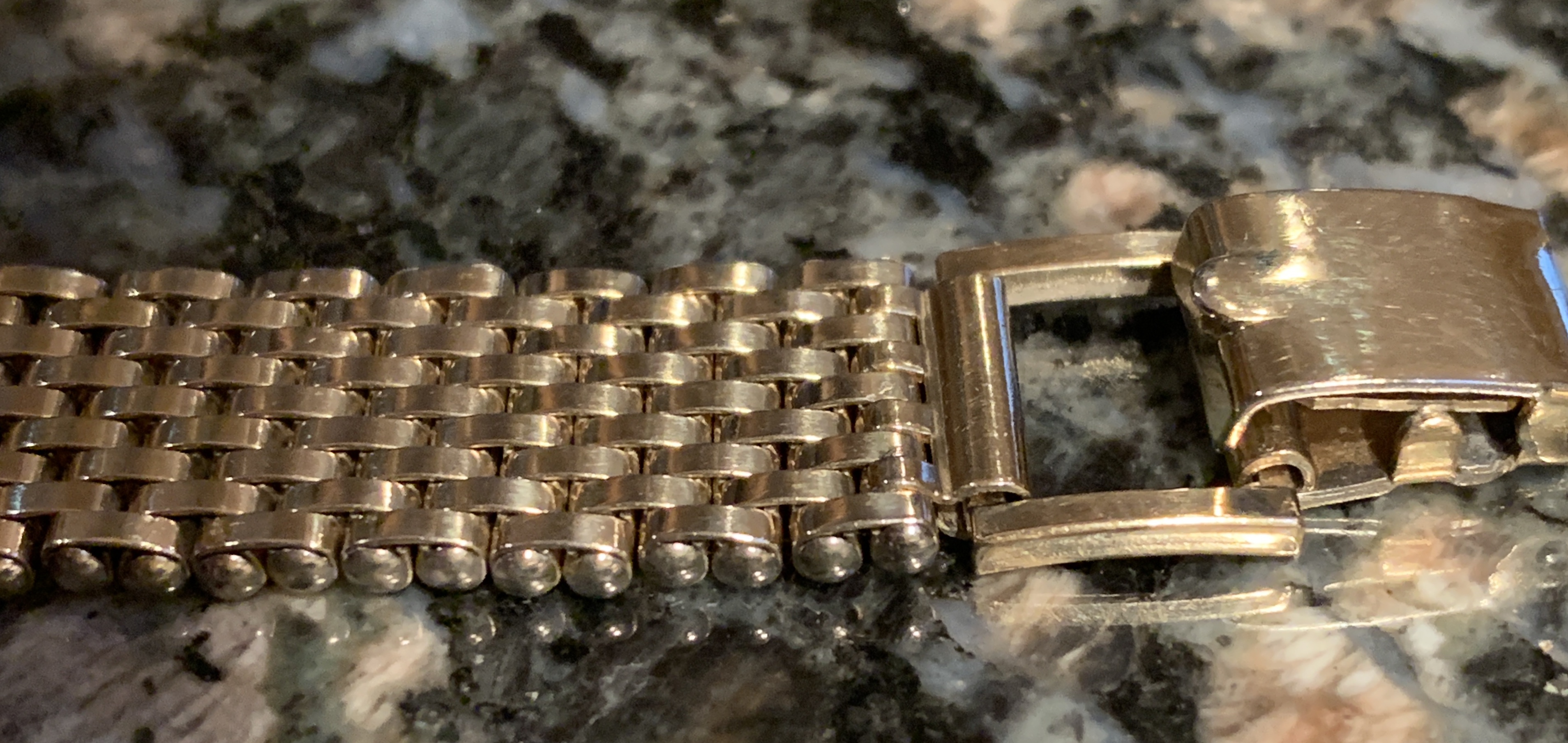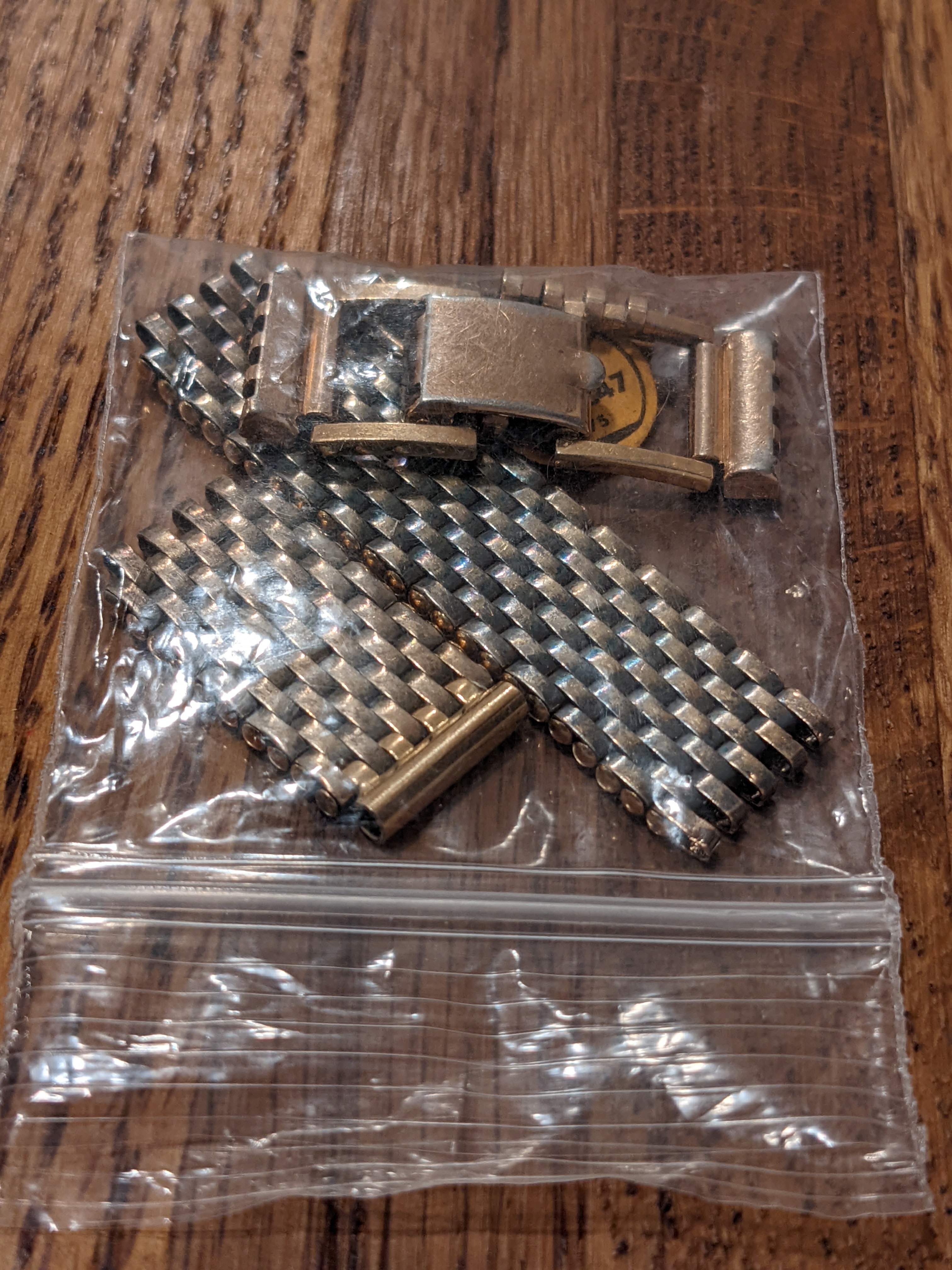 I grounded the end of the screw-shaped head of a replacement pin so it resembles the ones on the bracelet. I think it looks good. The pin has a smaller diameter (1.2 mm) than the original pin (1.5 mm) so the bracelet will look a little loose at that link. I might purchase a larger diameter pin from Esslinger and modify those.