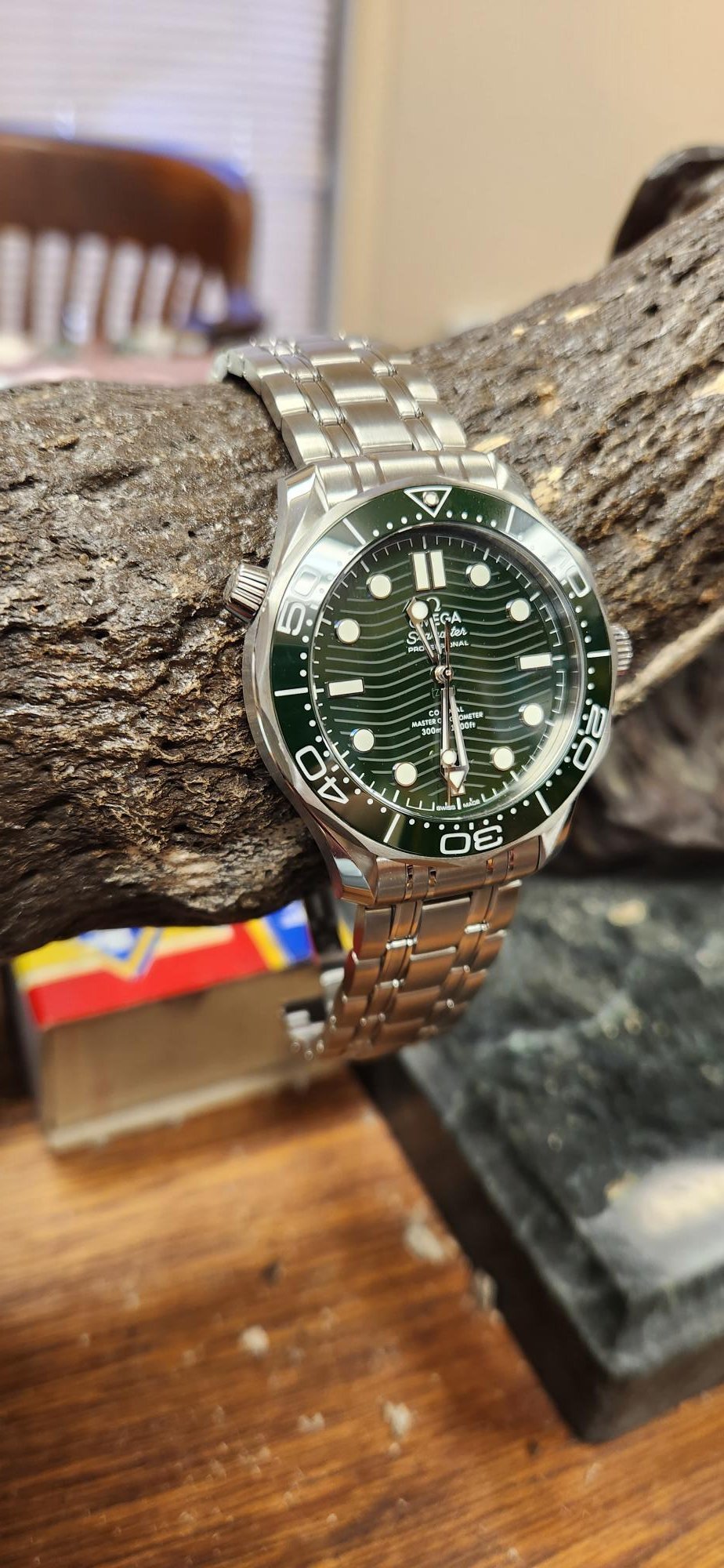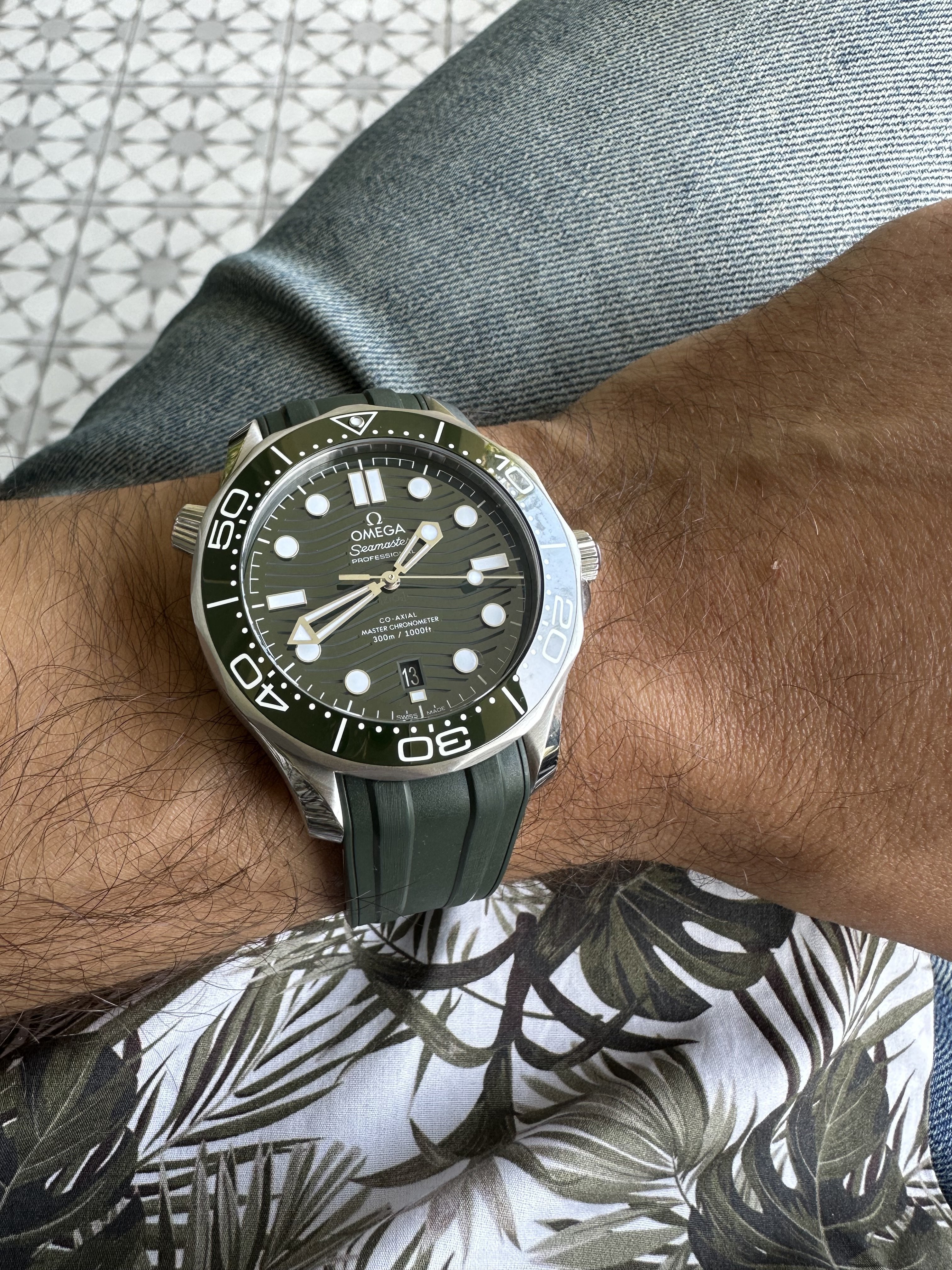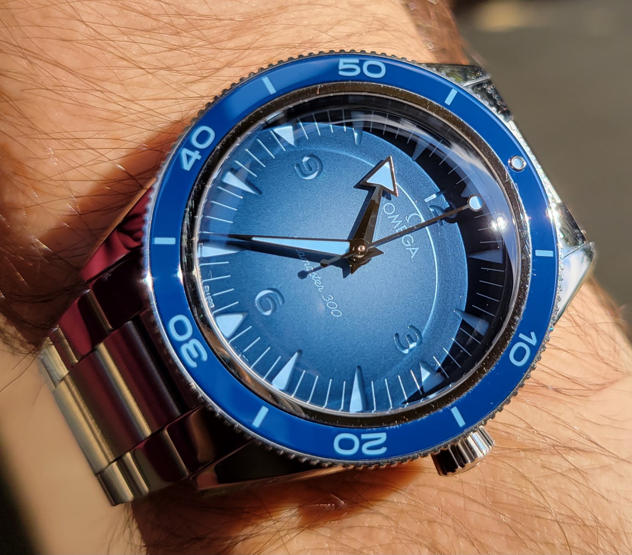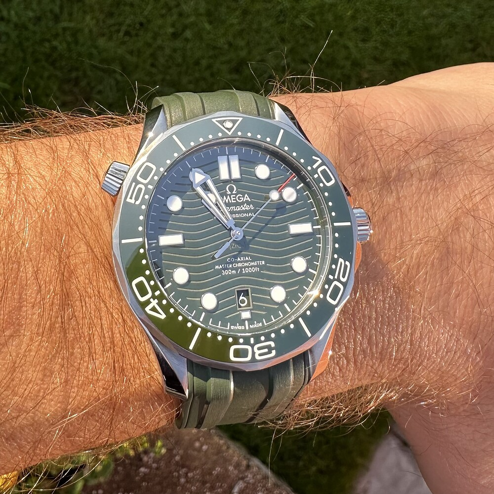 I've thought about that but I think it was very shrewd of Omega to omit it.The red-tipped second hand would've been a nod to every modern SMP, but not having one makes it different and its own thing. This is fitting since green is a new color never offered before. Without the red "Seamaster" text on the dial, which would be almost entirely lost on the dark green dial, it doesn't look proper and seems like an affect. It would be (is) not the same watch with red accents. I don't think having them would make it more or less flashy, but would definitely not make for a better looking watch..