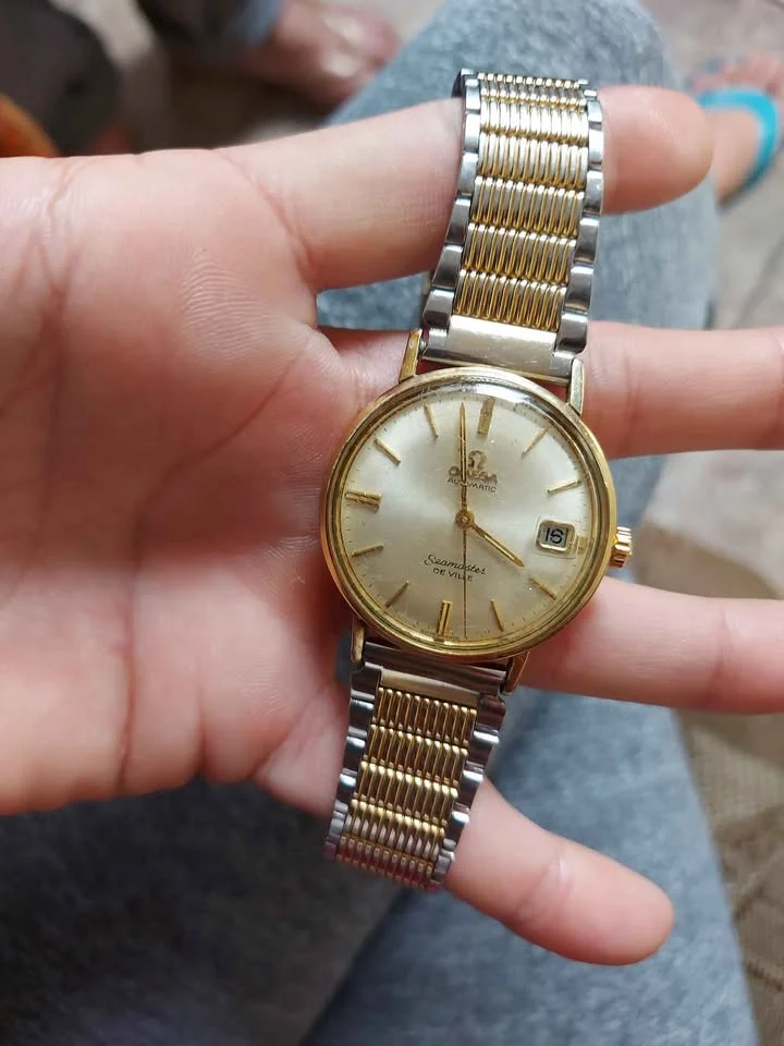 These are usually gold-filled and the price difference between GF and 14k gold is massive. So you need to determine that for yourself. Look closely all around the case, including between the lugs. Gold filled, worth a few hundred. 14k gold, over $1k.