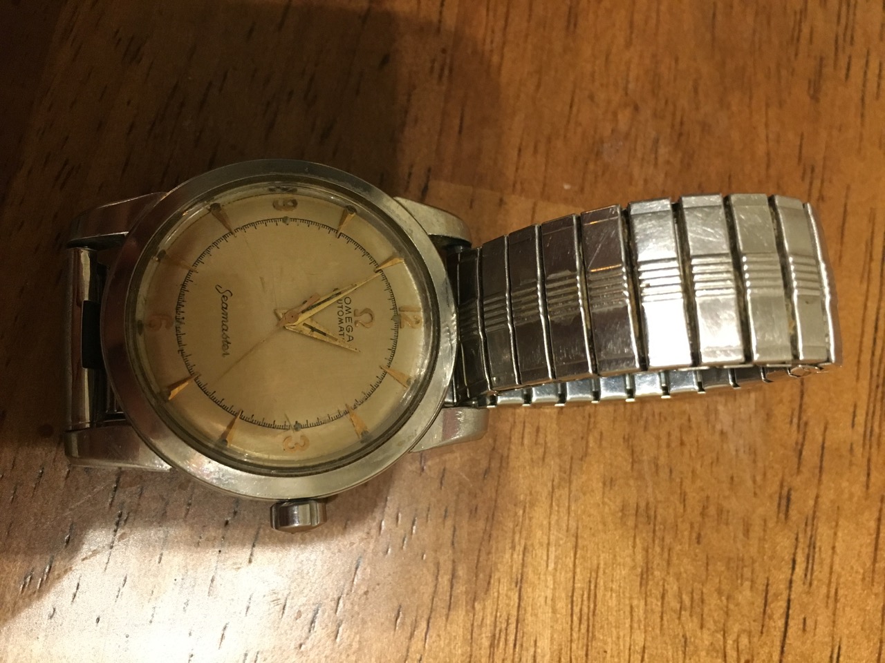 I recently inherited my grandfathers old omega and I plan on restoring it. I have not yet opened it because I do not want to pay to get it opened before I restore it. I believe it is a 35x cal automatic but I cannot find a Seamaster with the second indicators like this. I have seen Chronometres with this pattern.