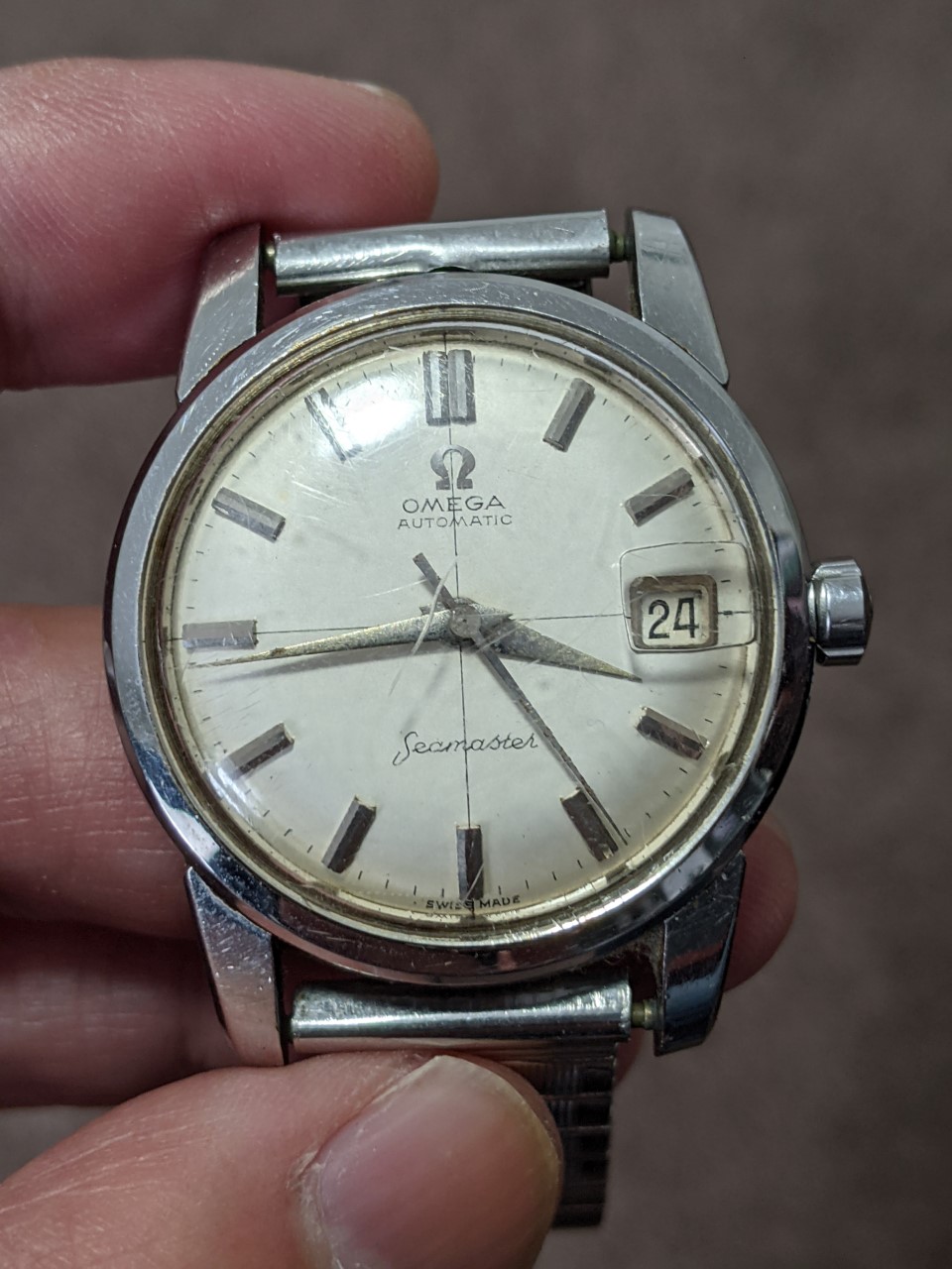 Been thinking about whether I should restore this watch to wearable condition, replacing the bracelet with a nice black leather strap. Apparently, it's never been serviced but it still seems to keep pretty good time. There's also a small ding on the case at the 8 o'clock position which may or may not be able to be polished out. Wondering if anyone out there has ever undertaken a project like this and what the approximate cost might be.