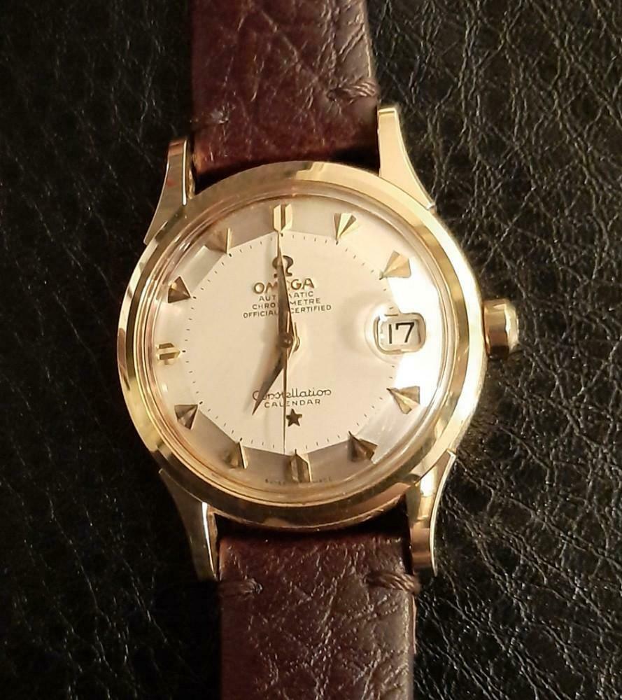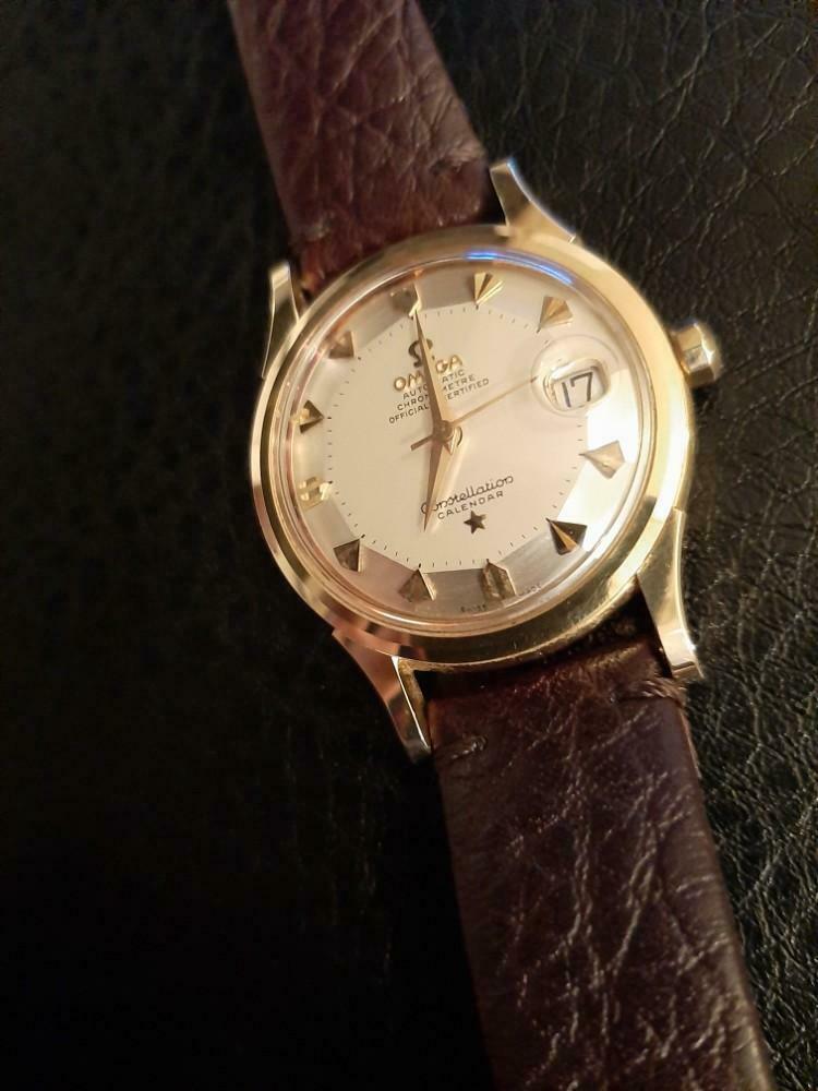 I just came across this connie below that peeked my interest. Now unless I'm blind, the caseback shows it to be a 2943/2954 SC. The seller says it's all original (don't they all). I do have some concerns. Is this a redial? Some of the indices like 10, 11 and 1 o'clock seem misaligned. Angel of the photo maybe? And what about the crystal? Do original connie crystals ever have a cyclops lens?
