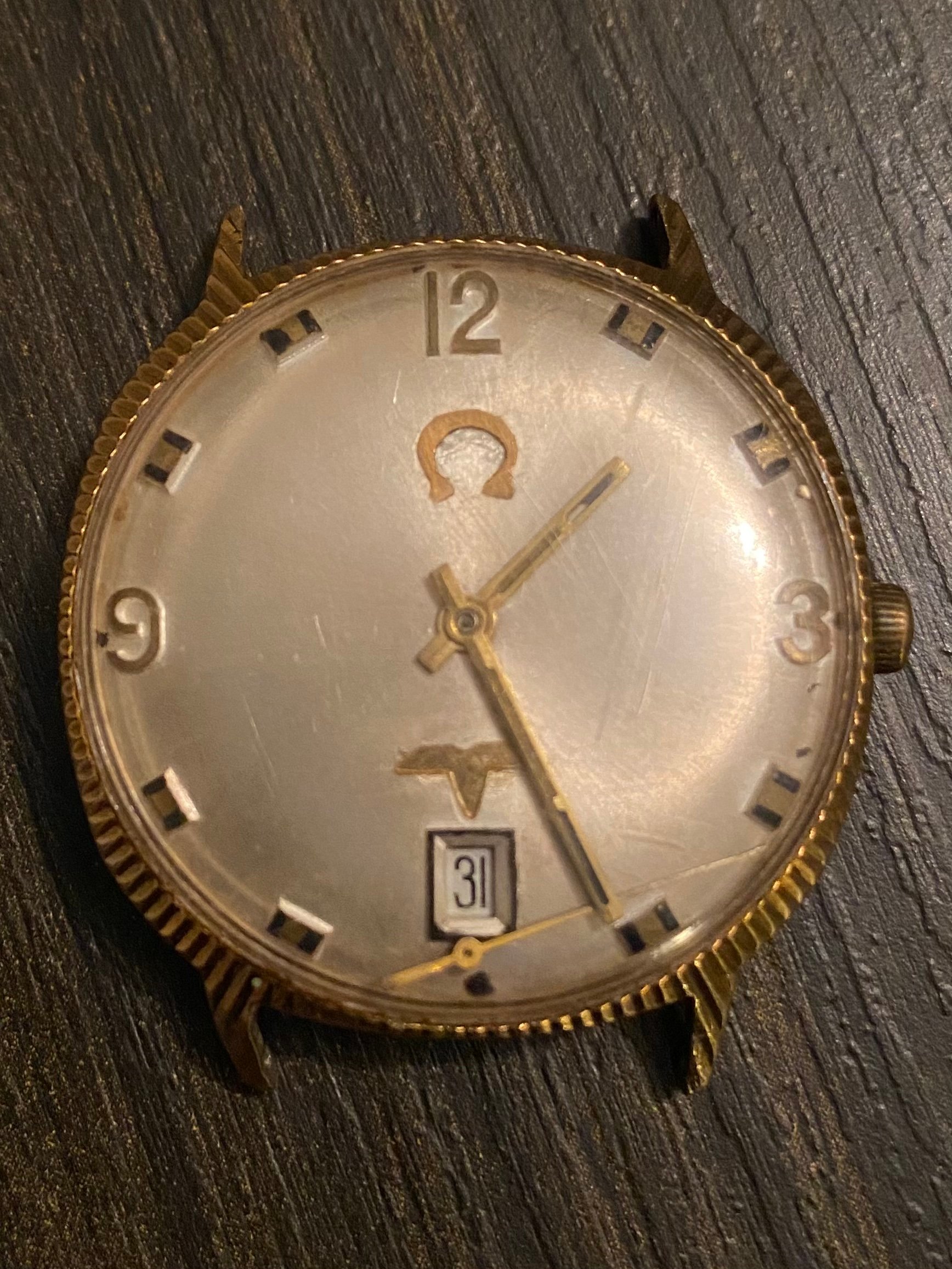 This is most definetely not Omega, as you said it yourself, the movement has no signature and one of the two symbols on the dial remooootely reminds one of the Omega symbol. This dial and the case are therefore also not Omega.