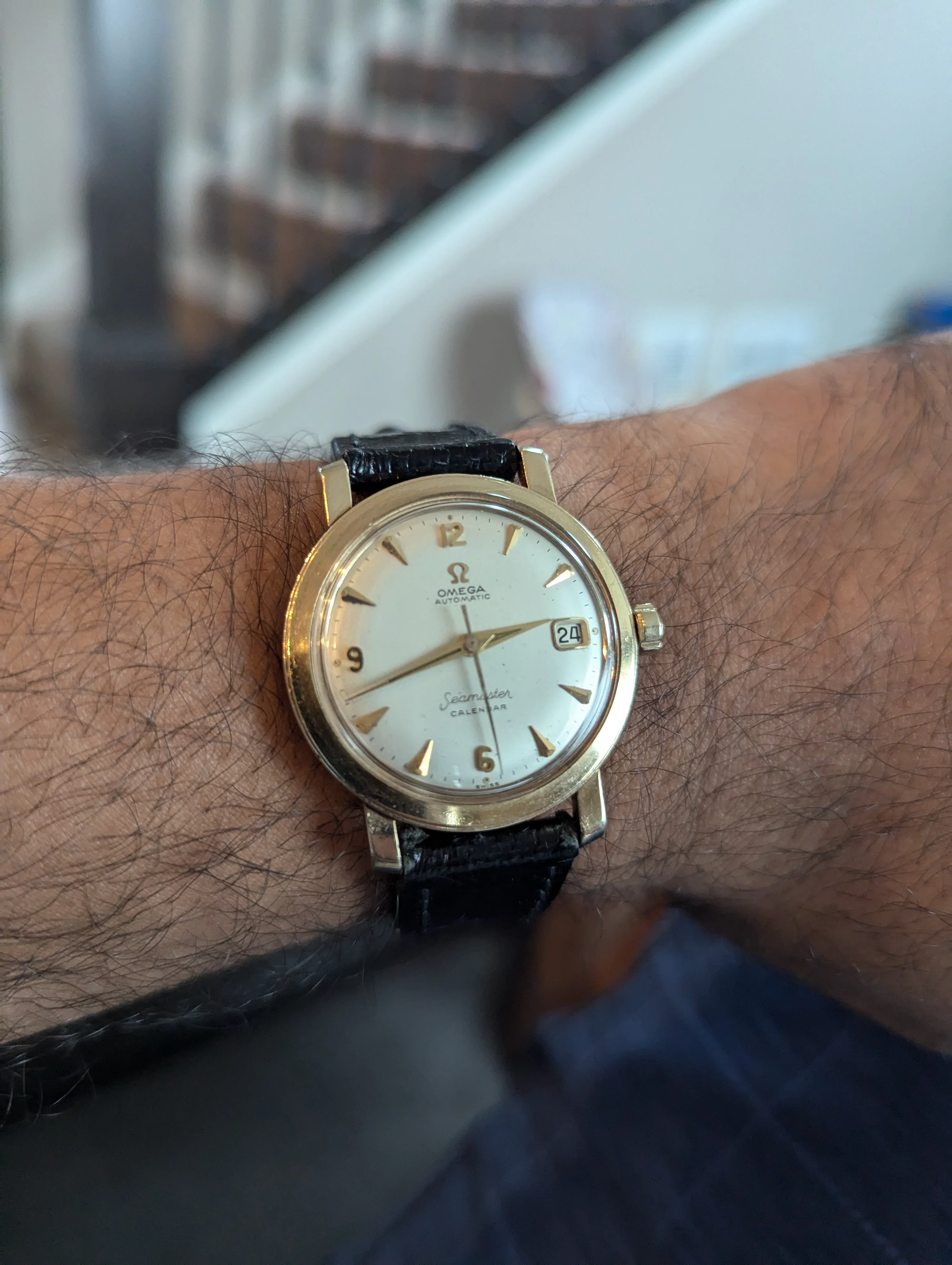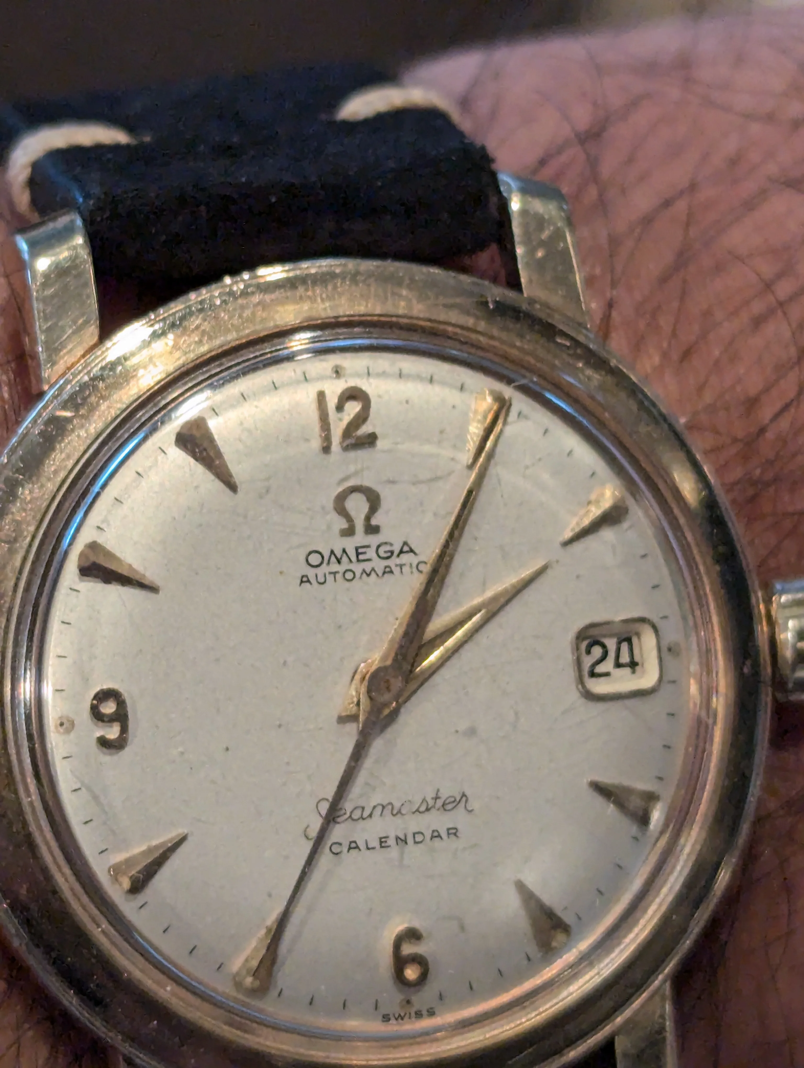 Is it just the way the image is shot or does the last photo show the watch with a different crown (a service crown)? Maybe it's just an optical illusion but I would double check that it comes with its original clover crown before making an offer.