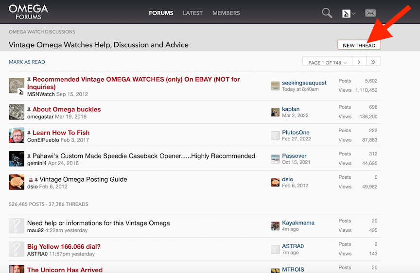 Not sure if this is serious or a joke, but here you go. From the main page of the vintage omega watches discussion forum. Can you see the big red arrow pointing to the NEW THREAD button? BTW, I saw your watch in the other thread, it looks like the dial is damaged. If so, it will be worth a few hundred max IMO.