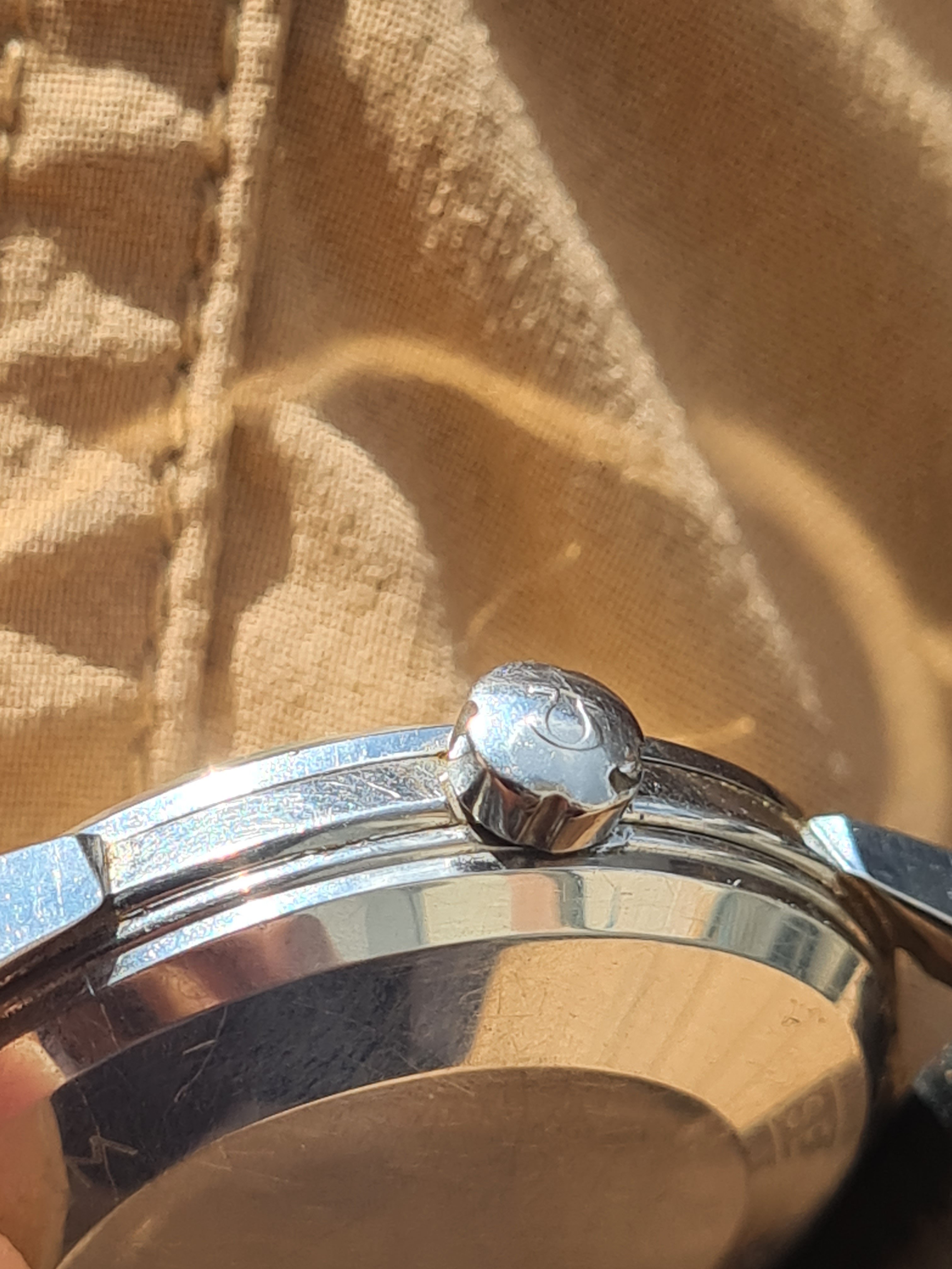 The crown is signed with the Omega logo.