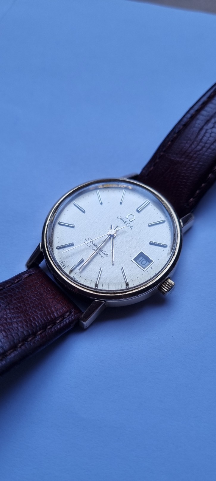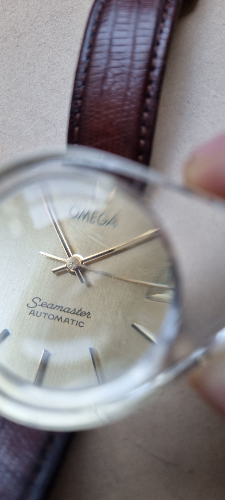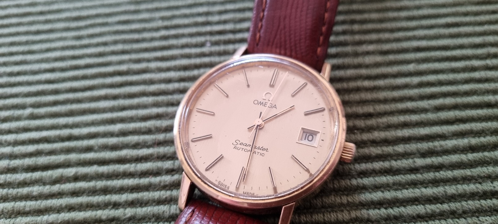 I wouldn't go as far as decent. 20碌m (or 0.02mm) It is the minimum seen on Omegas, other plated models have used up to 80碌m. The thickness of the gold layer on the gold capped models is more like 200碌m. It used to be suggested by pocket watch makers like Dennison that a micron lasted for a year of wear so 20碌m was a 20 year case. This watch is now 40 years old (but presumably not worn every year!) so could be assumed to be fairly worn and indeed the lugs look pretty brassed.