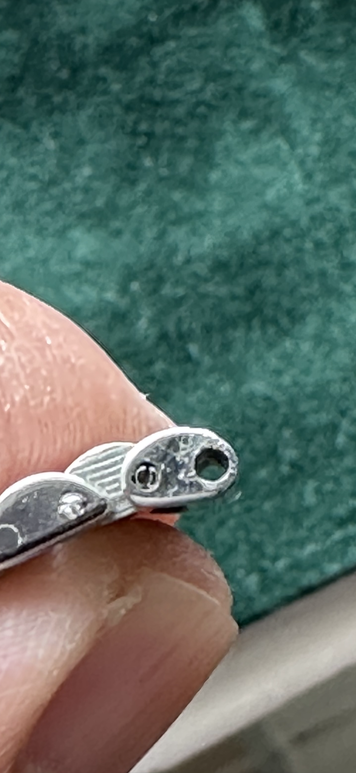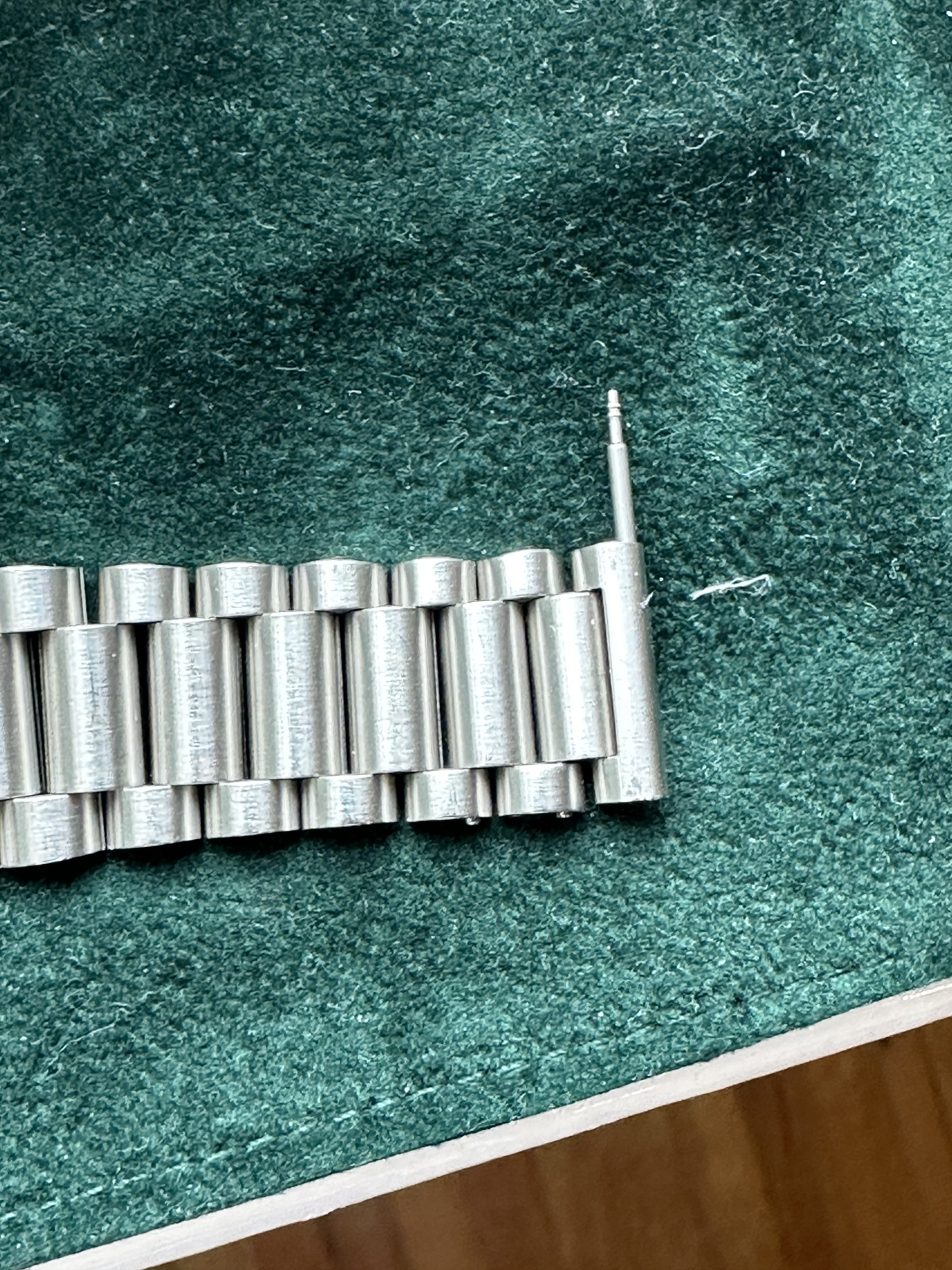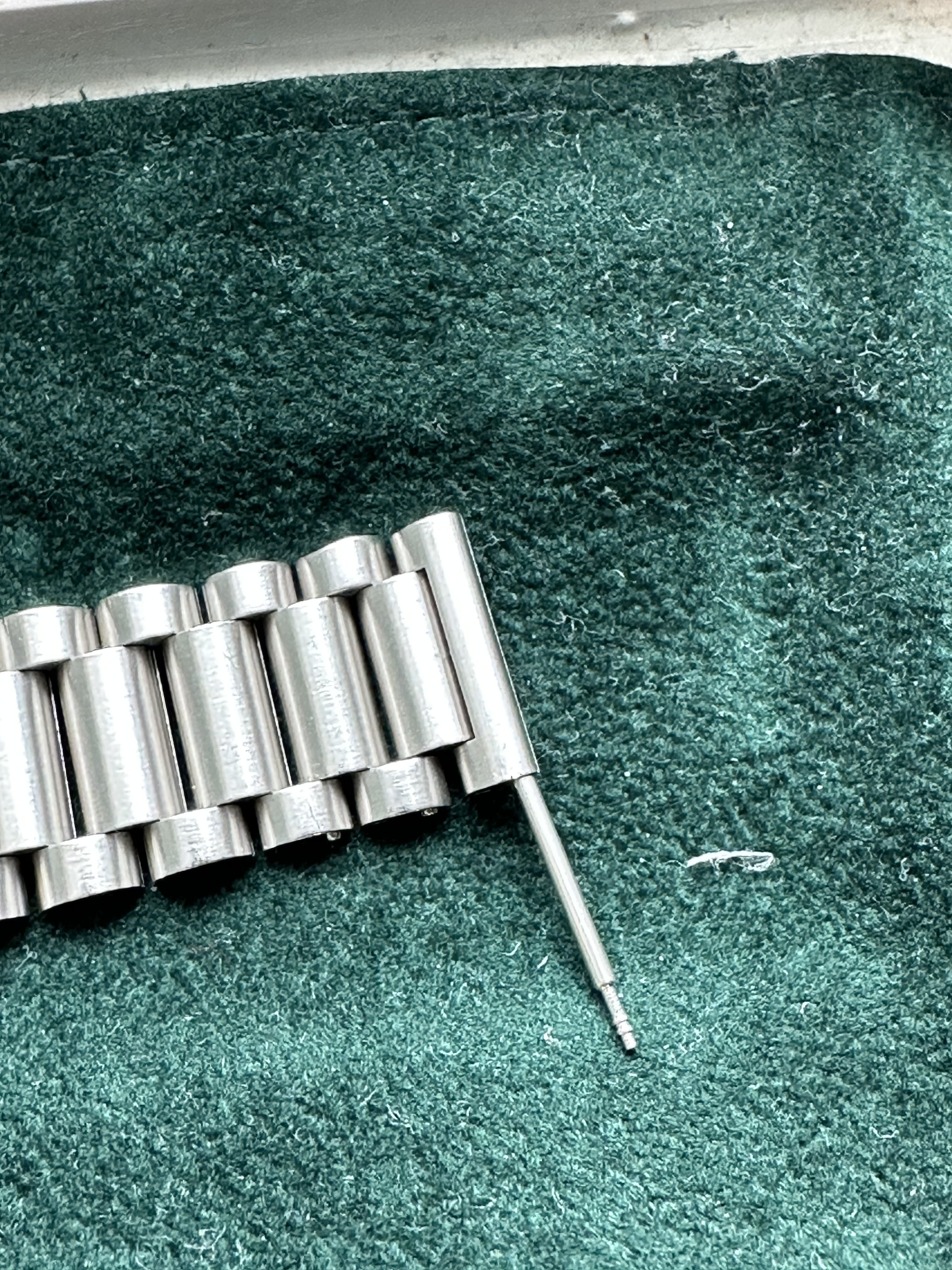 The spring bar that attaches the bracelet link to the clasp microadjust holes broke and I can’t find the replacement. Omega said the part is discontinued and sent me the “replacement” which is 1.3 mm. The bar (and other 1.3 mm bars) goes in almost halfway from one side of the link, but not at all from the other side. The fact that 1.3 can go in halfway from one side tells me that the link itself may be damaged on one side. I examined it and don’t see anything obvious though.