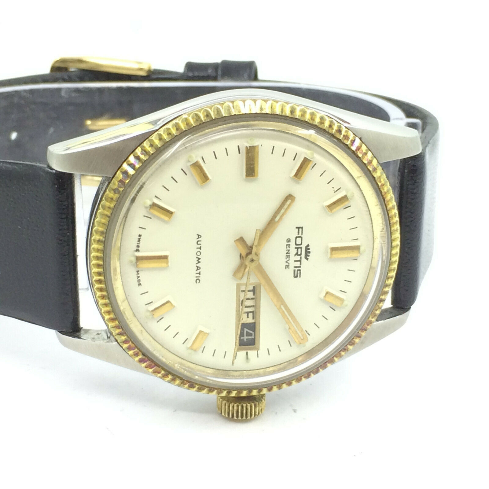 Watch is a Fortis Geneve Stratorliner w/ Daydate going by the look/style I think its from the 1960s.