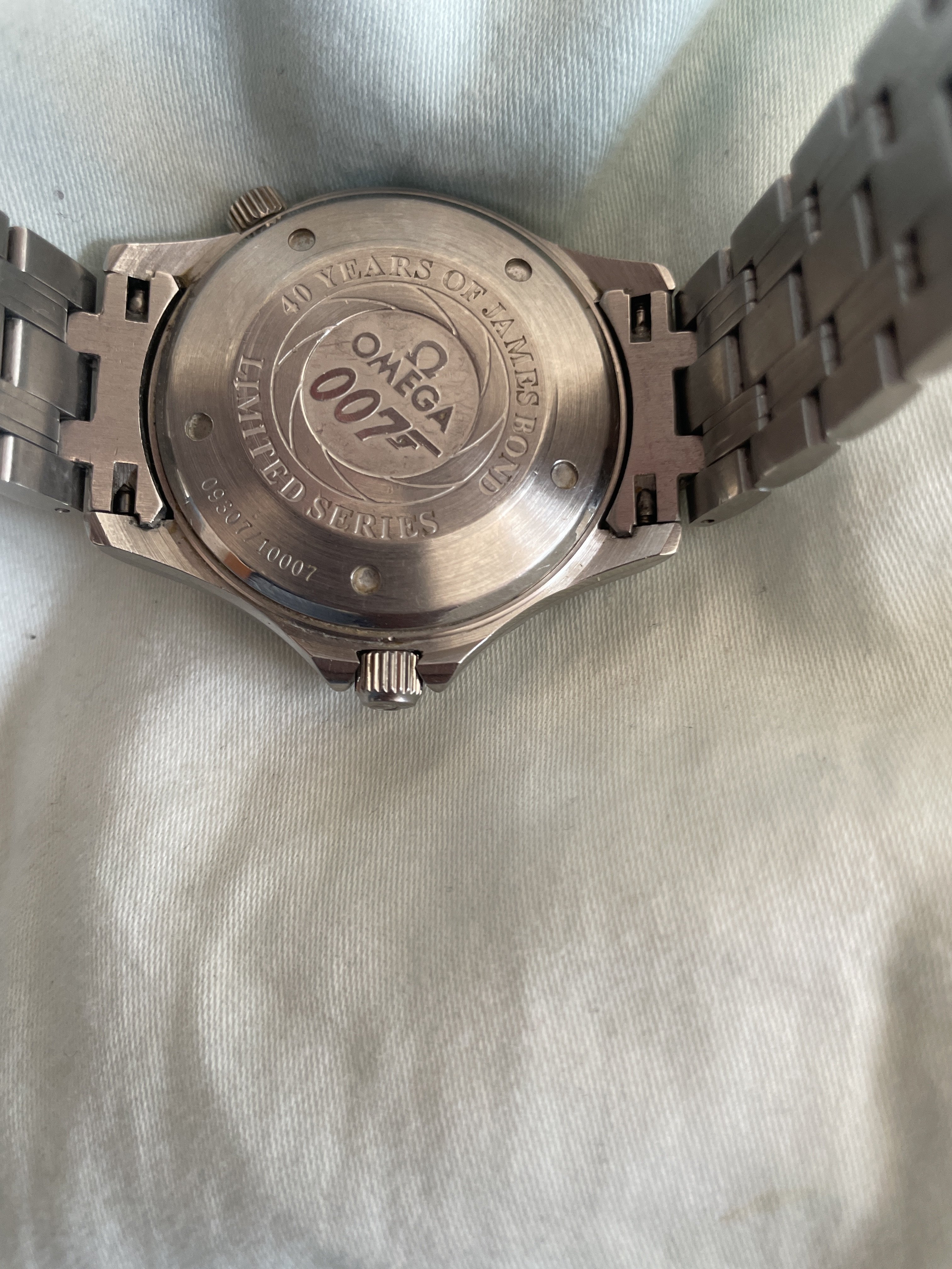 ·Hi I have omega seamaster professional chronometer 007 40 years of james bond limited edition I can’t find the one I have anywhere it’s got 007 on the second hand I can’t find anyone with. That at all also I can’t find the serial number at all can someone pls help me find out if it’s real or fake I have no clue I attached a few pictures thank you