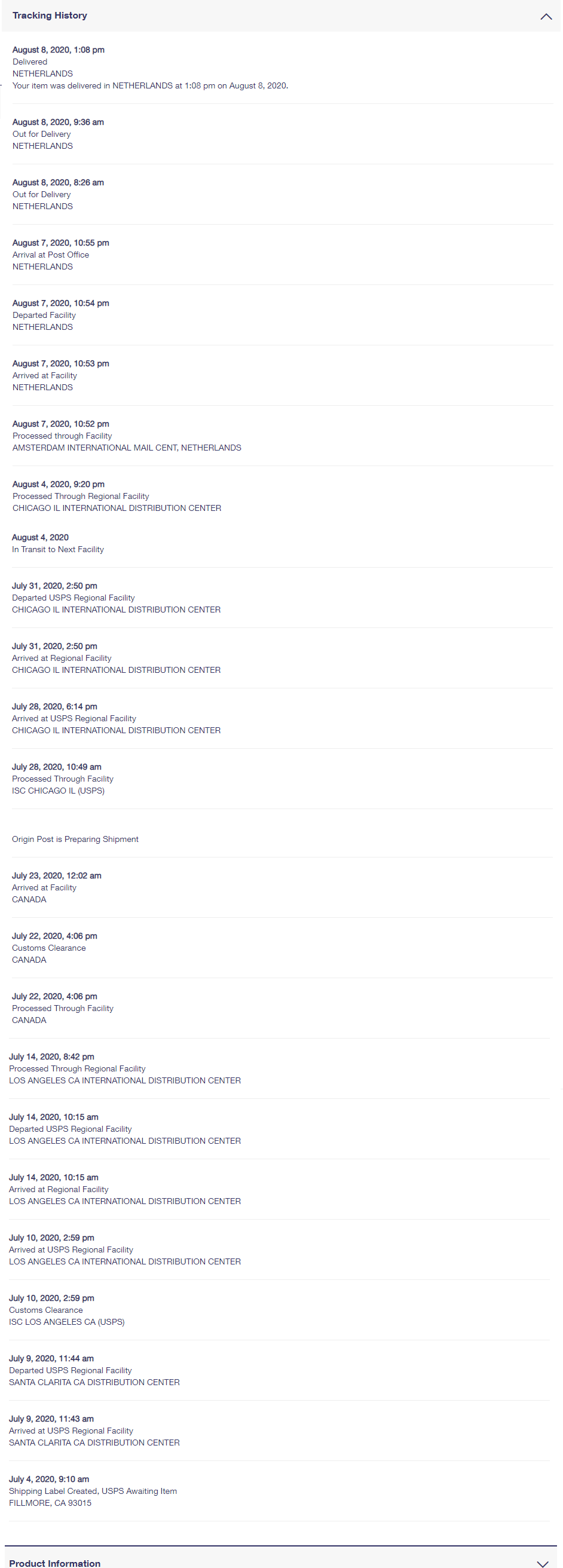 Last Info from USPS: