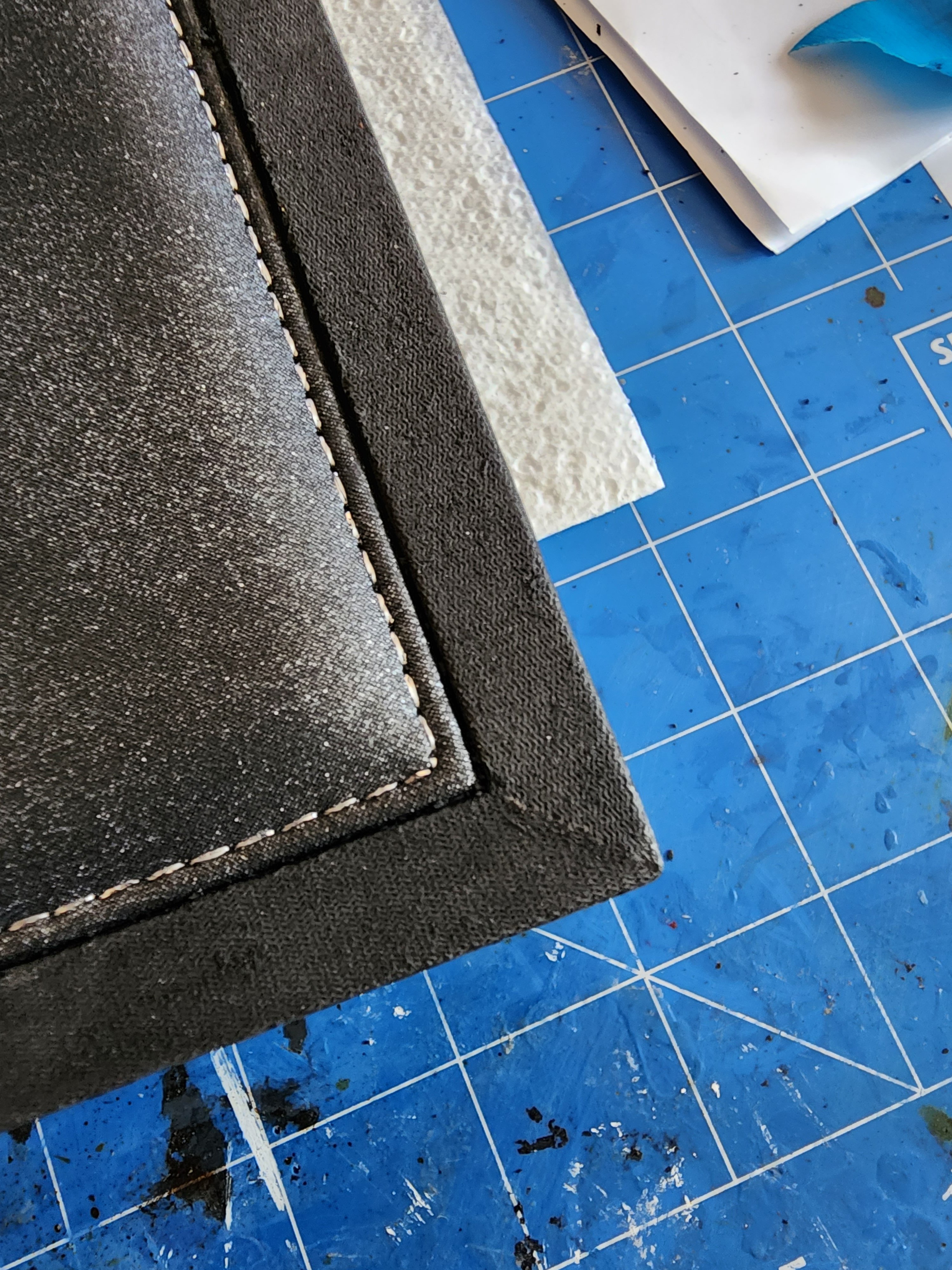 Right now I am thinking to find some black Faux leather with a thickness of around 0.5mm and re-wrap it.