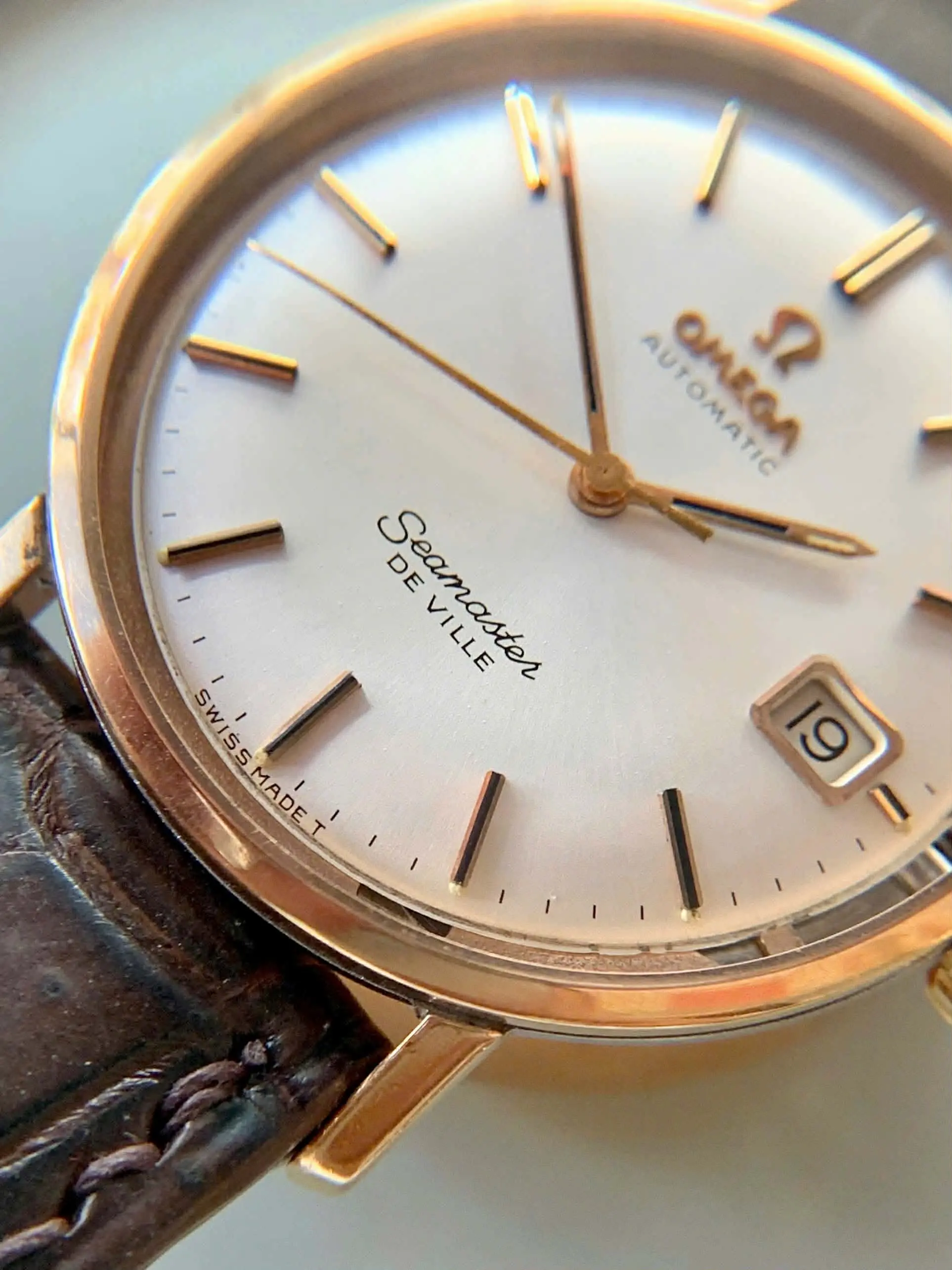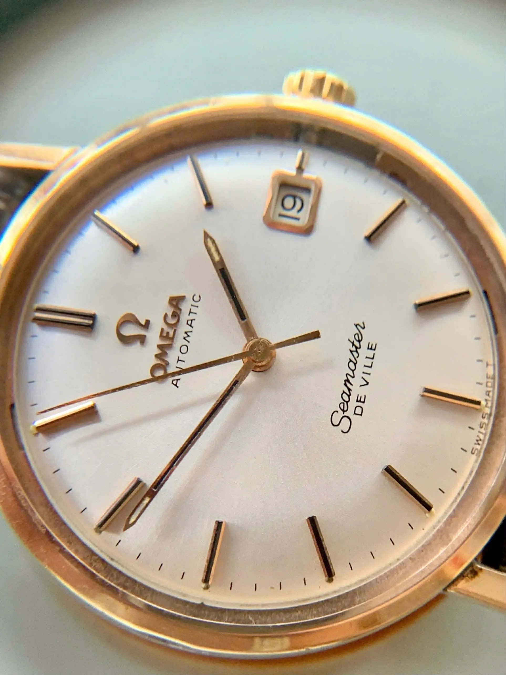 I just found a store near my house selling an Omega watch with a solid 14k rose gold bezel.
