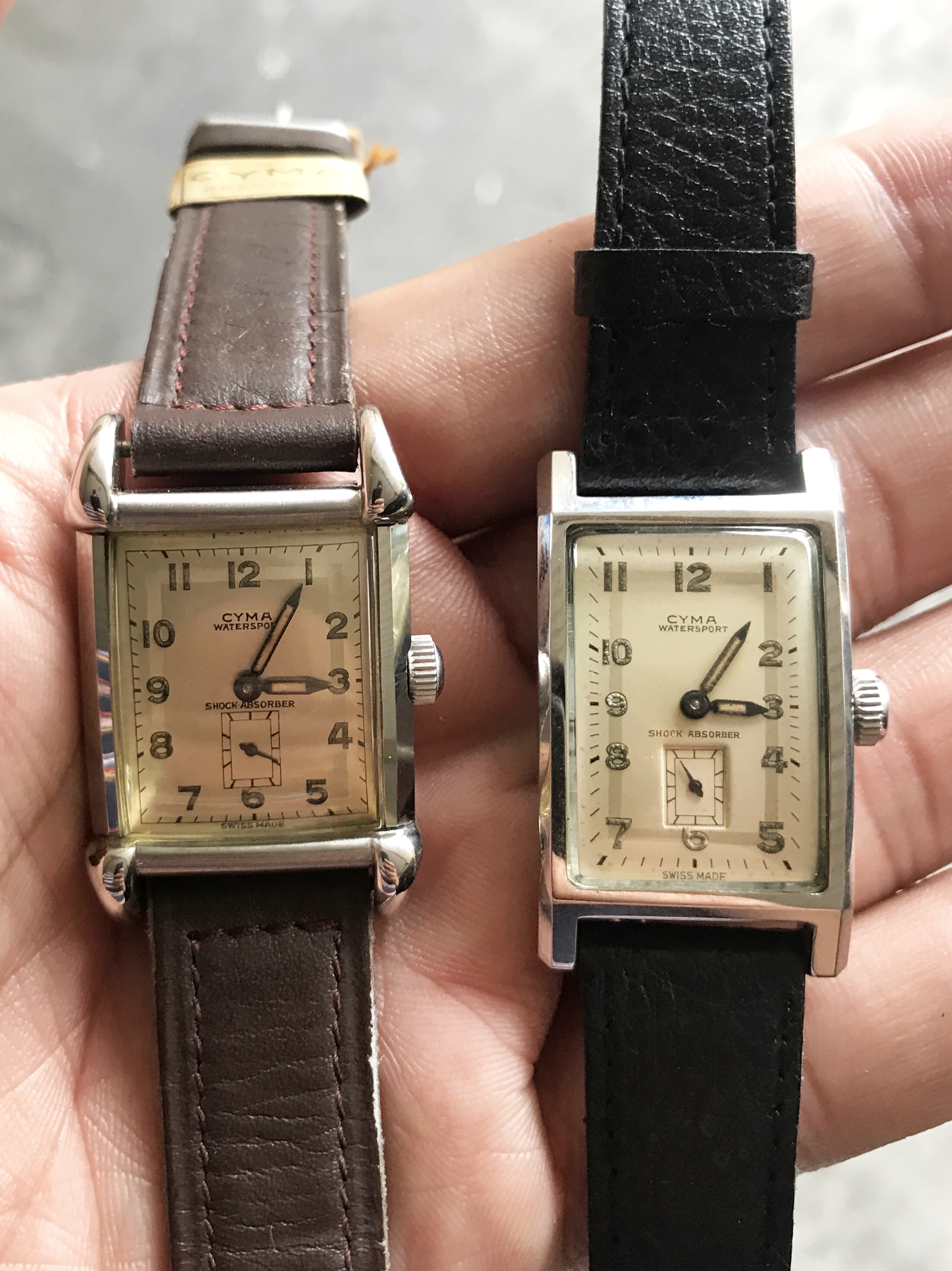 I'm assuming both are from the 1940s (can anyone from the forum confirm?). The crown on the tear-drop lug might be a replacement(?). Otherwise, they are both in good condition - minimal wear, nice dial and creamy lumes. With the right straps, they’d even look better for sure.