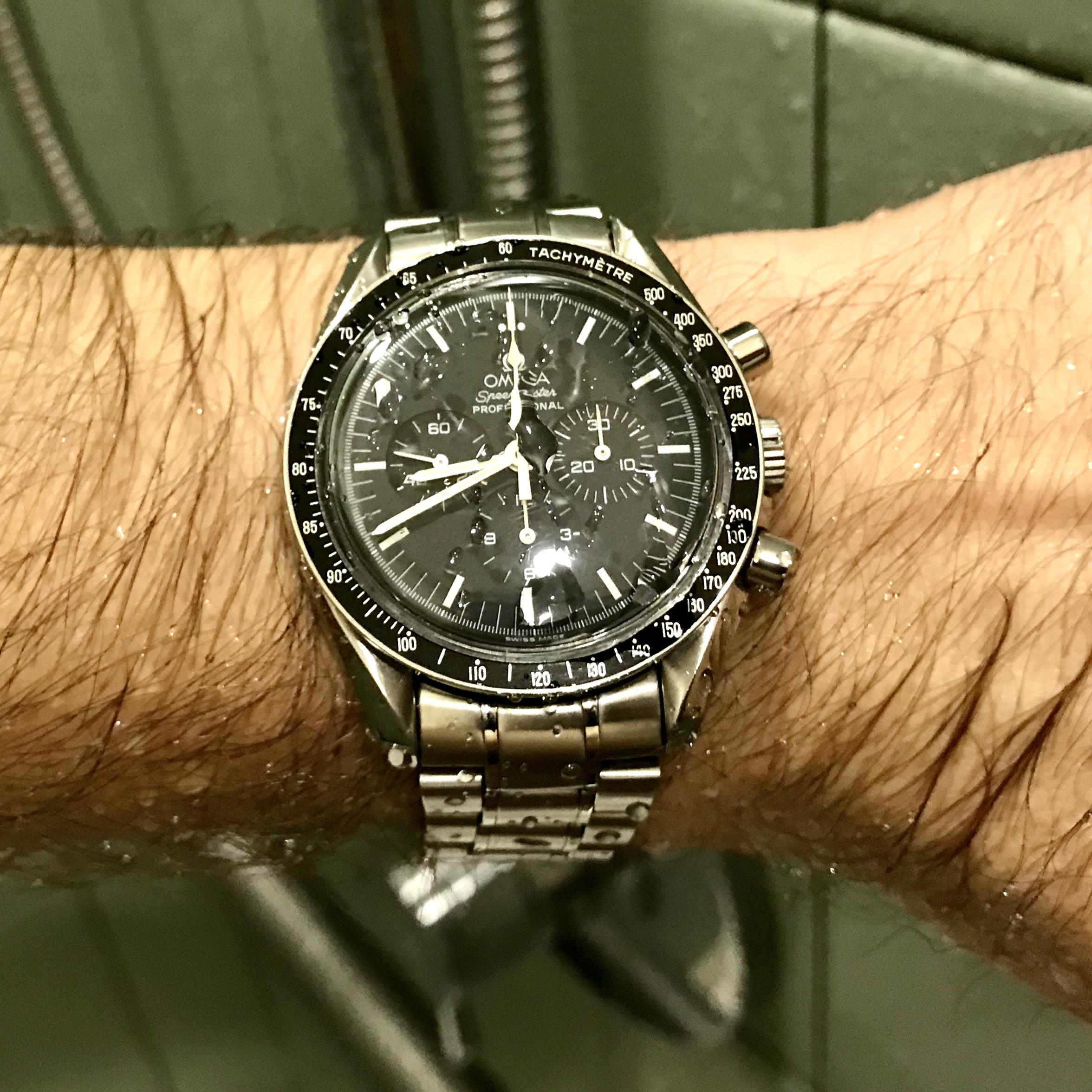 ·I’m a newly minted owner of a Speedy Pro and delighted to say the least. Before this I wore a Tudor 9411 Submariner day-in and day-out, working out, showering, swimming, working on the house, playing with the kids, everything. I’m still honeymooning with the Speedy so it’s on my wrist all day everyday. My question surrounds the relationship a Speedy has with water.