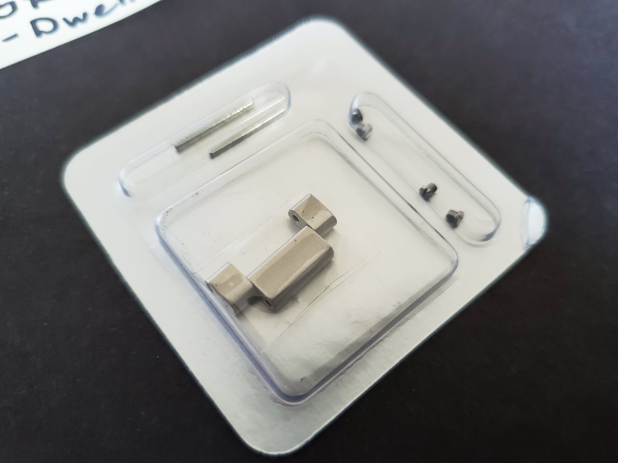 Up for sale is a genuine Omega 17.5mm half-link for the Aqua Terra 38.5mm 8500 19mm bracelet (1587/986). Brand new/sealed in original packaging. It's fully-brushed except on the sides where the screws are installed and includes 2 pins & 4 screws. Stainless steel.