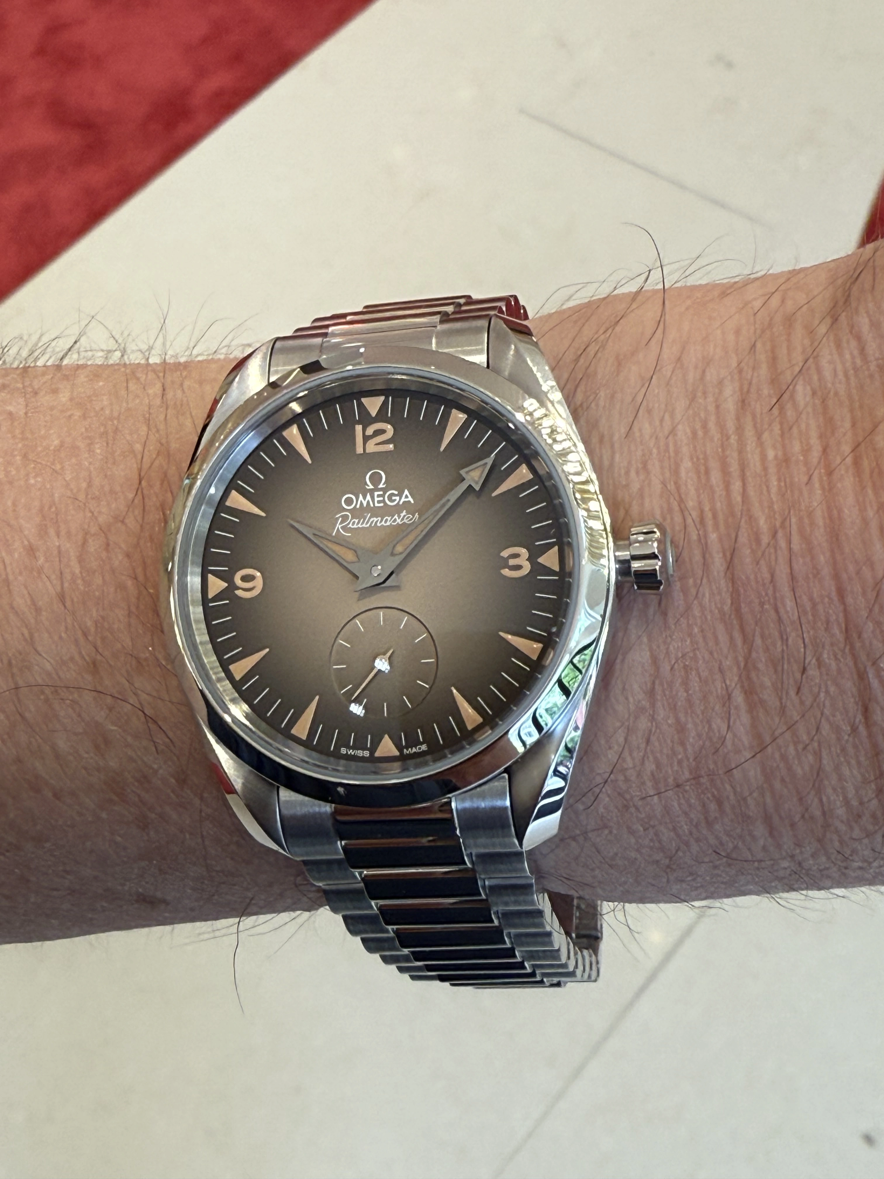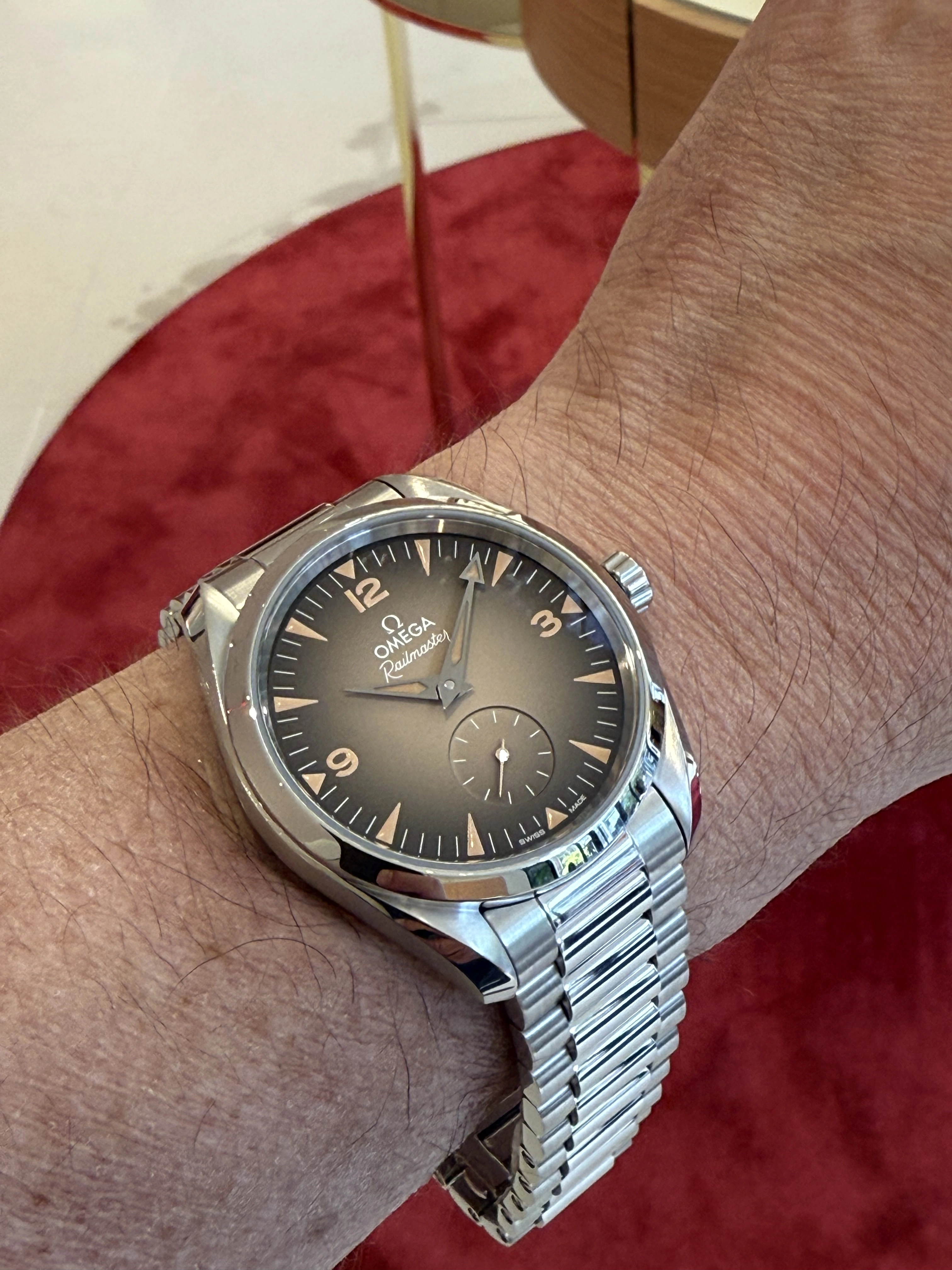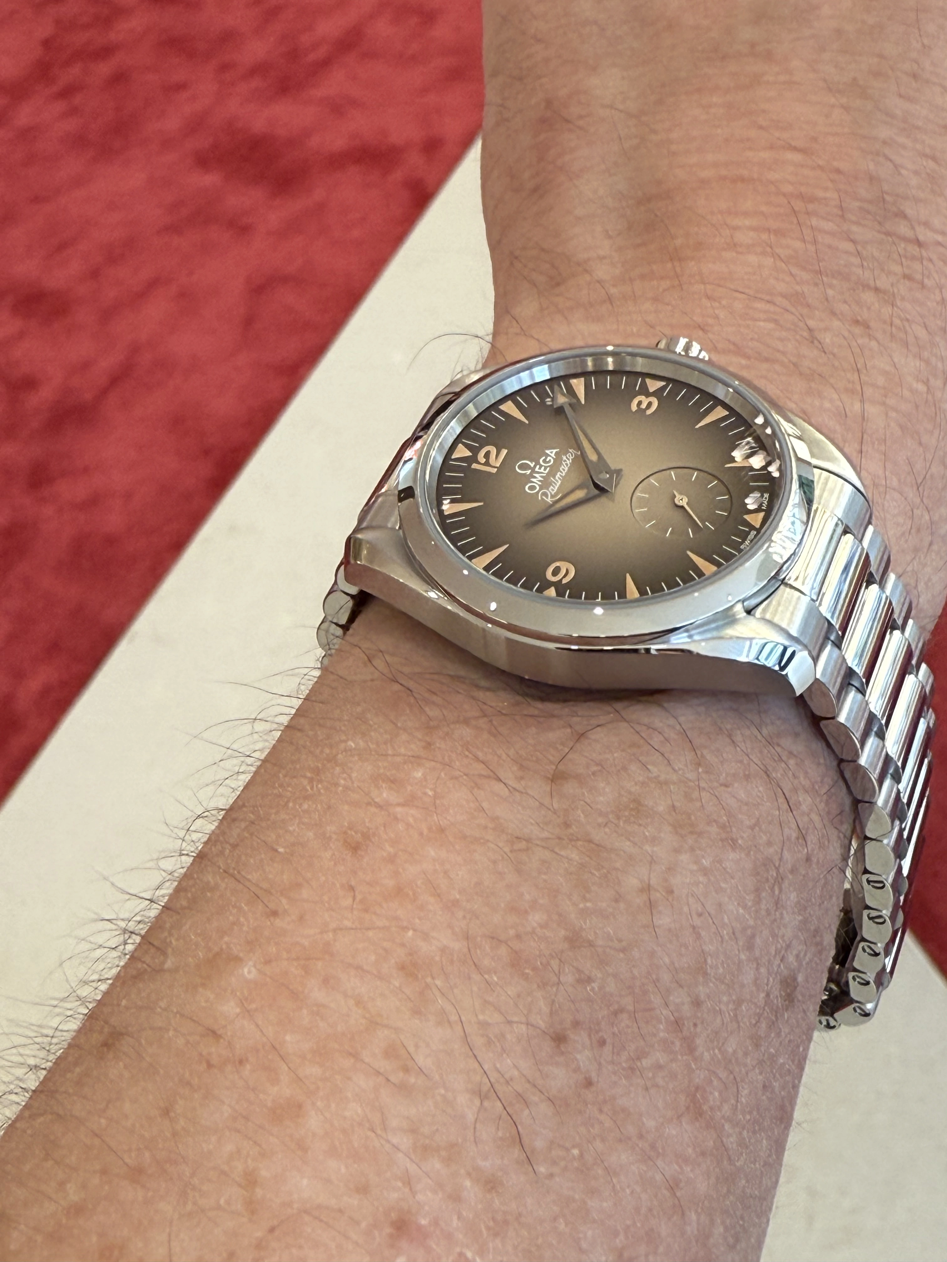 A relaunch of the "out of the park" railmaster with a matte black dial that has a similar texture to the new bronze gold SMP, but with these gradient dials as options, would probably have made sense. Classic, beautiful, slightly textured.