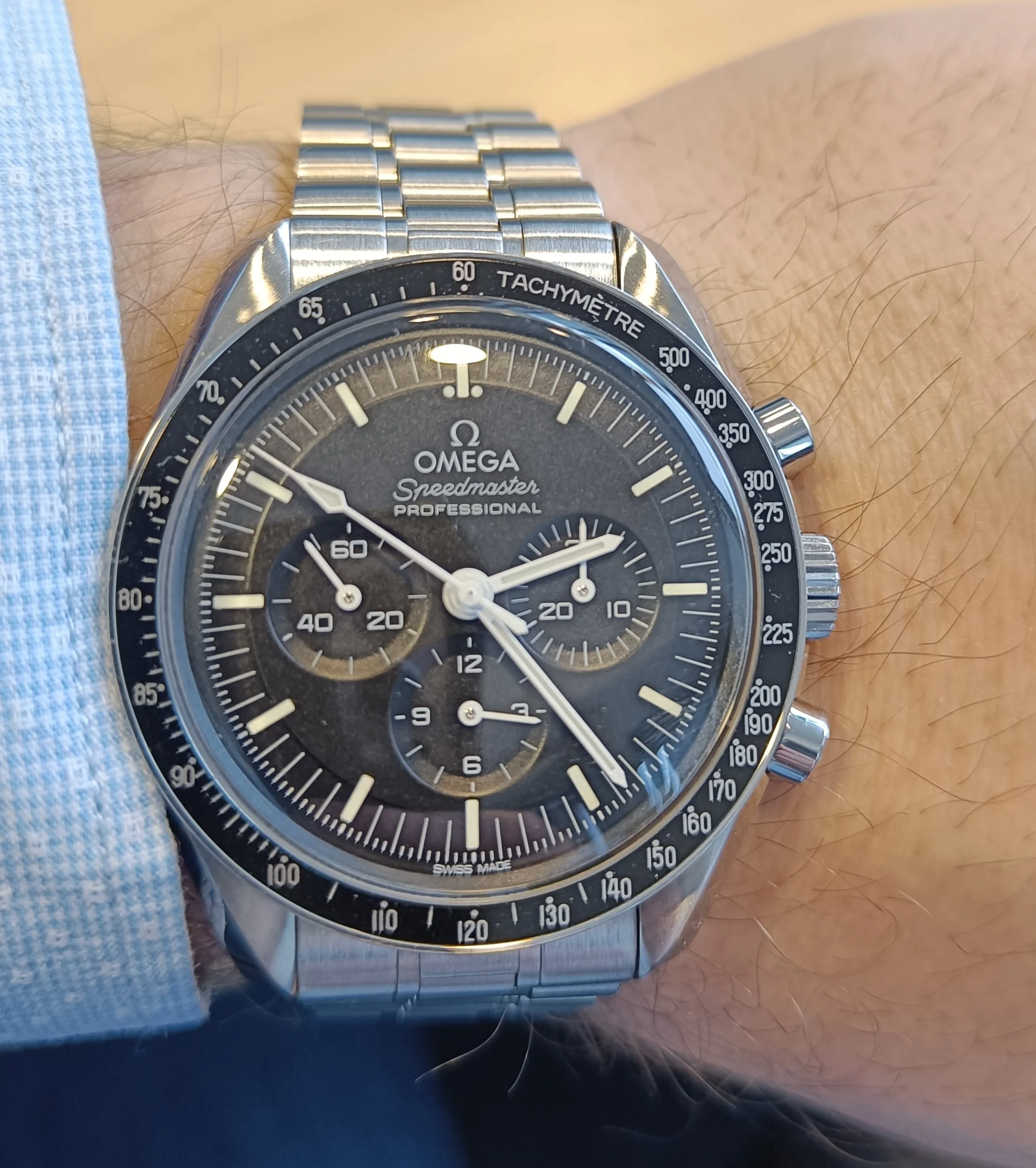 Is this kind of deviation something to be expected with a new Speedmaster? Am I expecting too much in terms of accuracy? I'd appreciate any insights from the community on whether this is normal and how I should proceed. I've attached an image showing the misalignment for reference. Note the chronograph hour- and seconds hand.