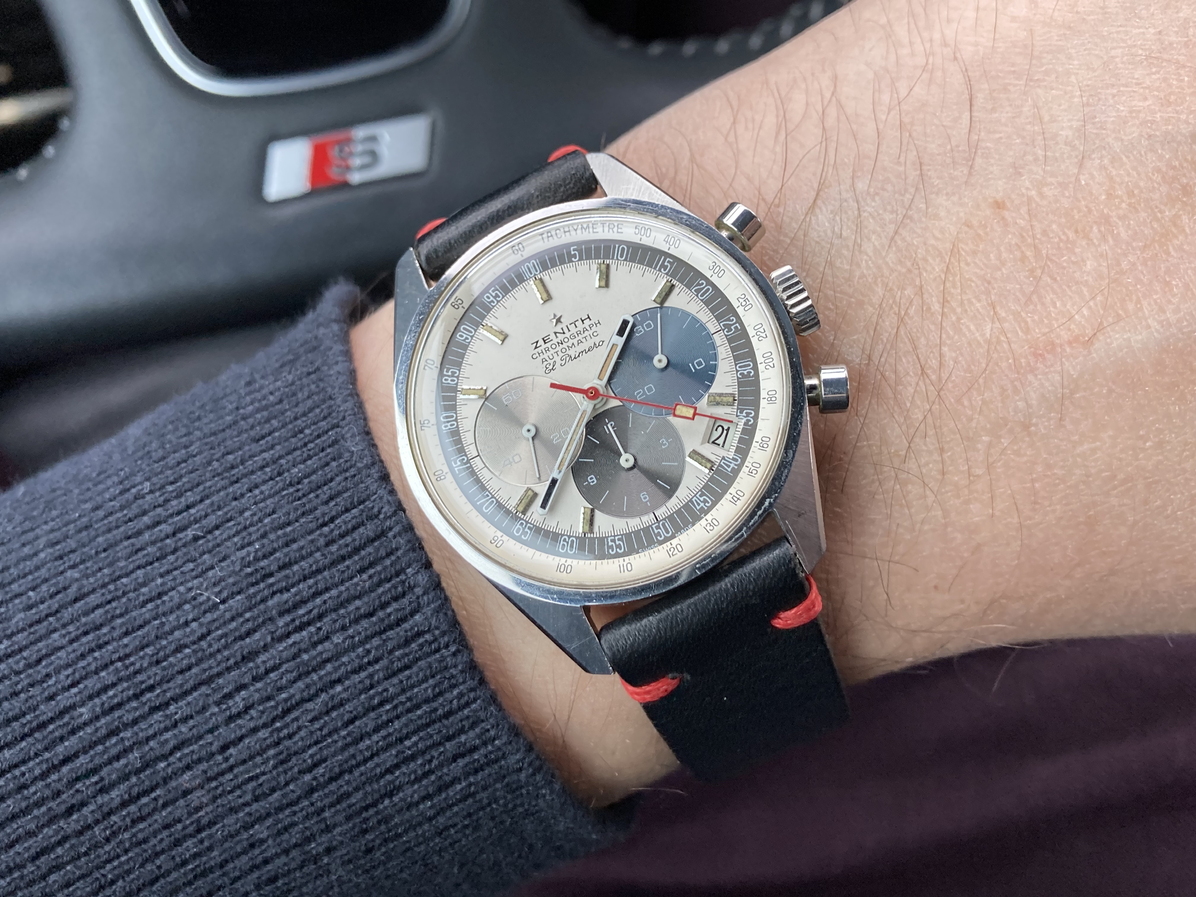 ... Maybe I'm a little naive but I believe the origin story. I've never seen or read about any other El Primero prototype dials but I have to believe there should have been some. It doesn't seem so contrived that a prototype dial might not have the "T" in swiss made. Given that the T indication for tritium was a regulatory requirement, wouldn't it be an easy way to make sure the prototype dials didn't end up in a final product? It seems more contrived that Zenith would make this dial and some variations, faux-age them, and then make up this story...