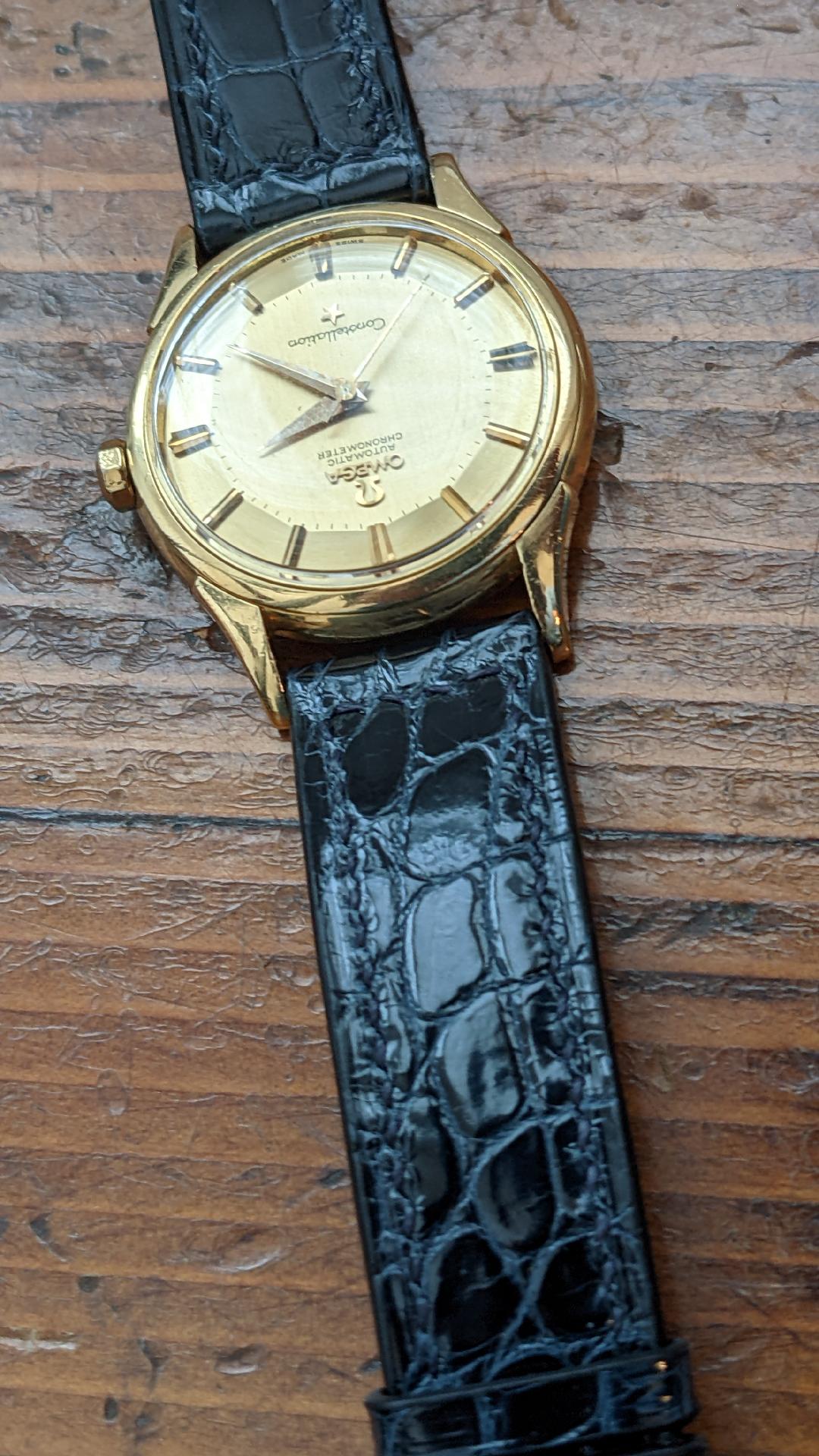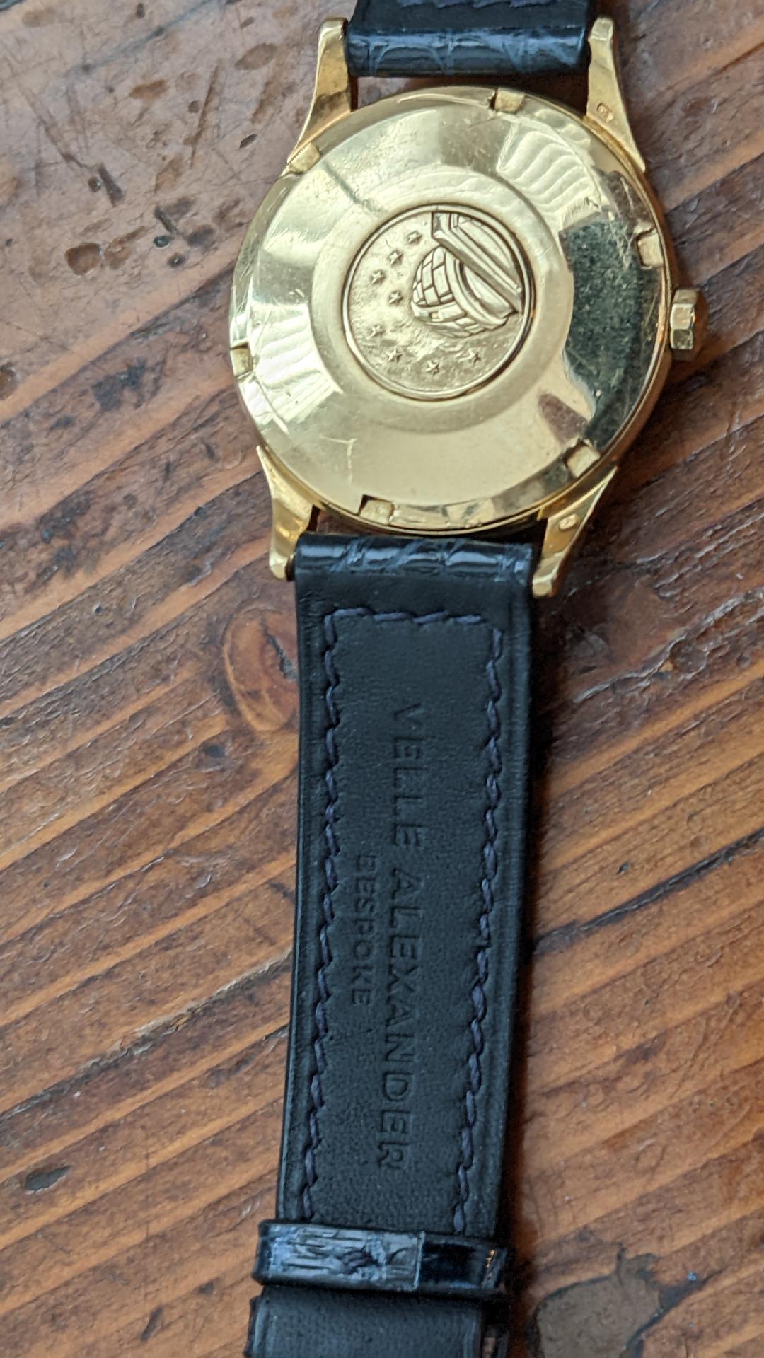 ·This is the third strap I have had this gentleman make for me...the first for my Omega. I like the glossy look but I wanted something a little different than the usual black. This dark navy blue alligator is just the thing. The light picks up the blue and gives the strap more depth and life. These are not cheap and they are not actually expensive. I was quoted $275 for factory made Hadly Roma ones, made in China. Velle Alexander is in Minneapolis. Because I have never bought a ready made strap that I didn't have to punch a hole in to get it to fit to my liking, having a custome made strap allowed me to pinpoint exactly where I wanted the holes so that I new I would have a perfect fit. I also don't like heavily padded straps. I have mine made without an padding...and it is amazing how soft and comfortable the hide gets from wearing. Anyway, the watch deserves it.