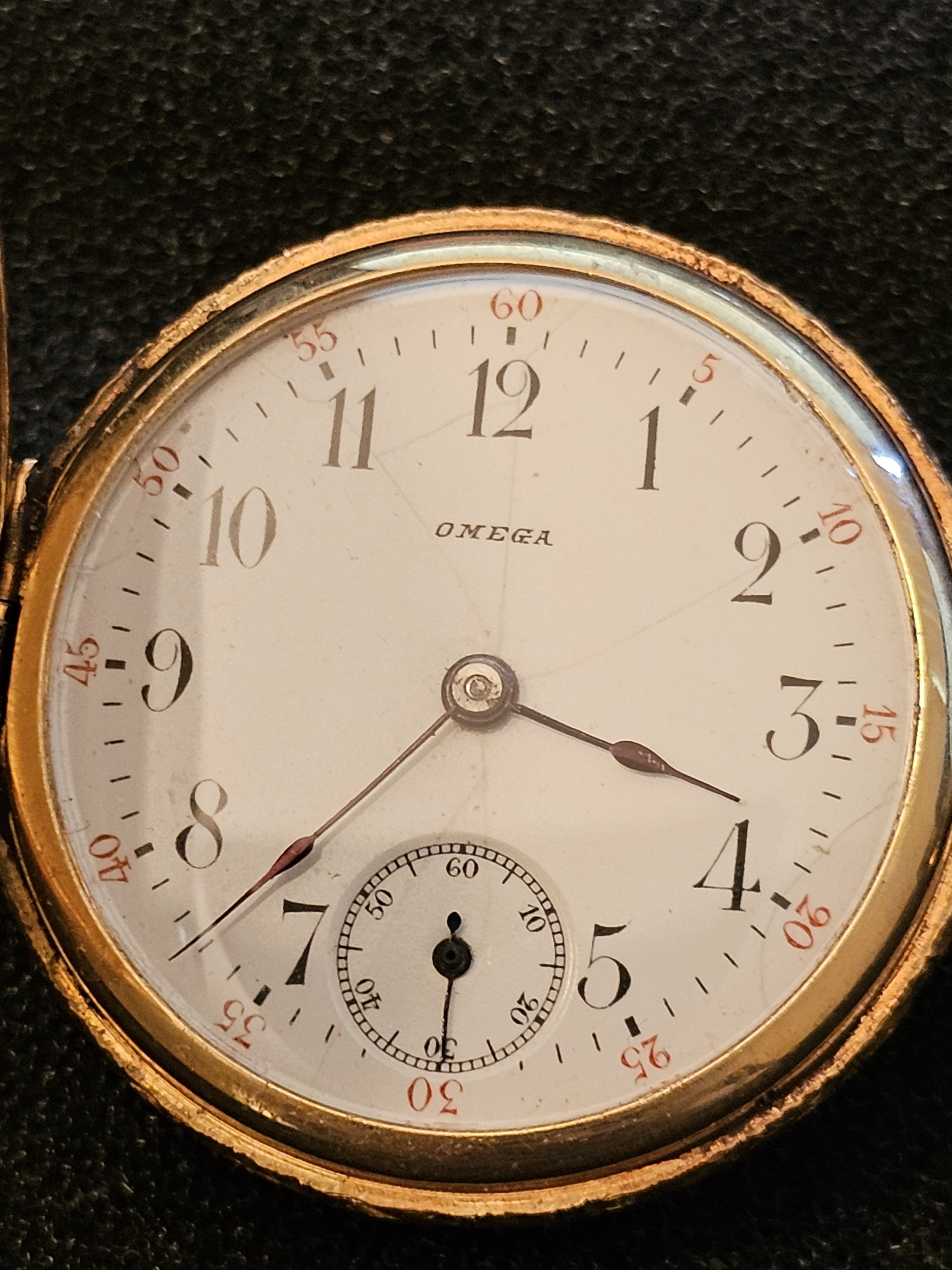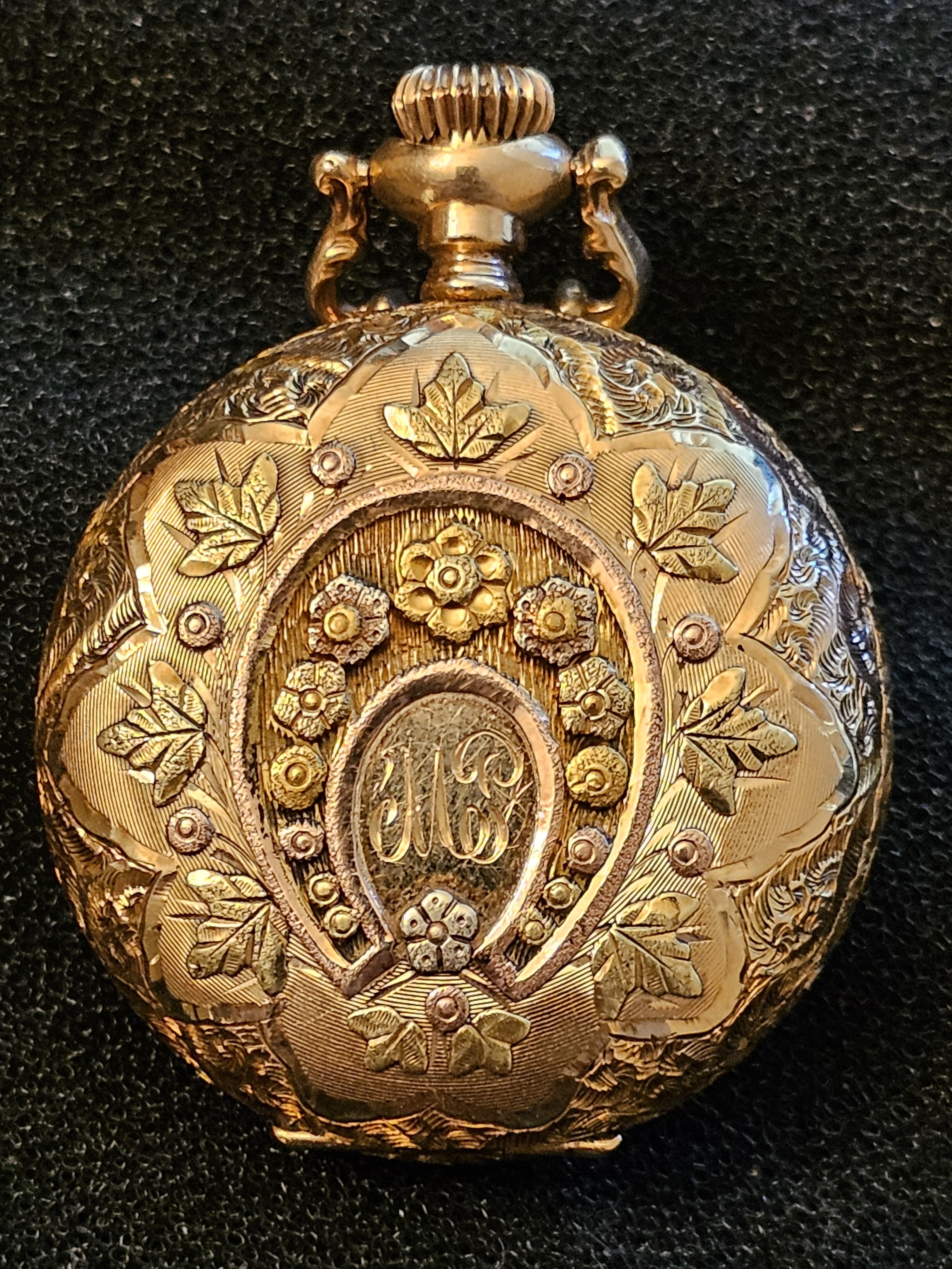 Four coloured gold hunter case. Yellow, rose, white, and green gold. The case appears to be in exquisite condition. Too bad about the hairline cracks in the vitreous enamel dial. Great find in any event. The chatelaine built into the case bow is a feature I have never seen.