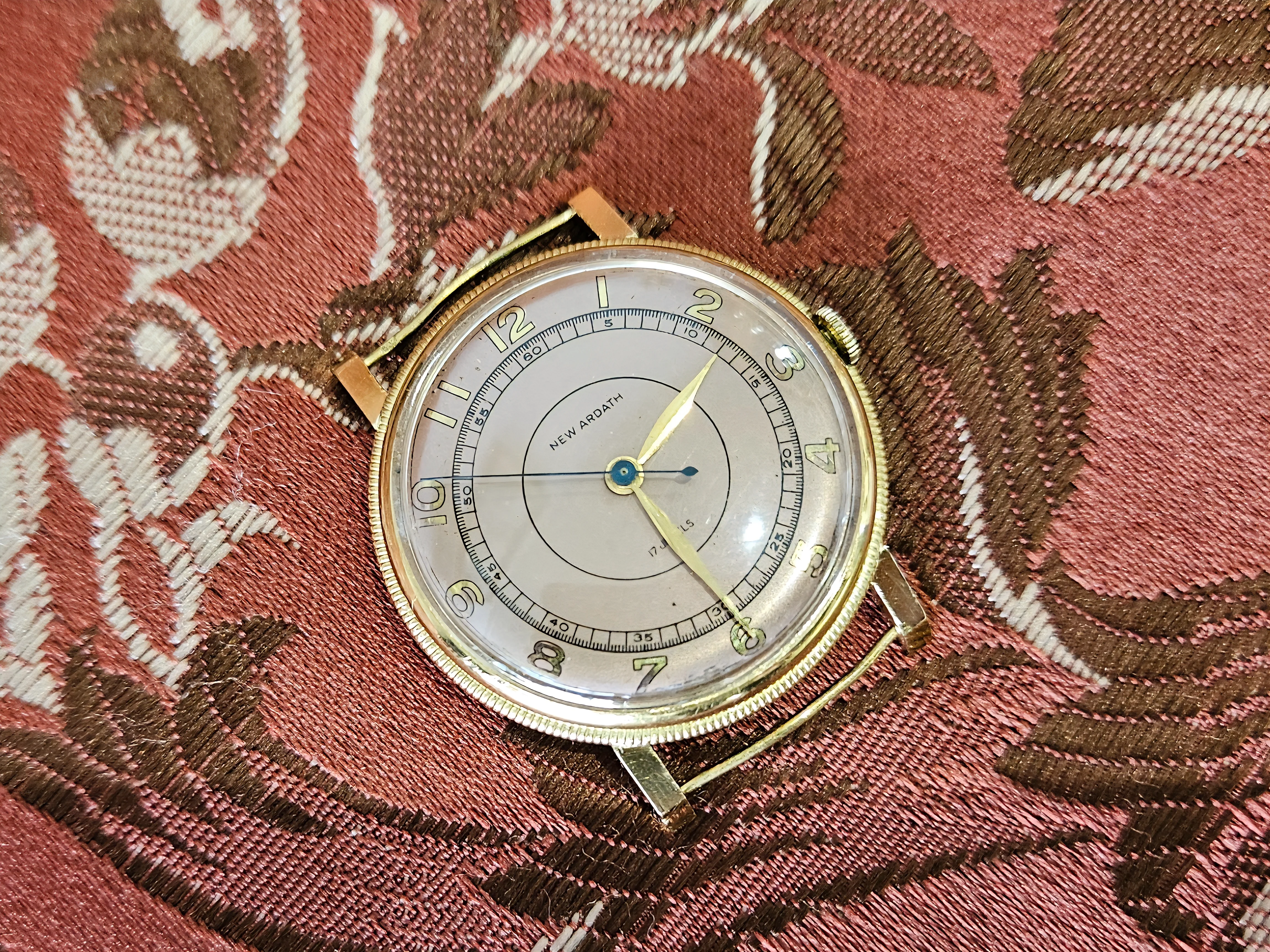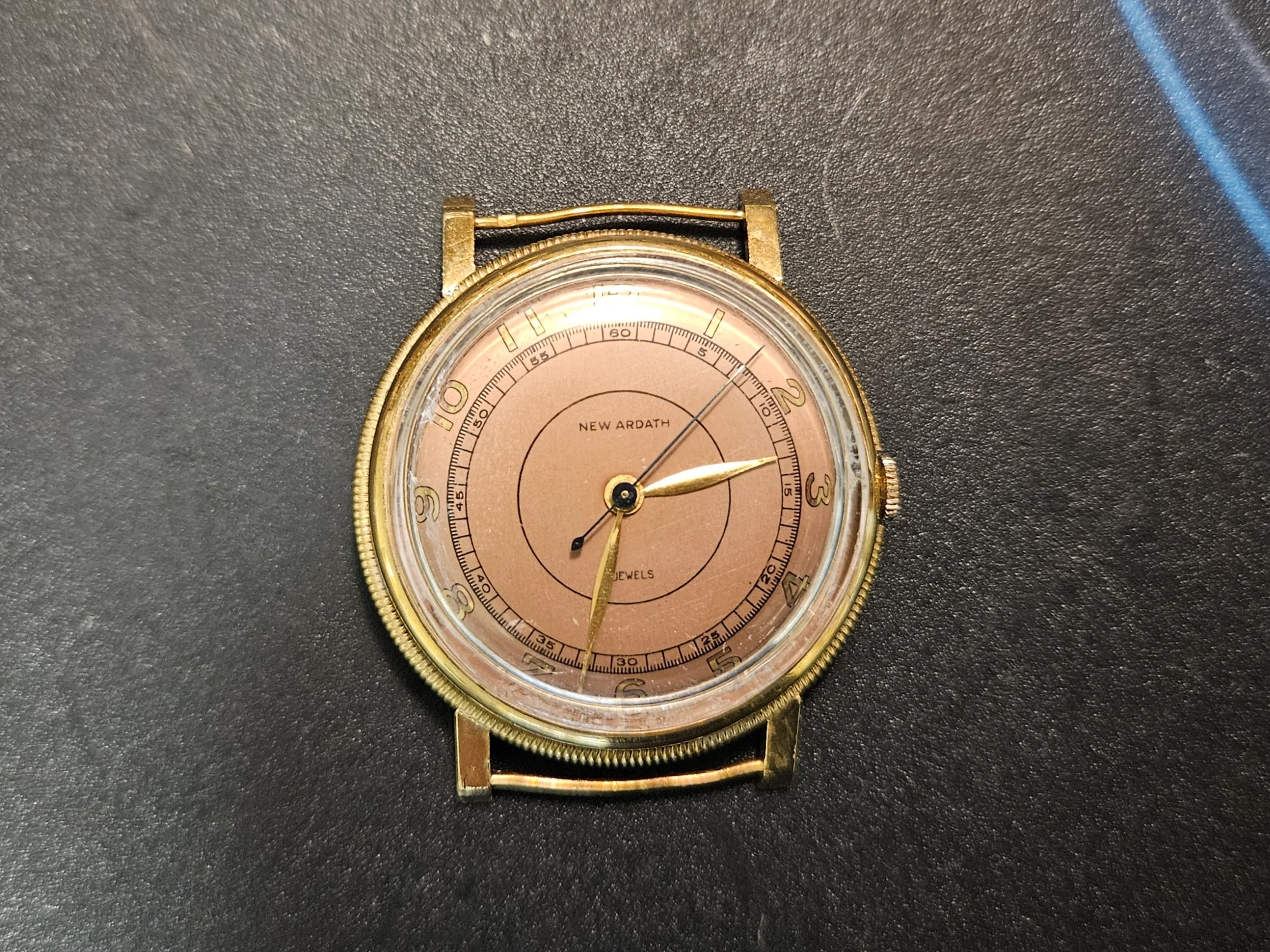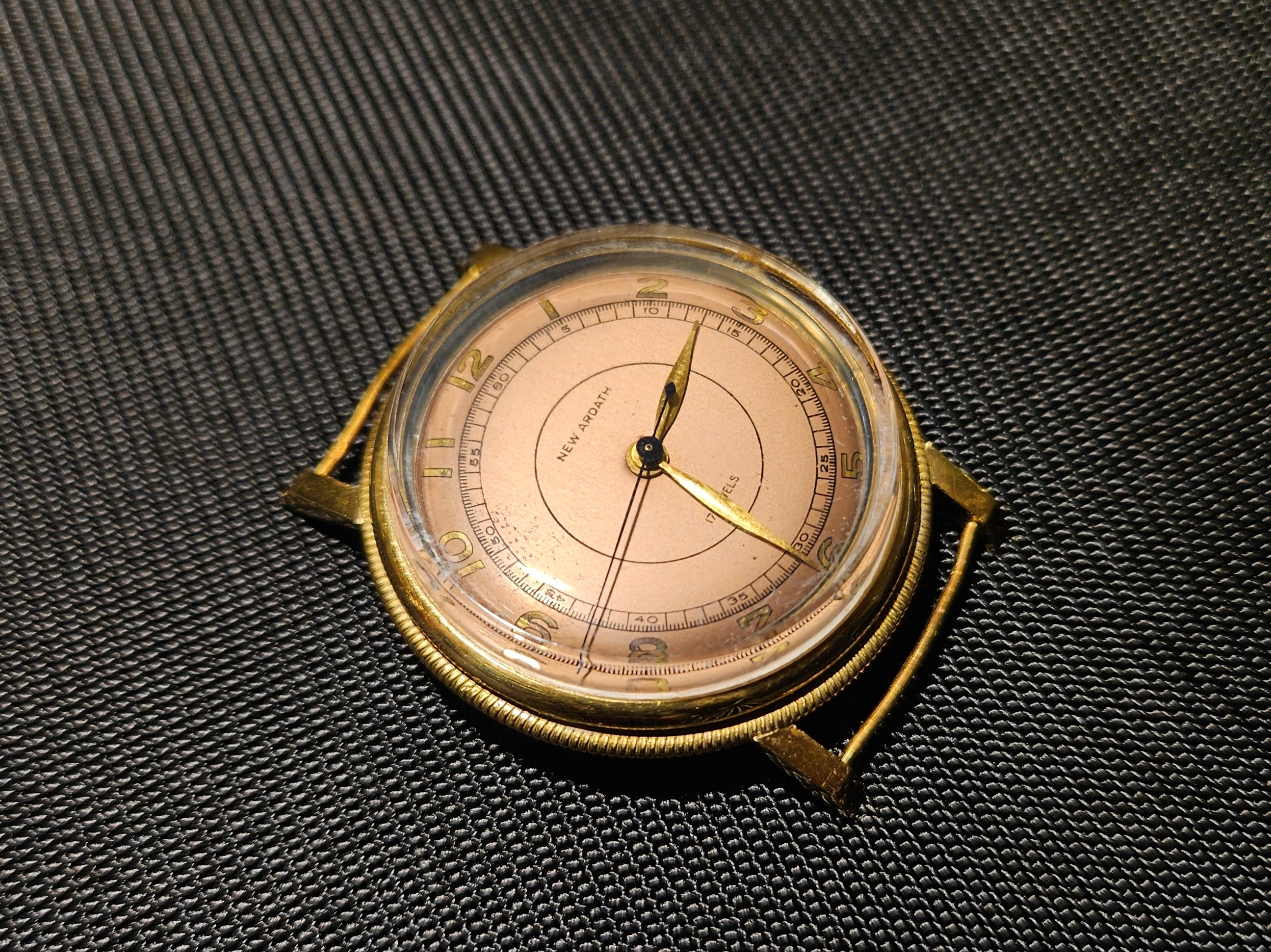 However, I realized the case is actually pretty unique and almost Calatrava like in solid 18k heavy gold in a good 34mm size. Anyone have any info about New Ardath and/or this type of coin edge case with fixed lugs? I'm almost tempted to transplant a different dial and movement to make it something I would wear more often. Anyone ever come across this type of case as well?