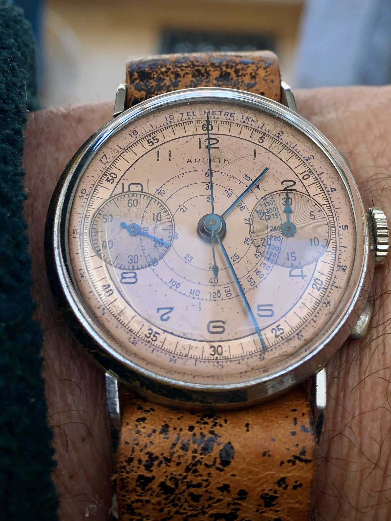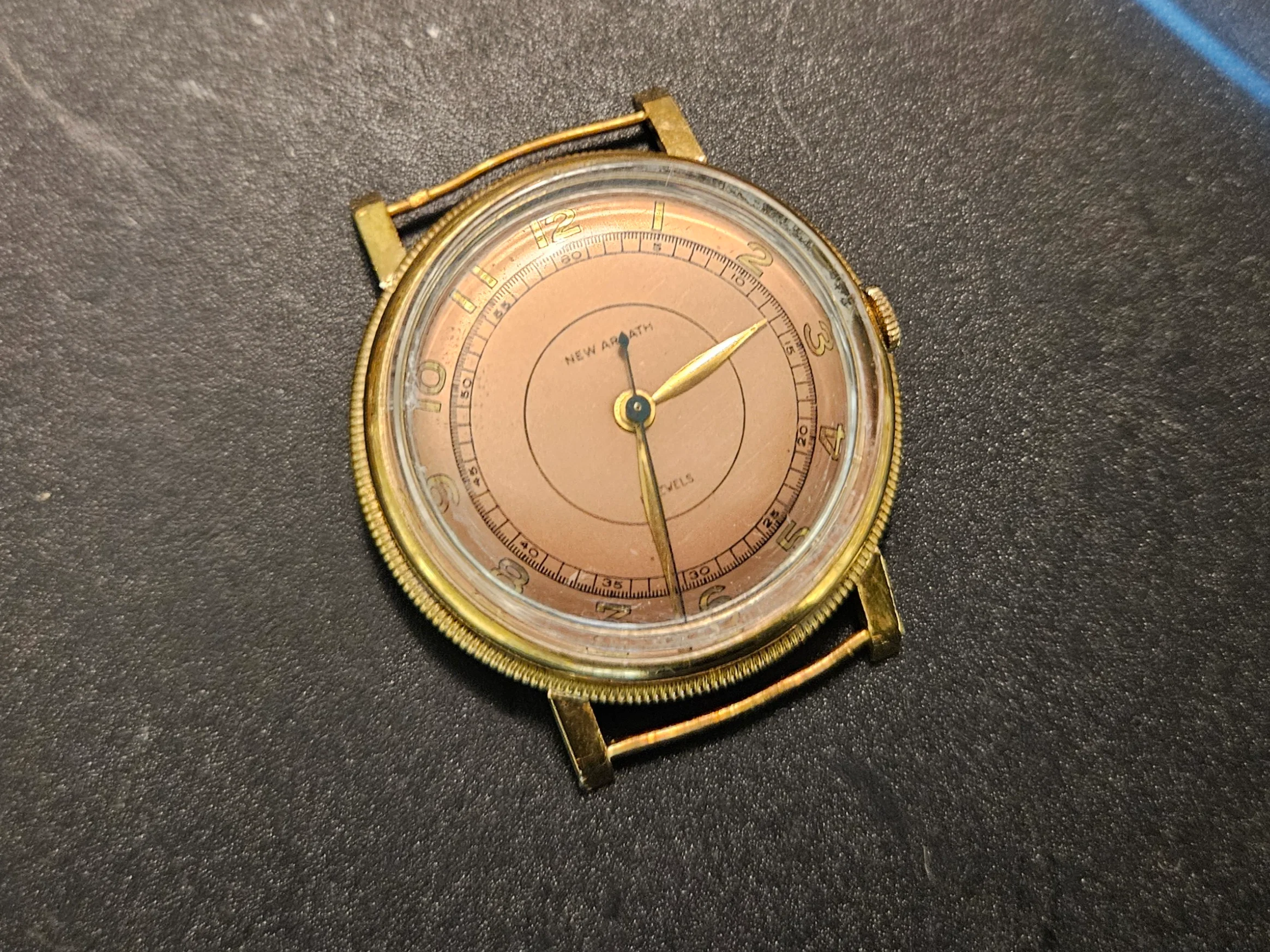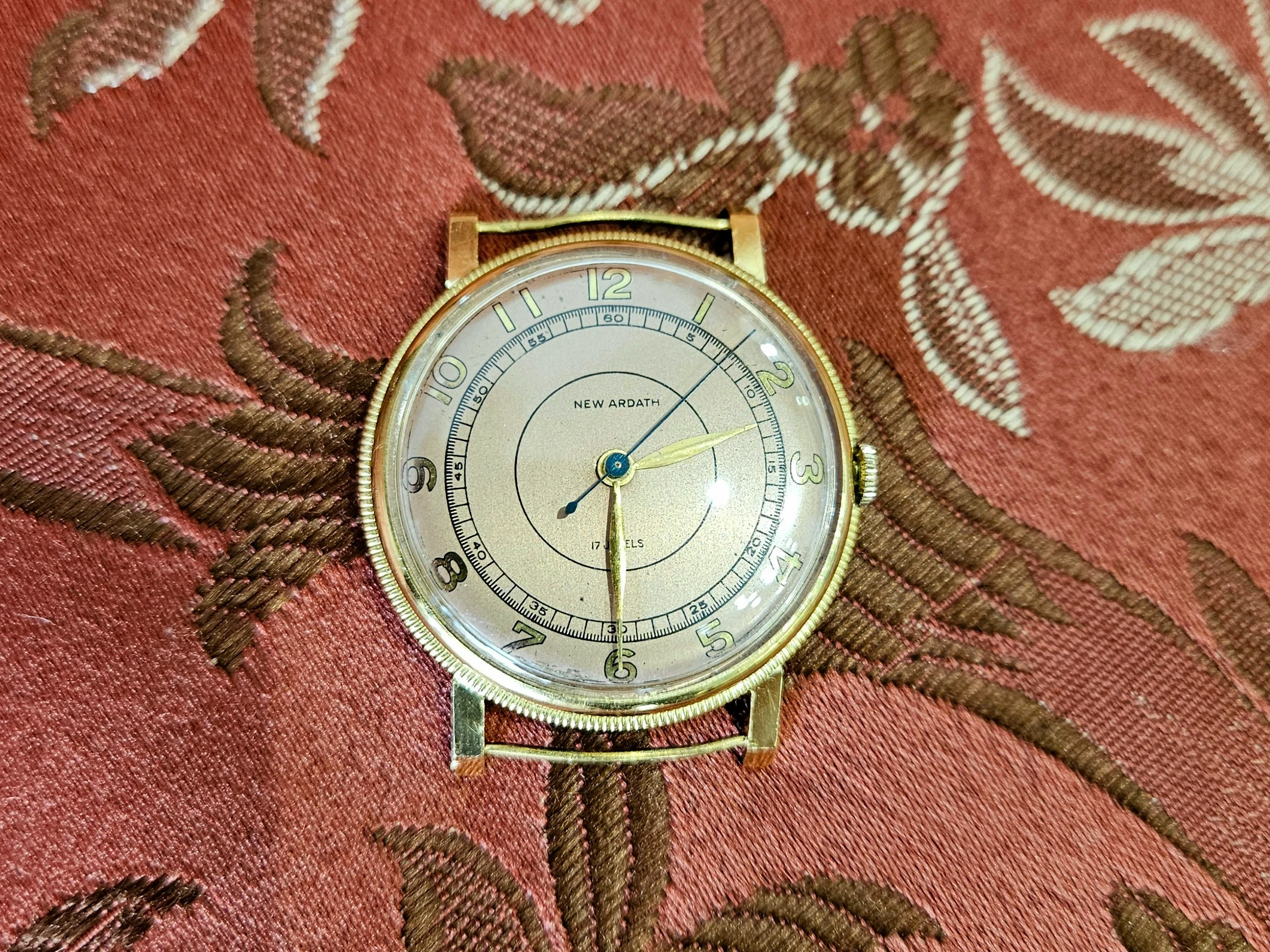 However, I realized the case is actually pretty unique and almost Calatrava like in solid 18k heavy gold in a good 34mm size. Anyone have any info about New Ardath and/or this type of coin edge case with fixed lugs? I'm almost tempted to transplant a different dial and movement to make it something I would wear more often. Anyone ever come across this type of case as well?