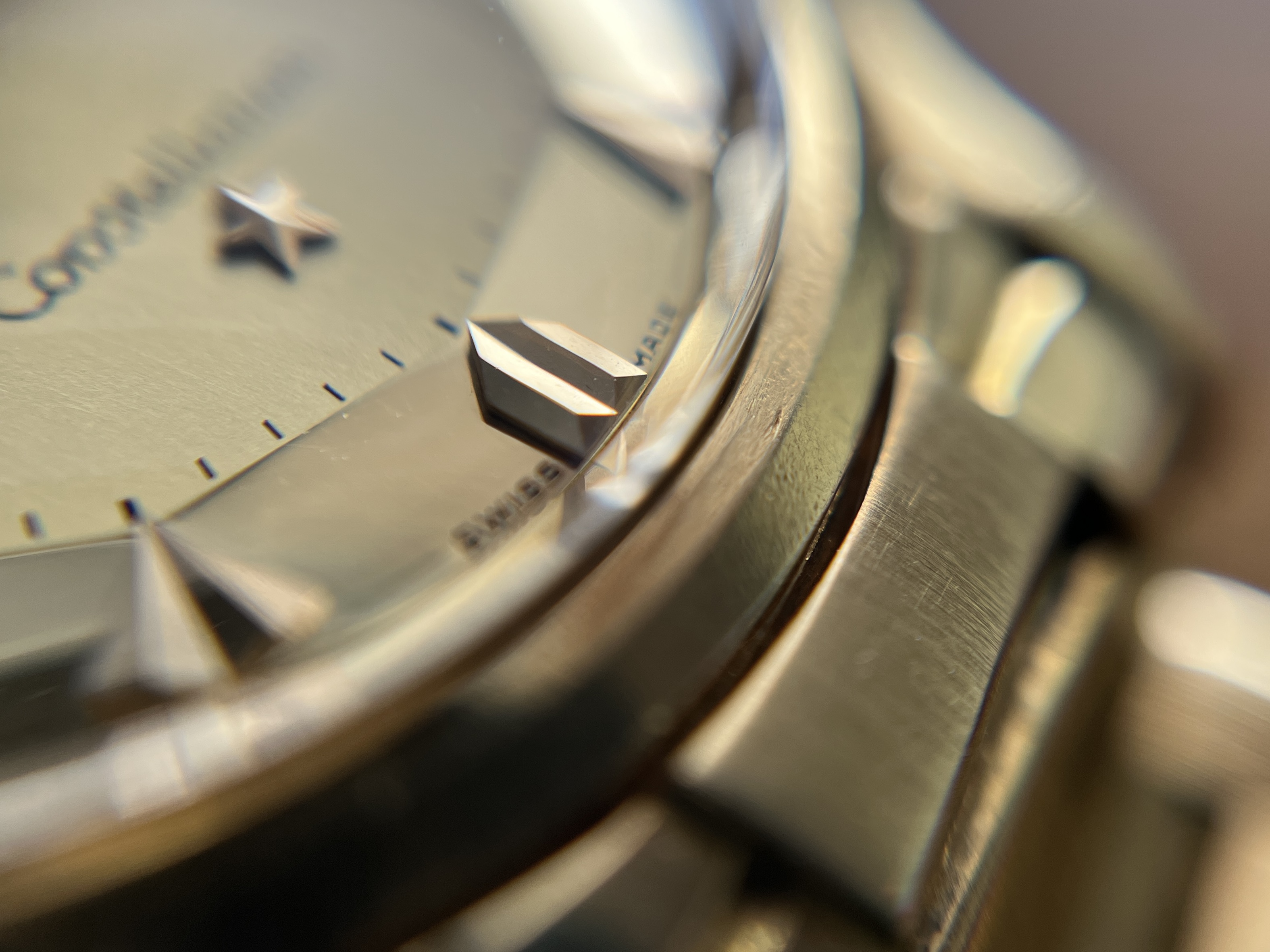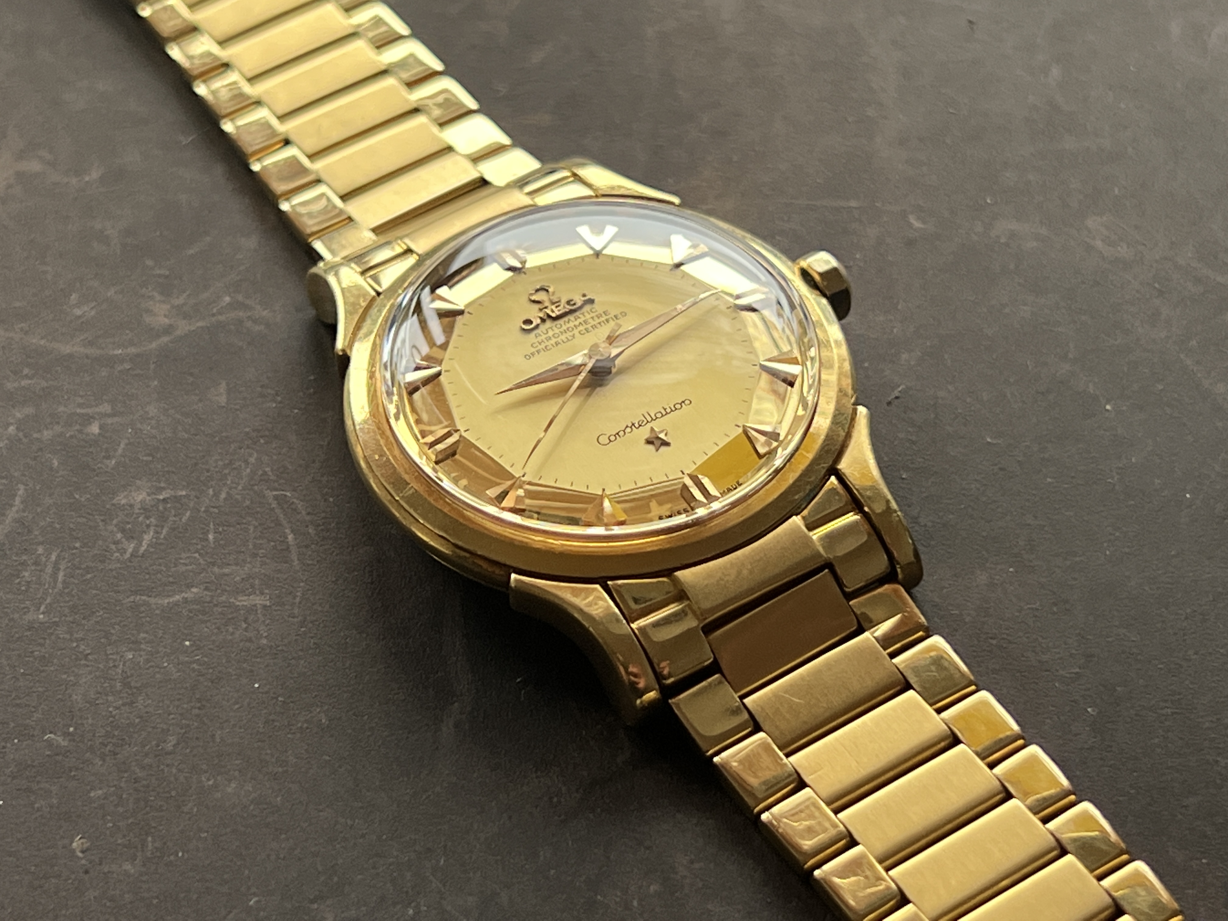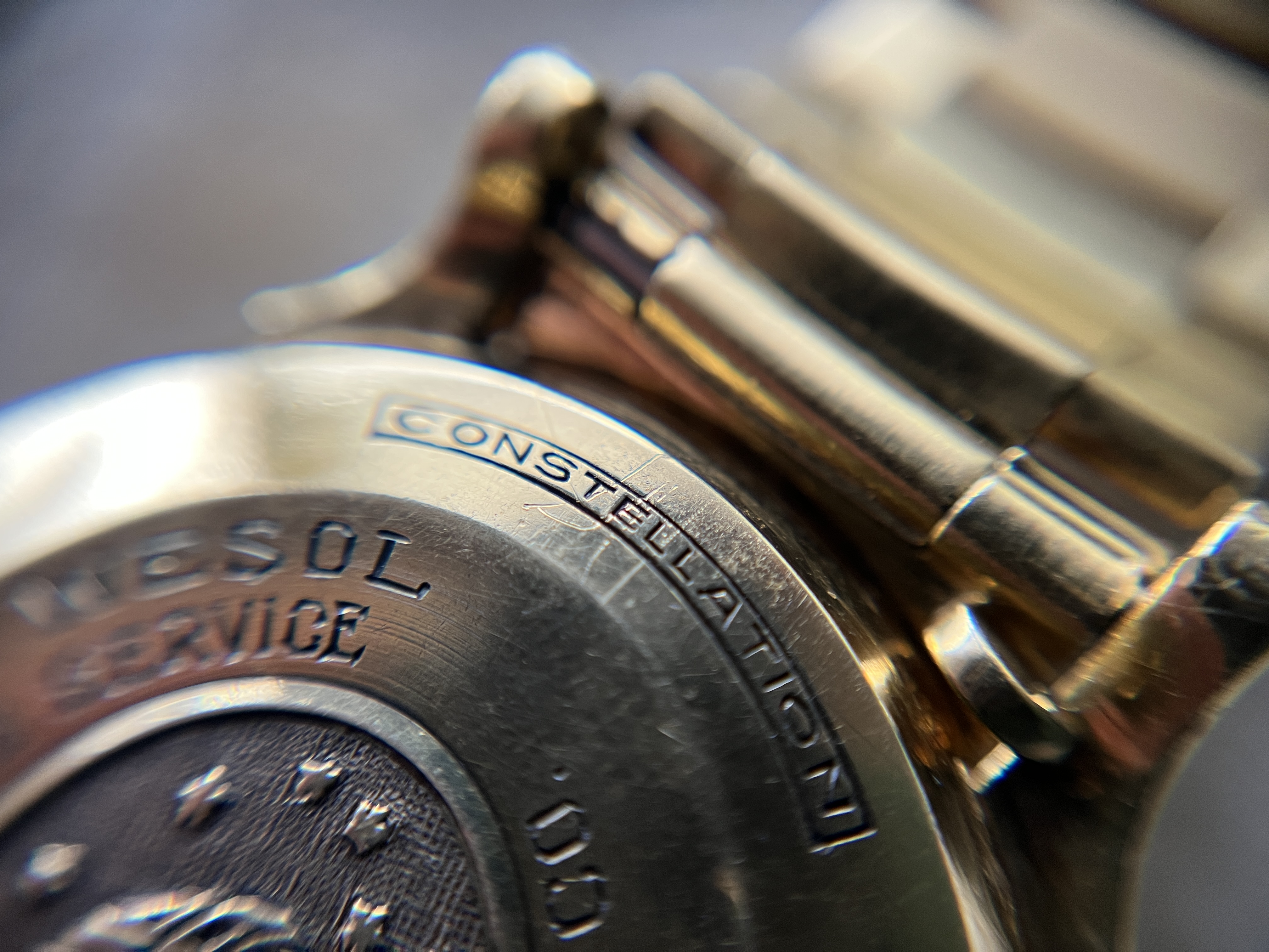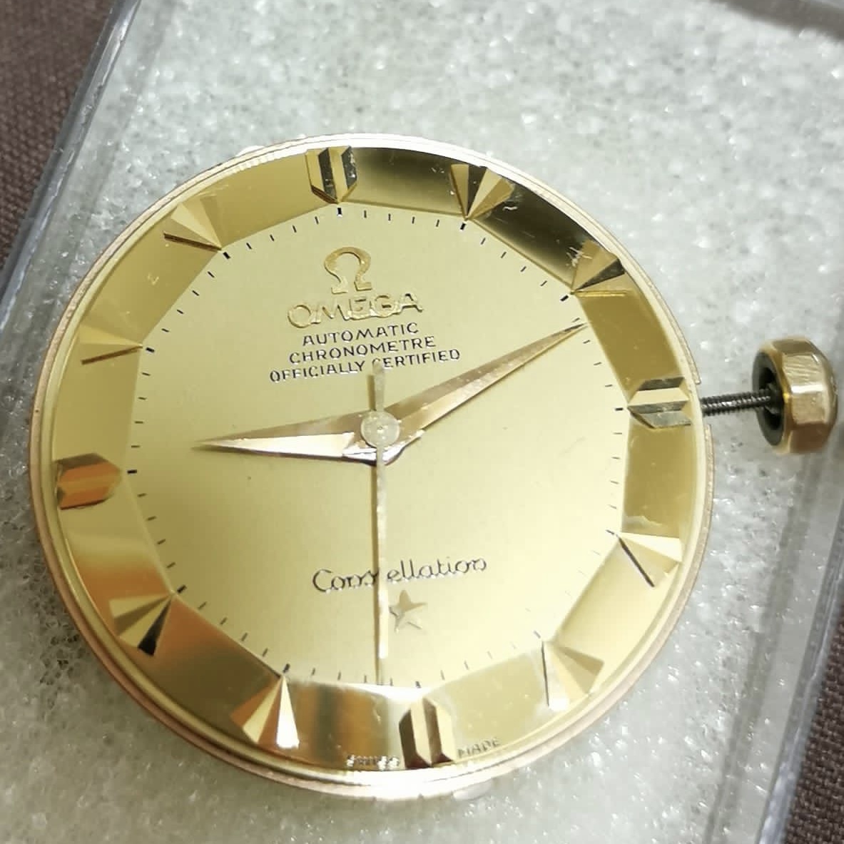The story is quickly told: About 2 years ago, I found a little gem: A Constellation 2853 “Deluxe” dial, complete with the cal. 505 movement, hands, stem and flat foot crown. Most likely, the case had fallen prey to a smelter who must’ve been unaware that the dial, the indices, and the hands were made from solid gold, too.