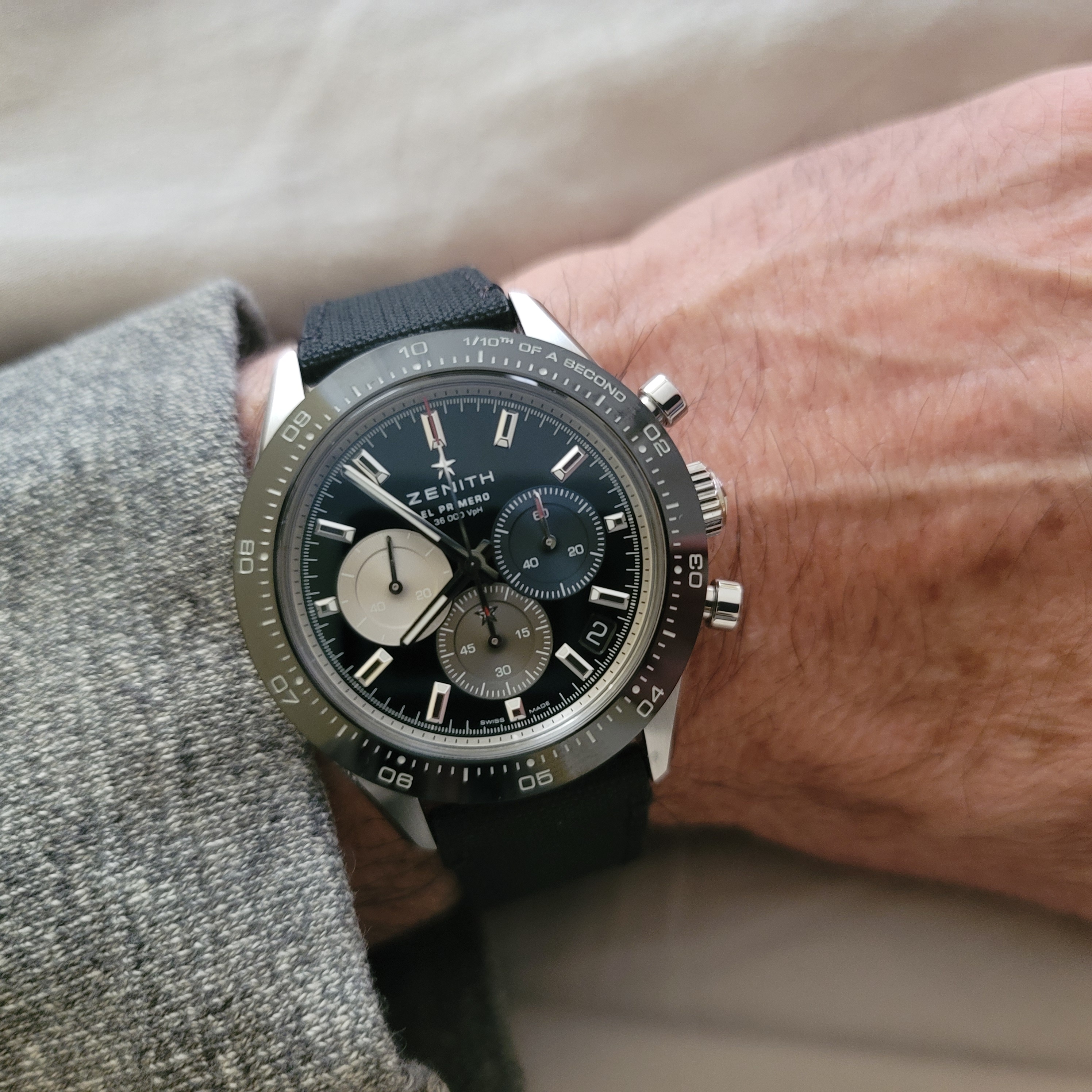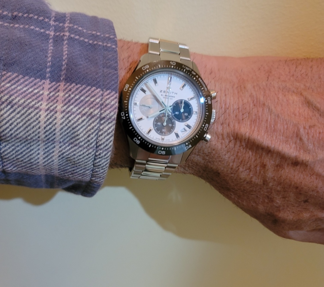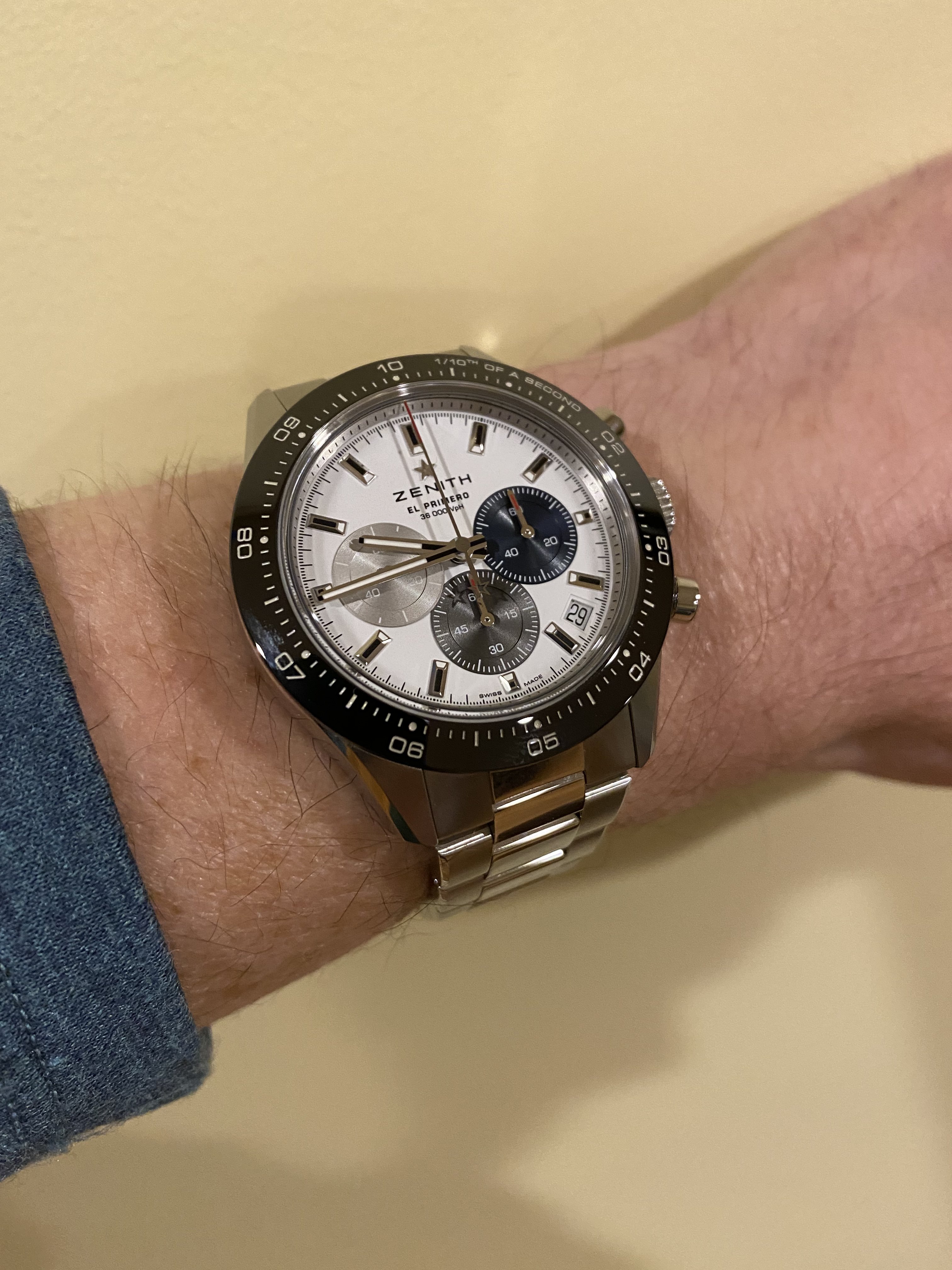 The moment I saw this beauty in the metal at my local AD, it was a no-brainer. They had the black matte dial variant, which I would usually prefer. However, I decided to have them order the white matte dial variant. Perhaps, since I've always been a fan of the El Primero's signature tri-color overlapping sub-dial layout, I believe the black ceramic bezel contrasts perfectly against the stark white dial and the blue, anthracite, and light gray registers: