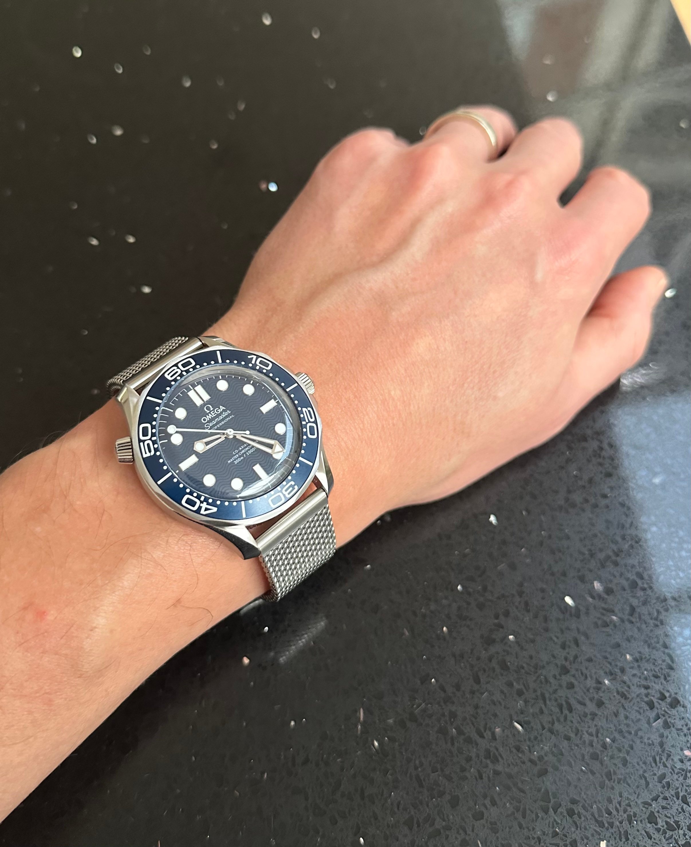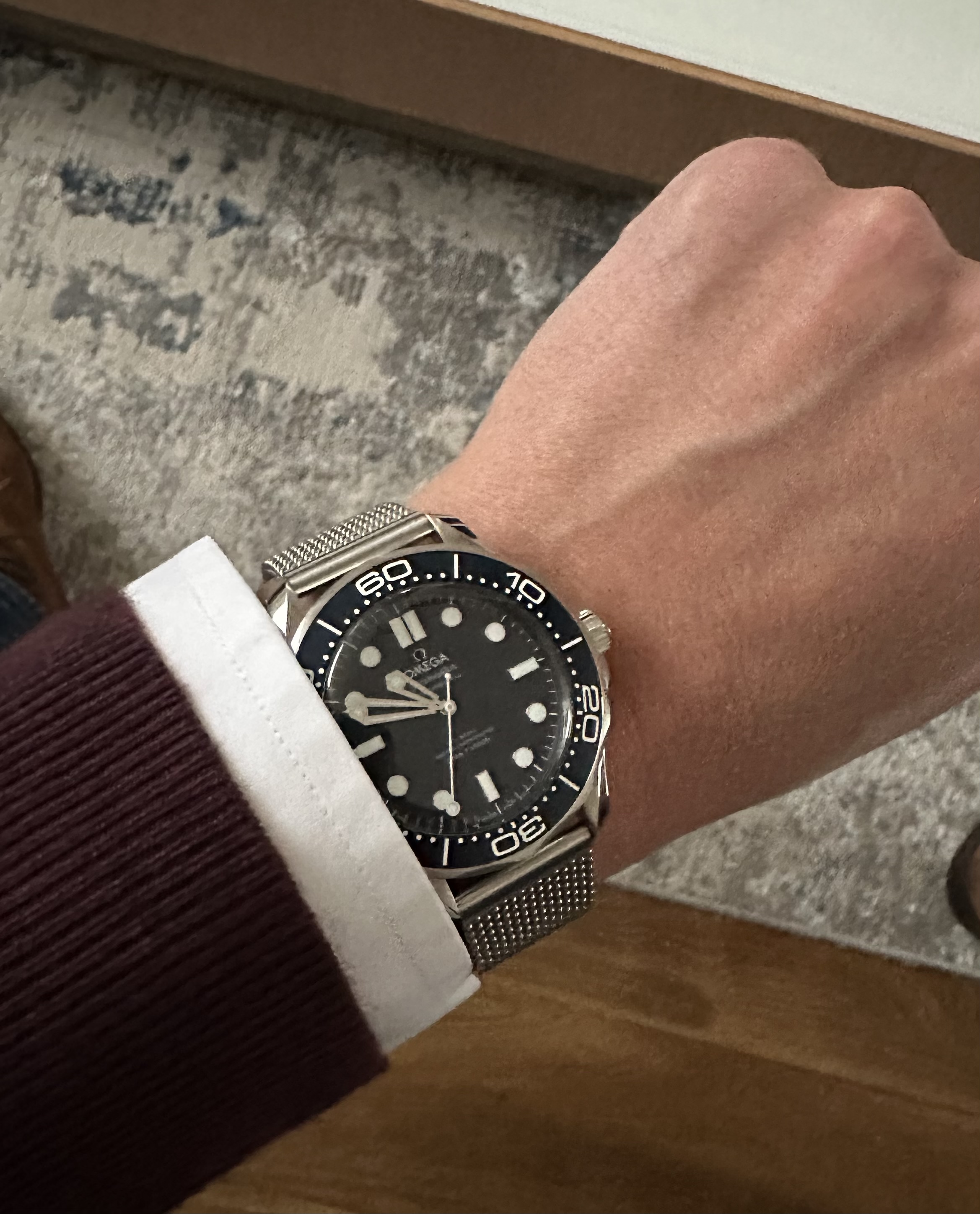 I don’t agree with the comments about it being blingy - I don’t see it being any more blingy than any other steel watch on a bracelet, and of course it’s the most shiny and sparkly under the bright spotlights of a boutique. It’s perfectly fine under “normal” conditions. I do agree the NTTD is more restrained though, because of the brown dial and slightly darker colour of the titanium.
